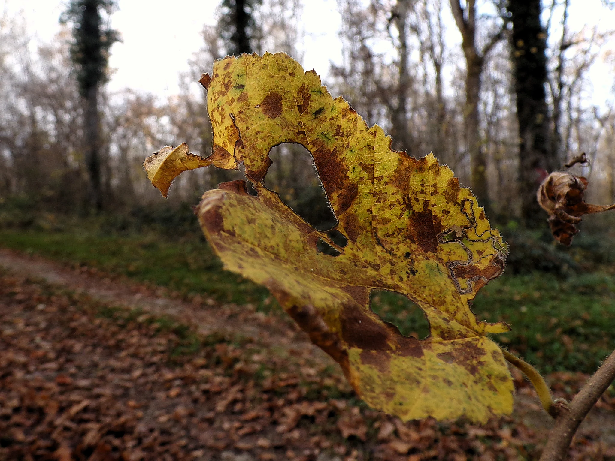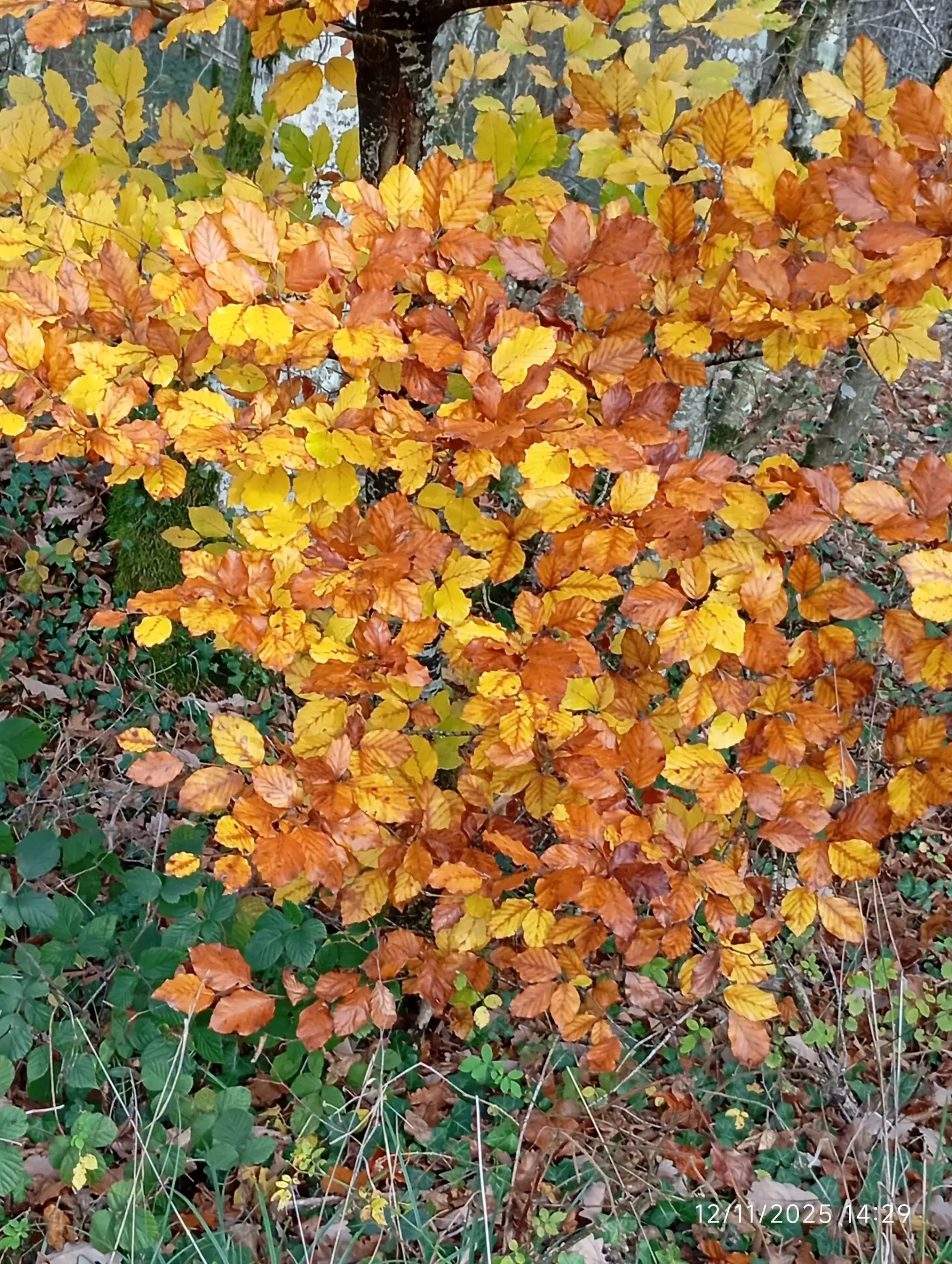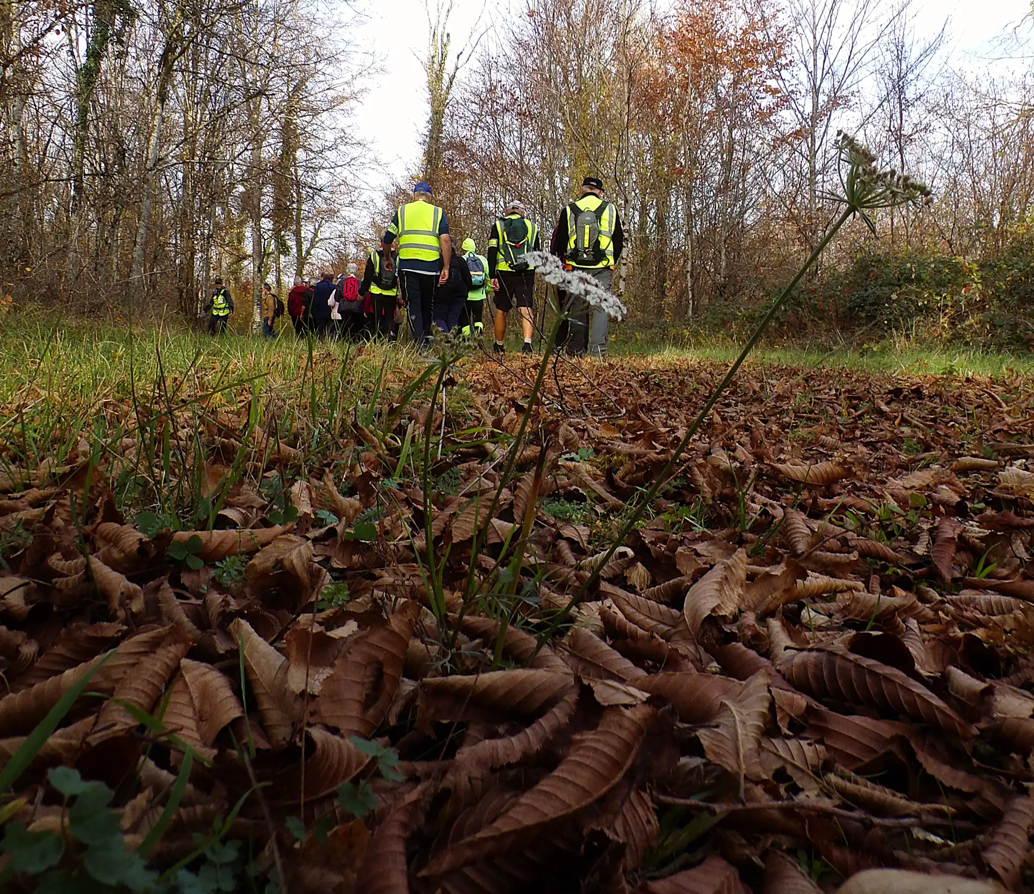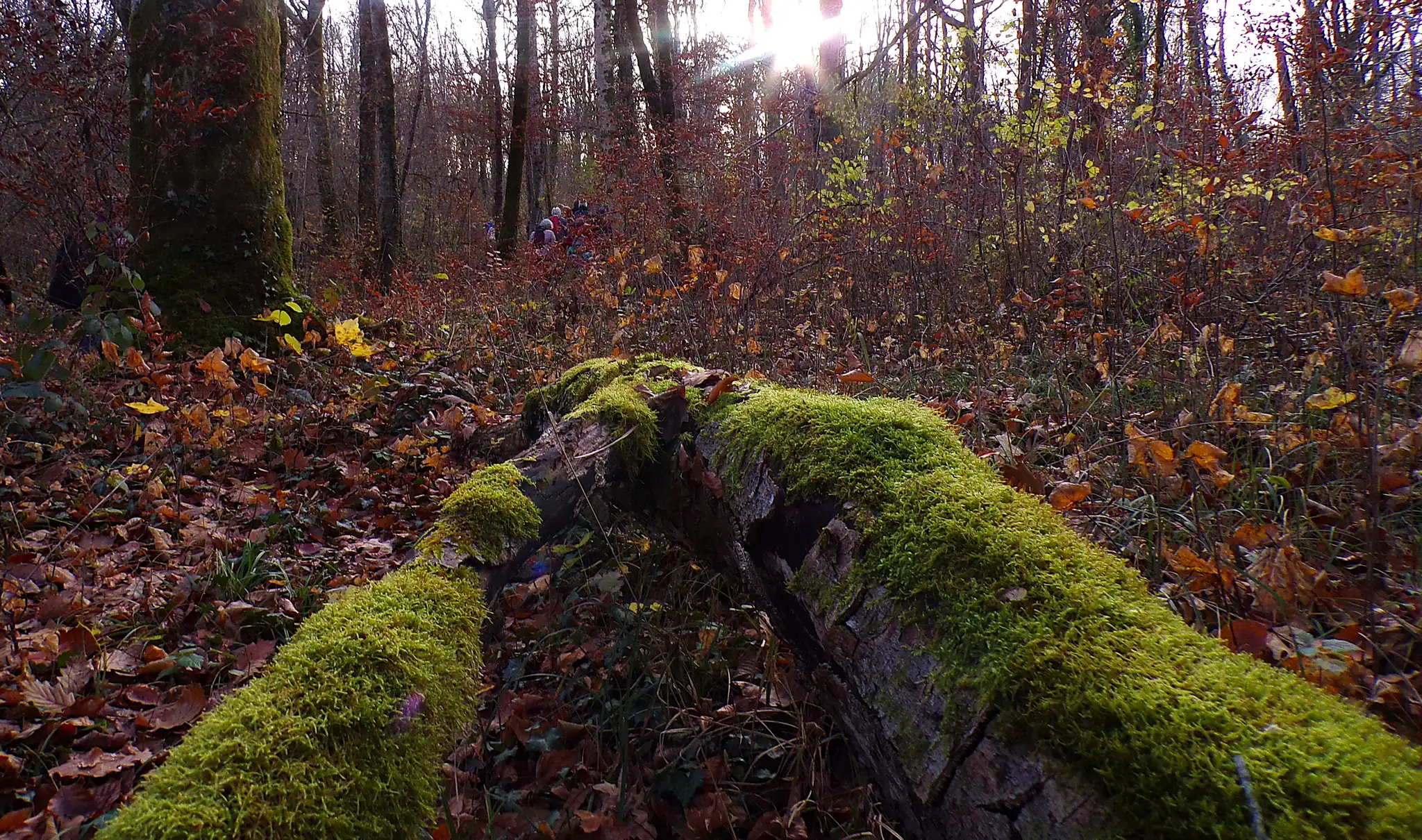Aujourd’hui nous nous déplaçons sur un tapis de feuilles, qui amorti le ressenti sur le sol mais cache les roches de surface et peut entraîner des chutes, la prudence de chacun a évité les chutes seules quelques embardées dans les passages humides ont mis en évidence des zones humides.