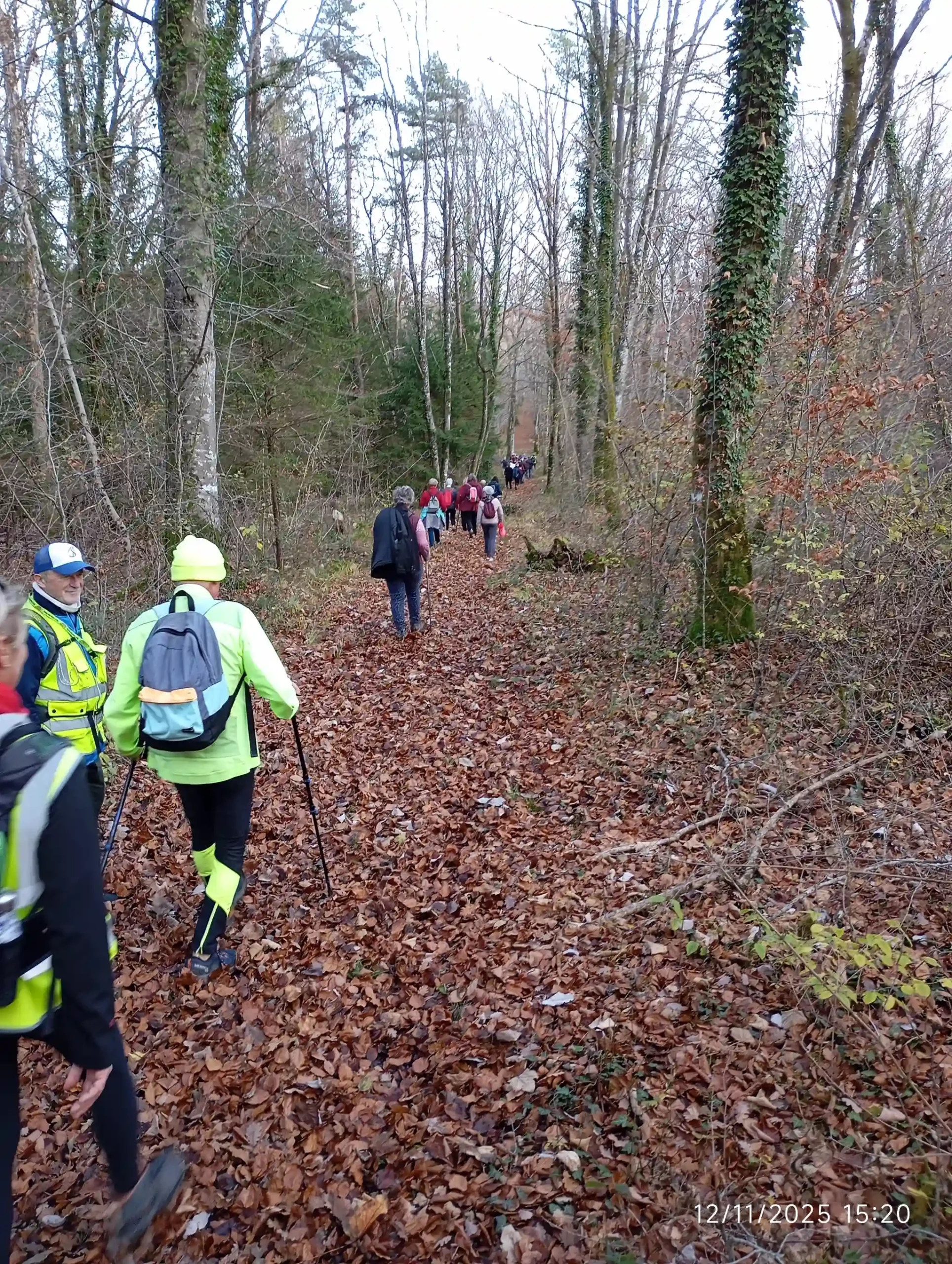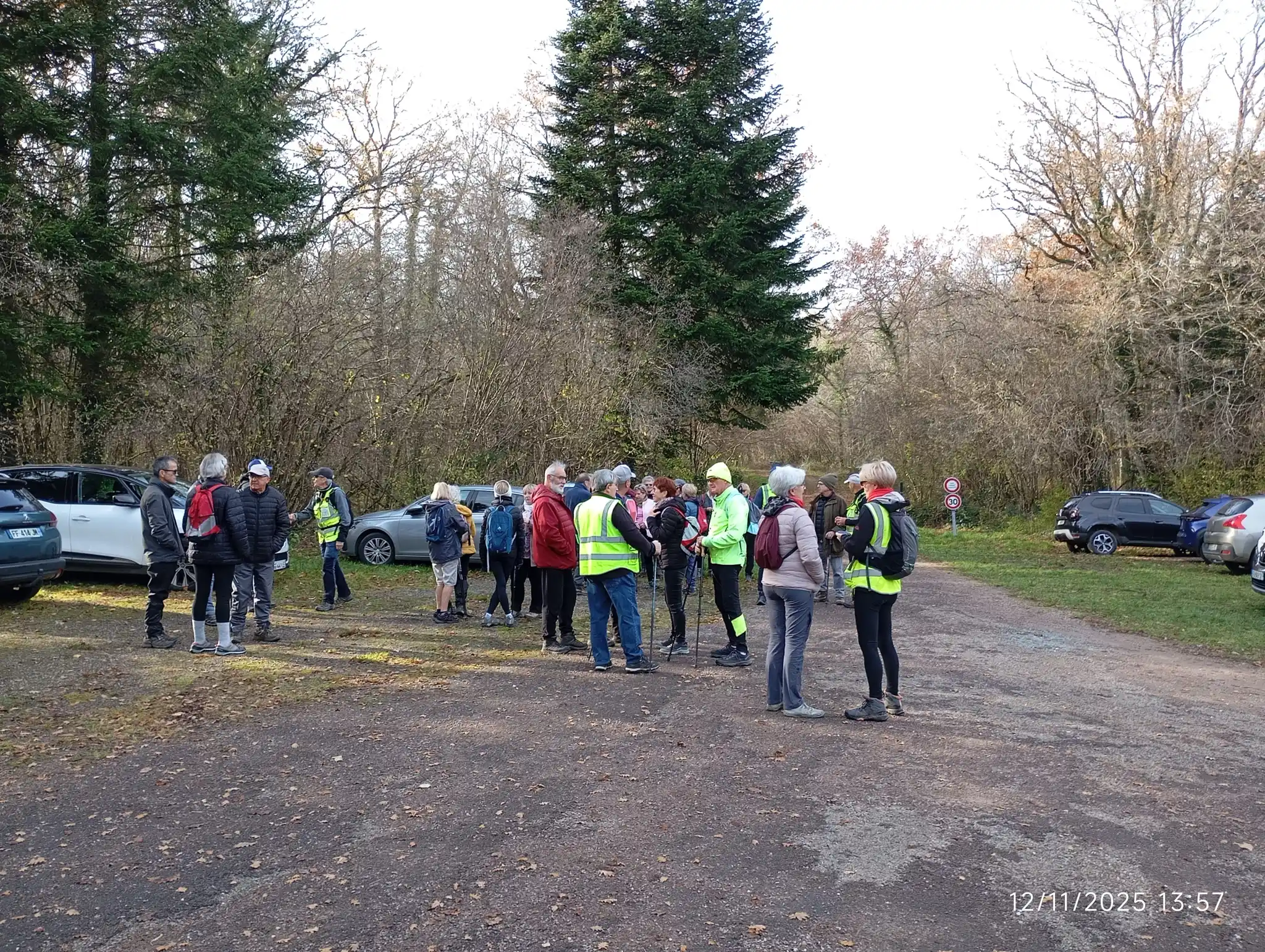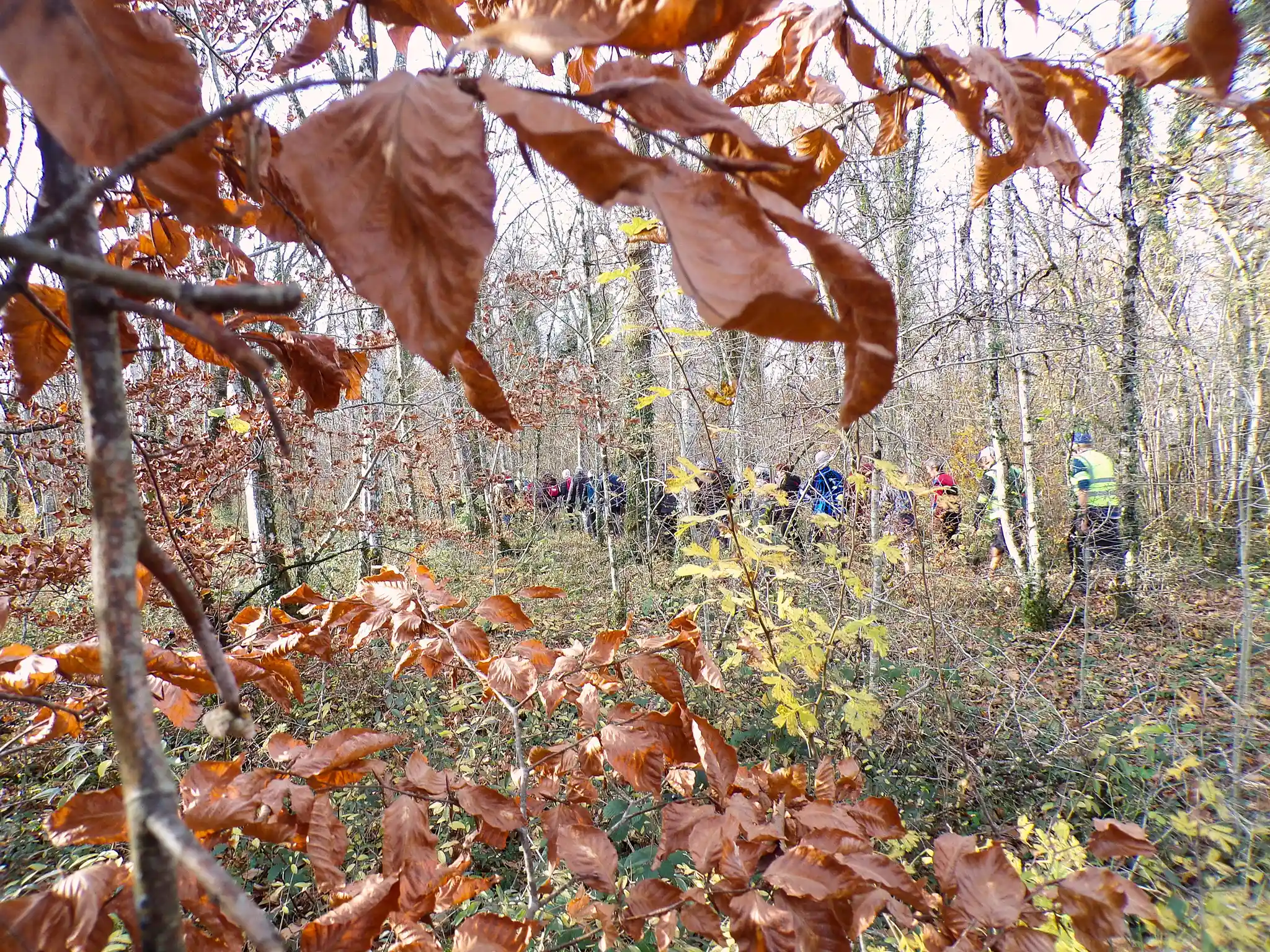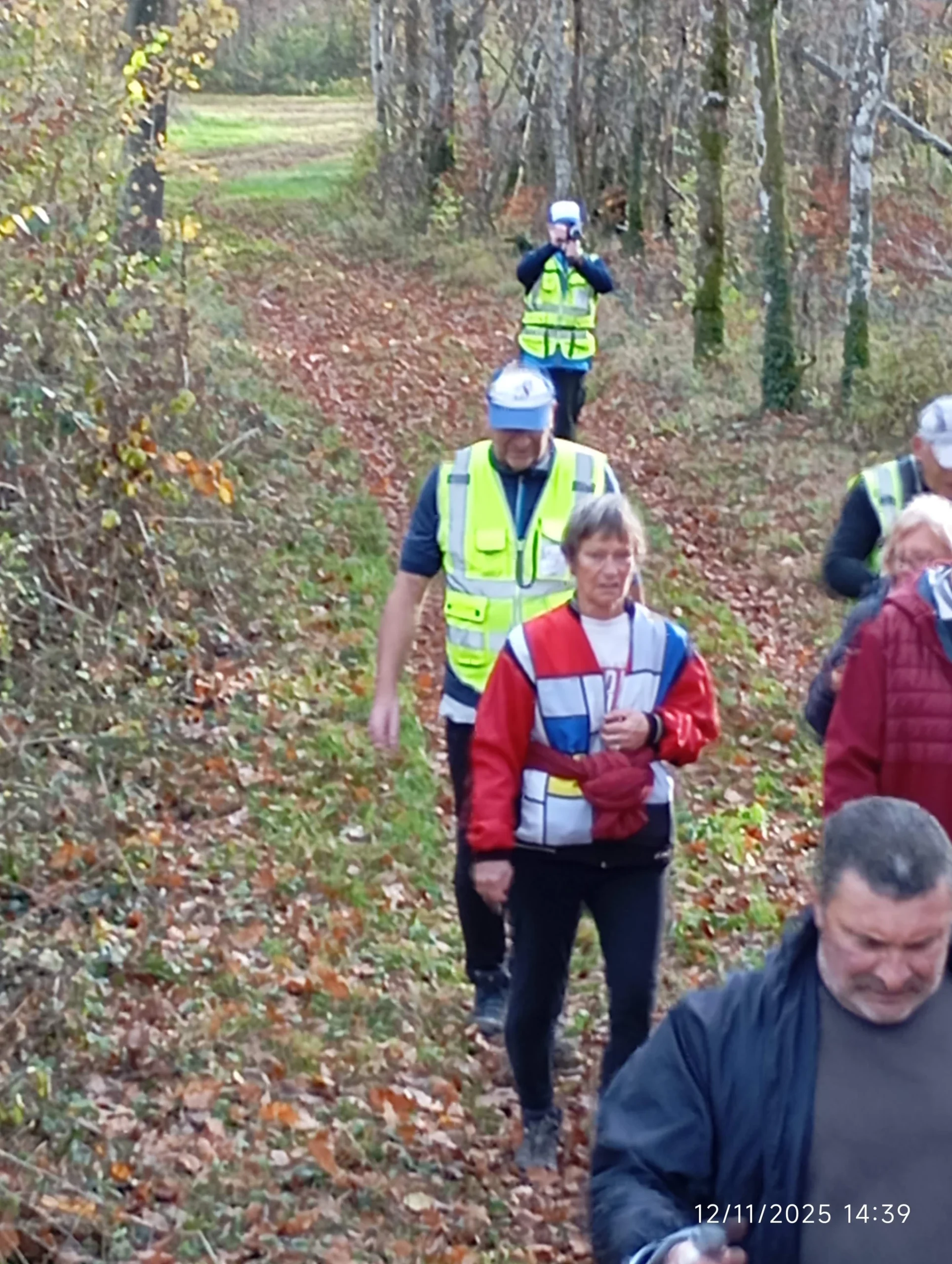 La balade de ce jour s’est déroulée dans les bois à l’abri du vent avec une température très agréable 15°C pour un 12 novembre c’est exceptionnel mais nous sommes dans l’été de la Saint Martin alors à nous d’apprécier cette température.