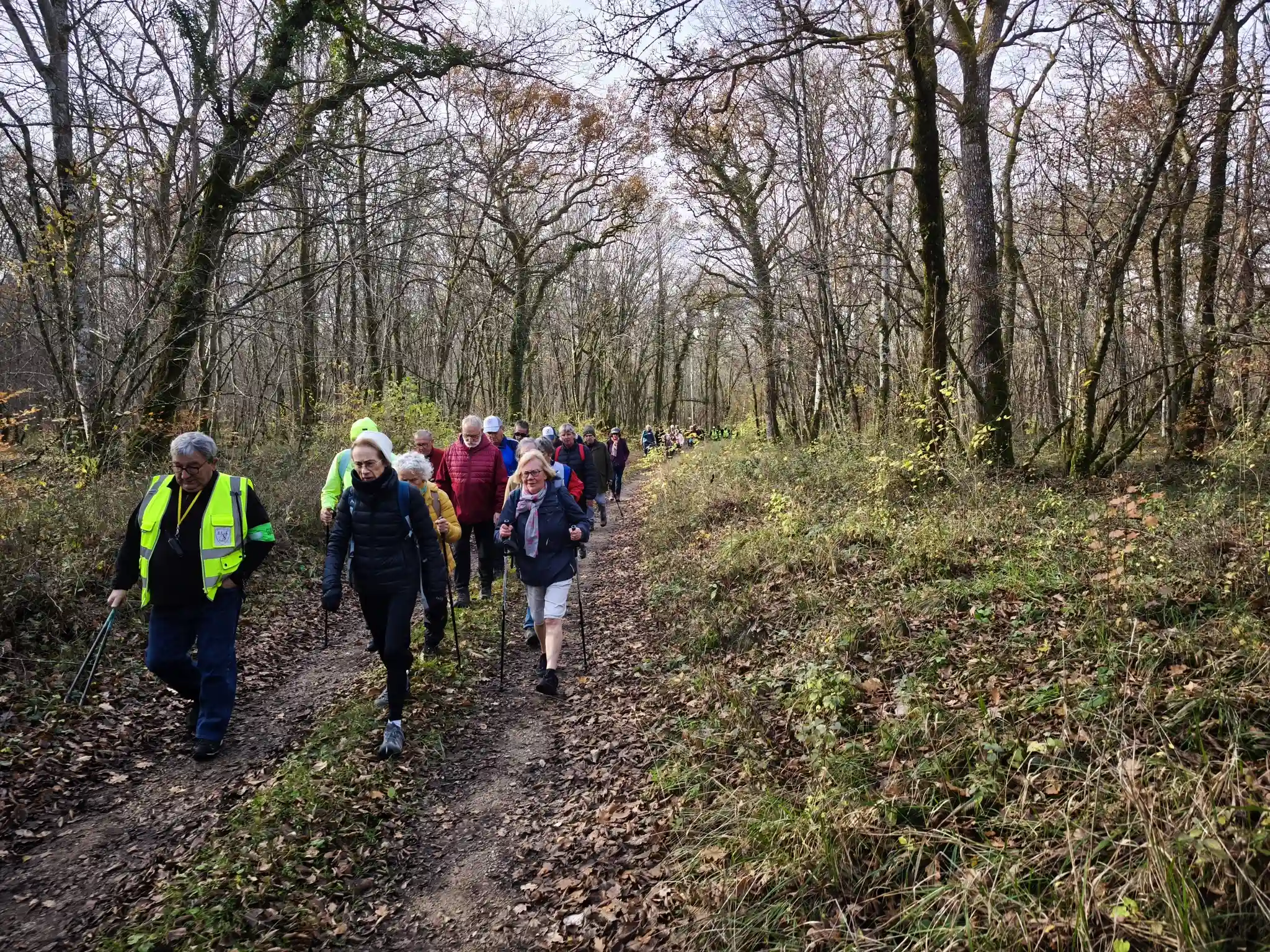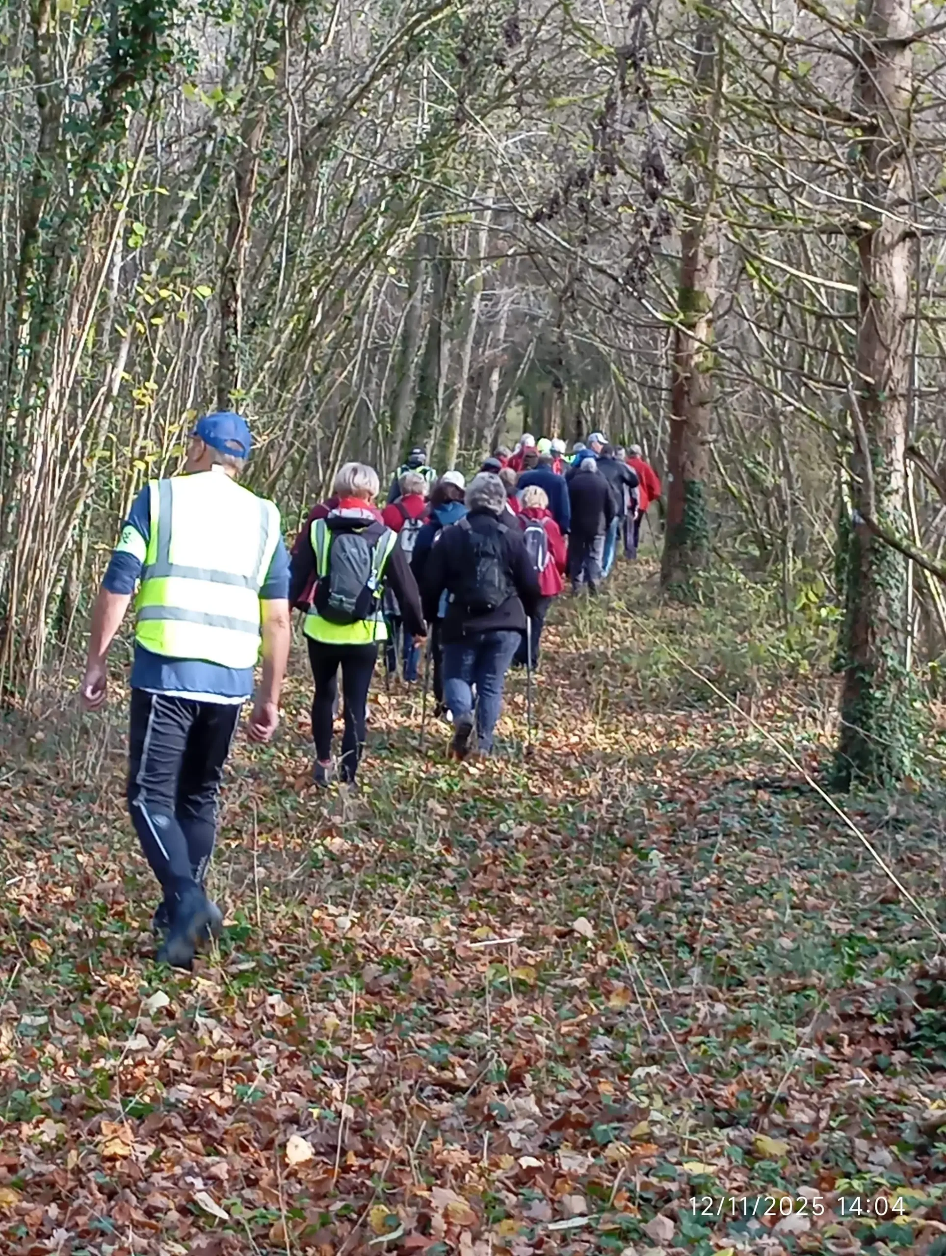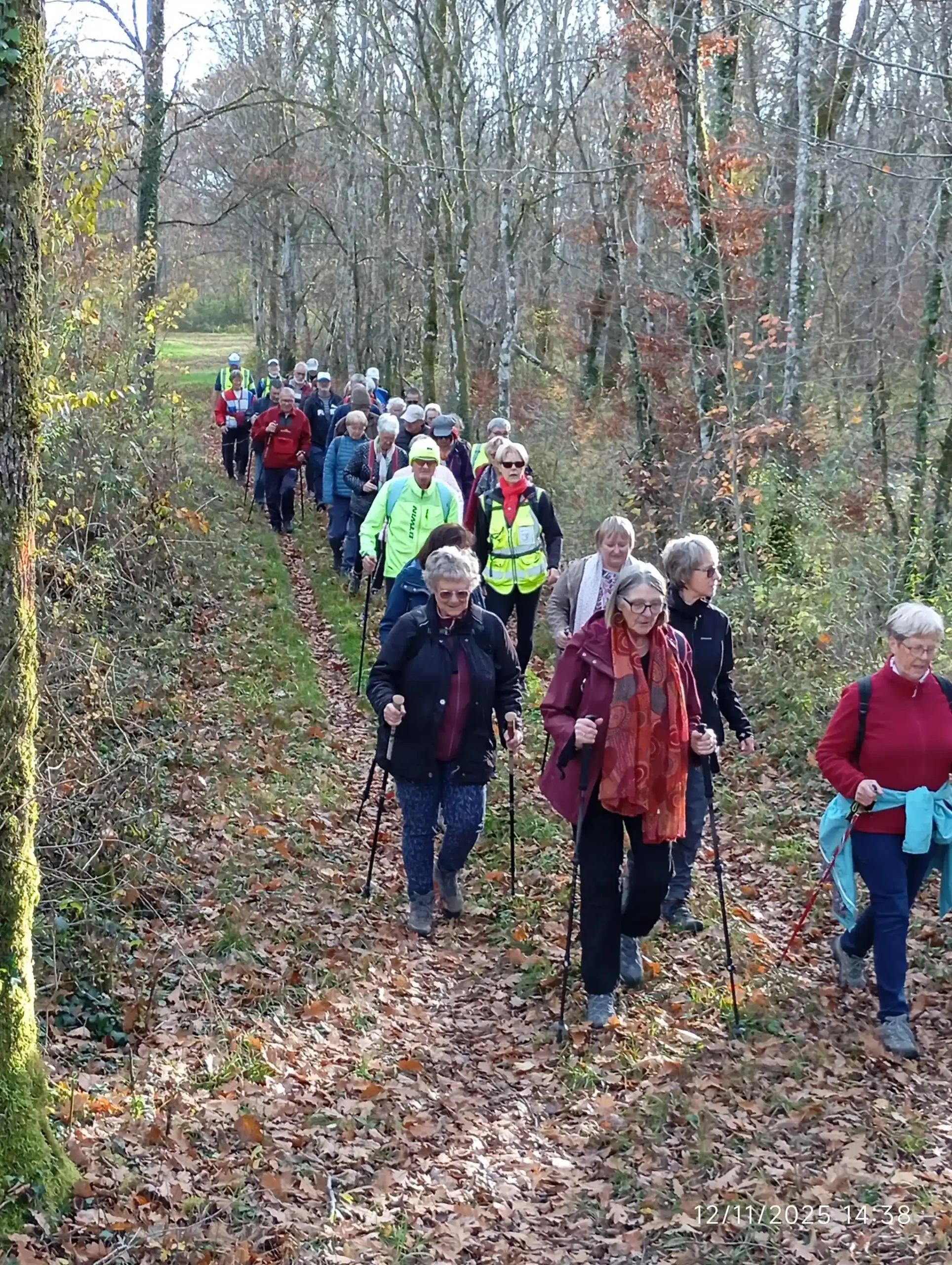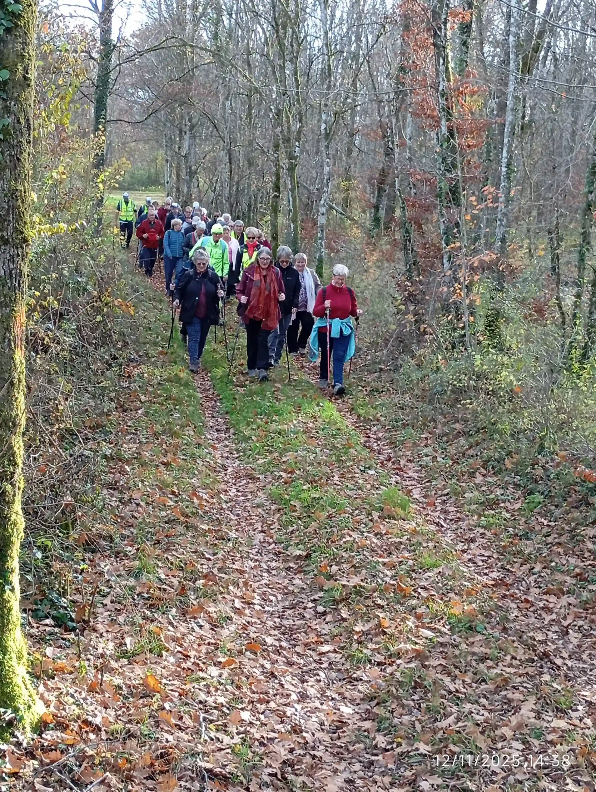La balade de ce jour s’est déroulée dans les bois à l’abri du vent avec une température très agréable 15°C pour un 12 novembre c’est exceptionnel mais nous sommes dans l’été de la Saint Martin alors à nous d’apprécier cette température.
