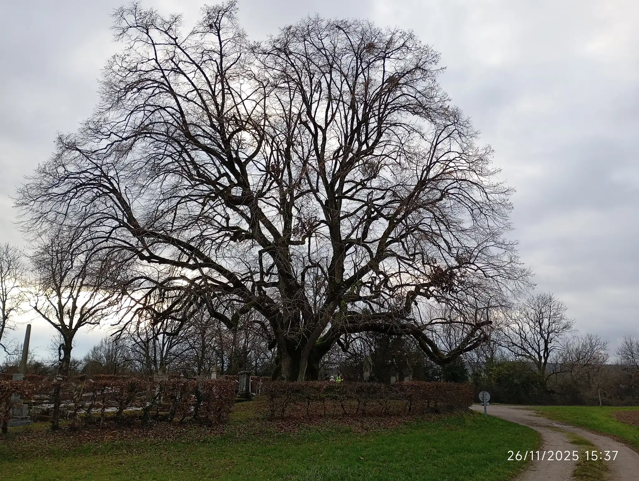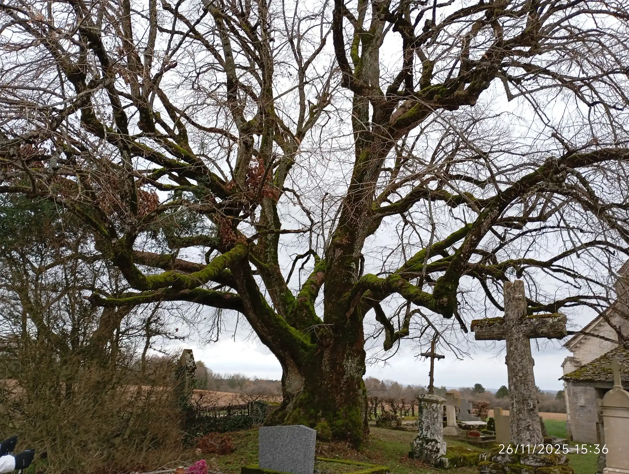 Retour aux voitures avec le soleil pour admirer au passage un arbre remarquable dit « arbre de SULLY » vieux de 400 ans devant l’église Saint Symphorien. Plusieurs arbres identiques ont été plantés à l’arrière de l’église et ont résisté aux années et aux tempêtes avec une envergure très imposante.