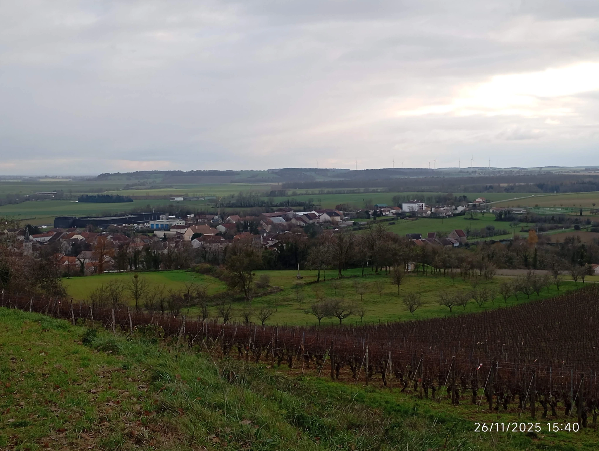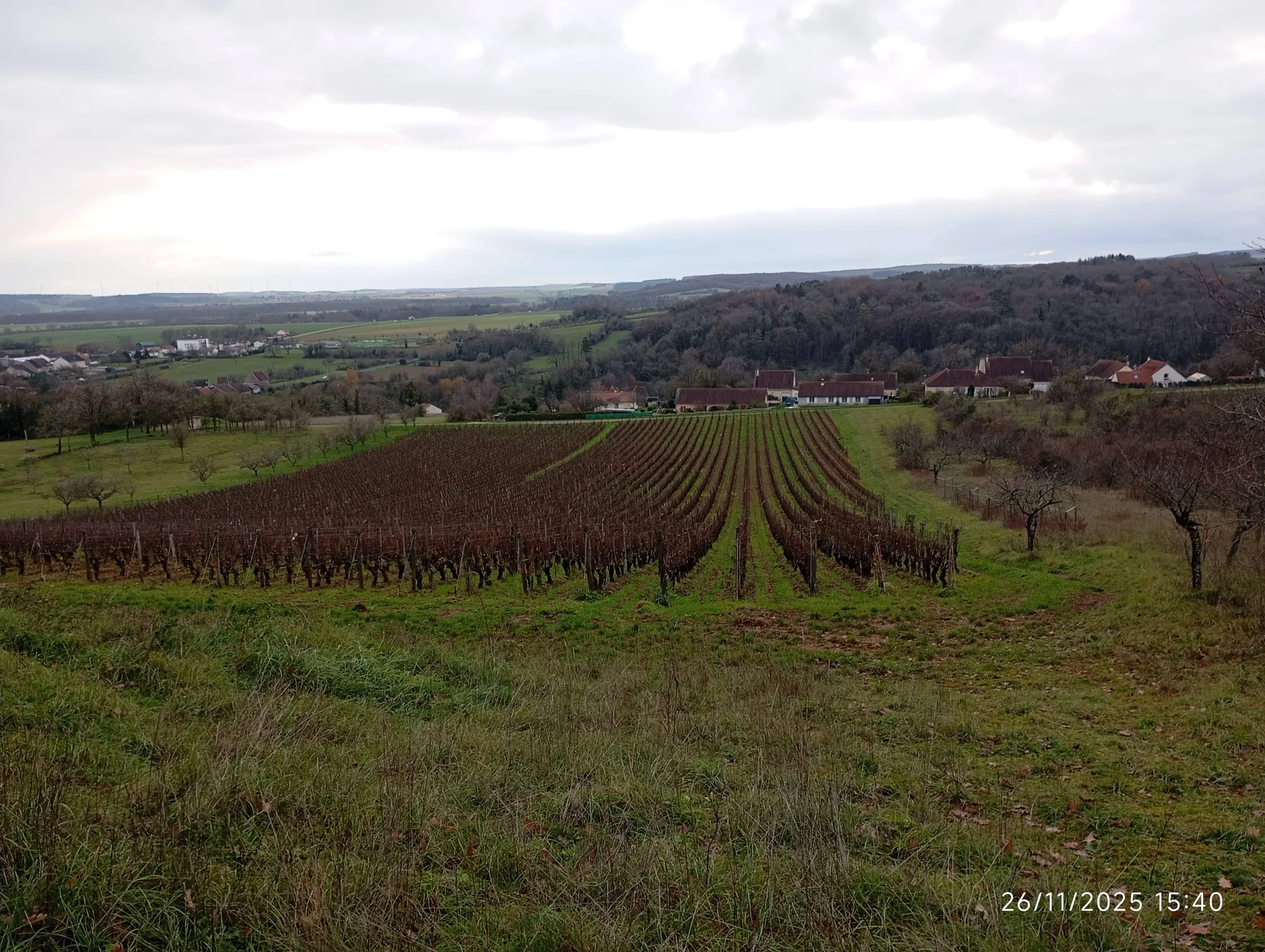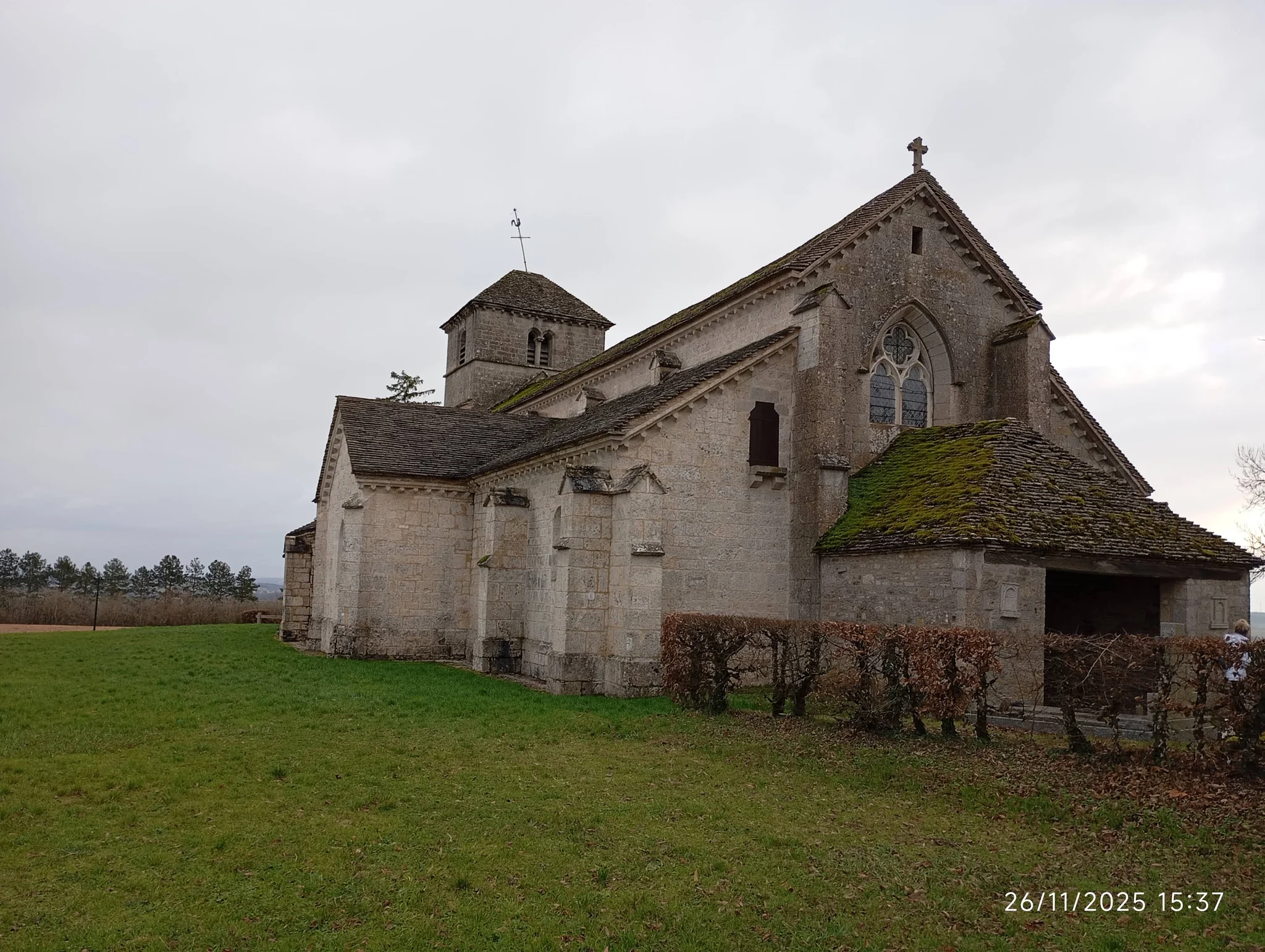 Aujourd’hui rendez-vous dans le Montsaugeonnais au-dessus des vignes de ce vignoble à proximité de l’église Saint Symphorien. La construction de l’église date du XVème siècle, elle est bâtie sur « la montagne ». De cet endroit privilégié nous avons un panorama exceptionnel sur la vallée et au-delà, jusqu’aux contre forts du Jura.