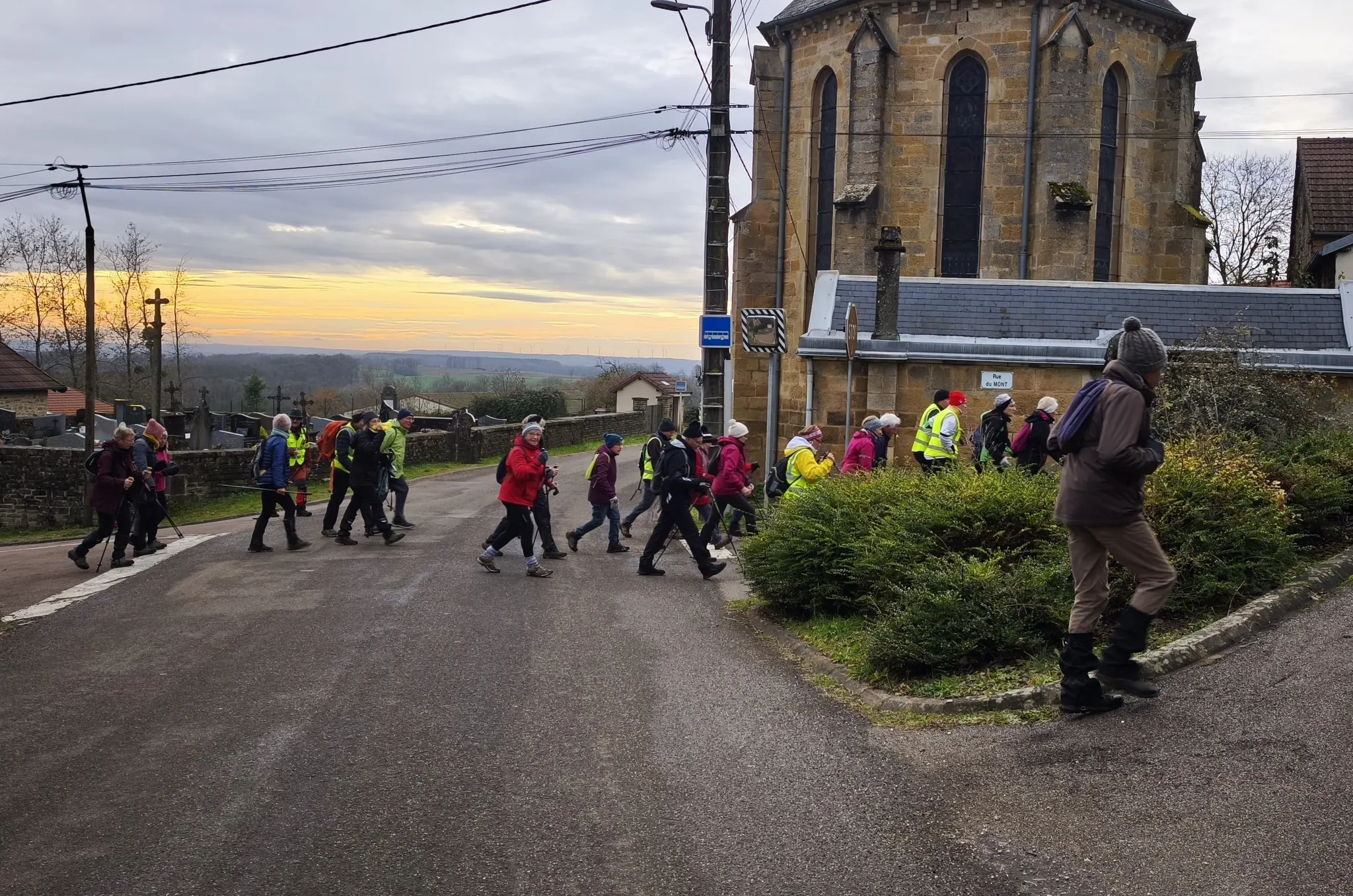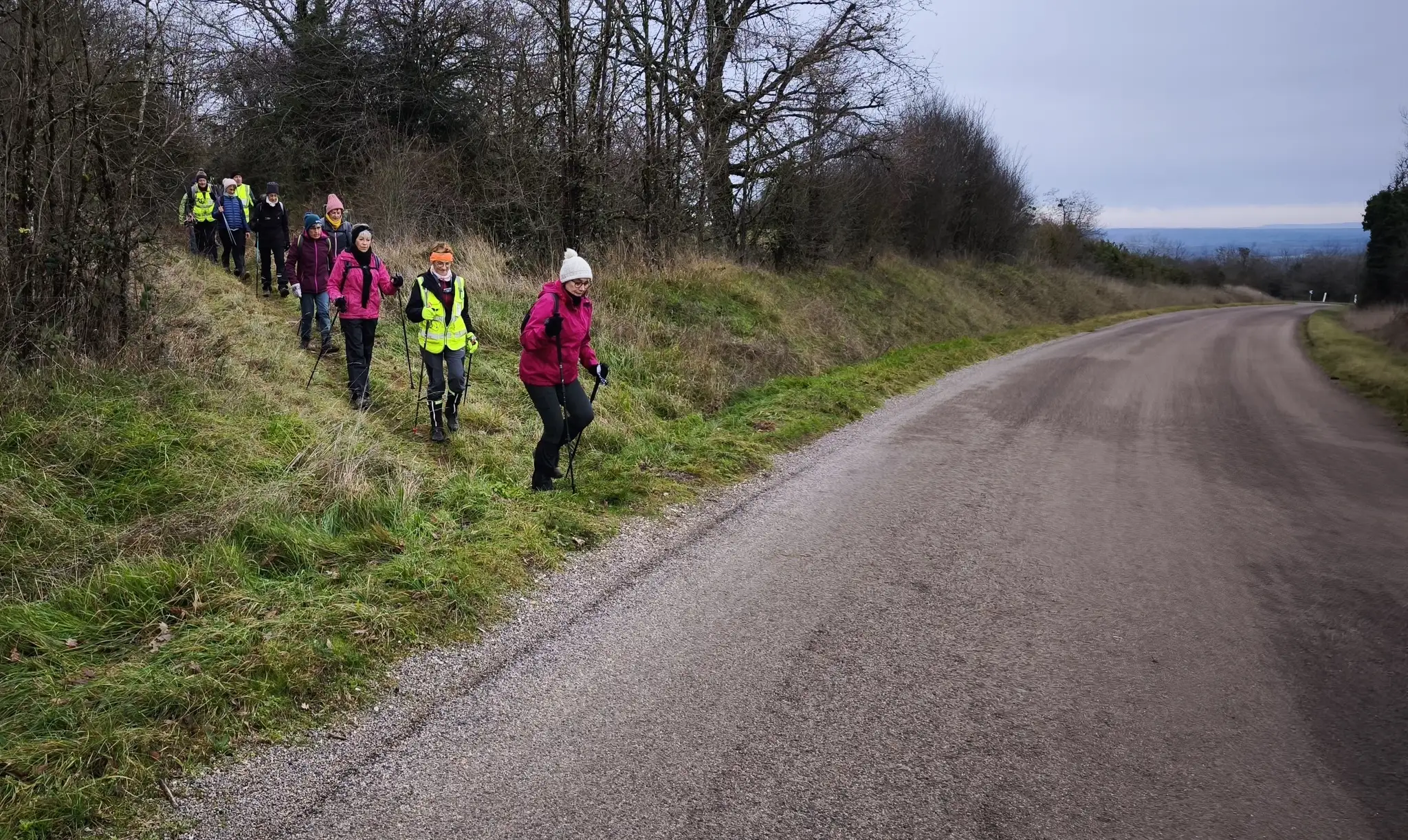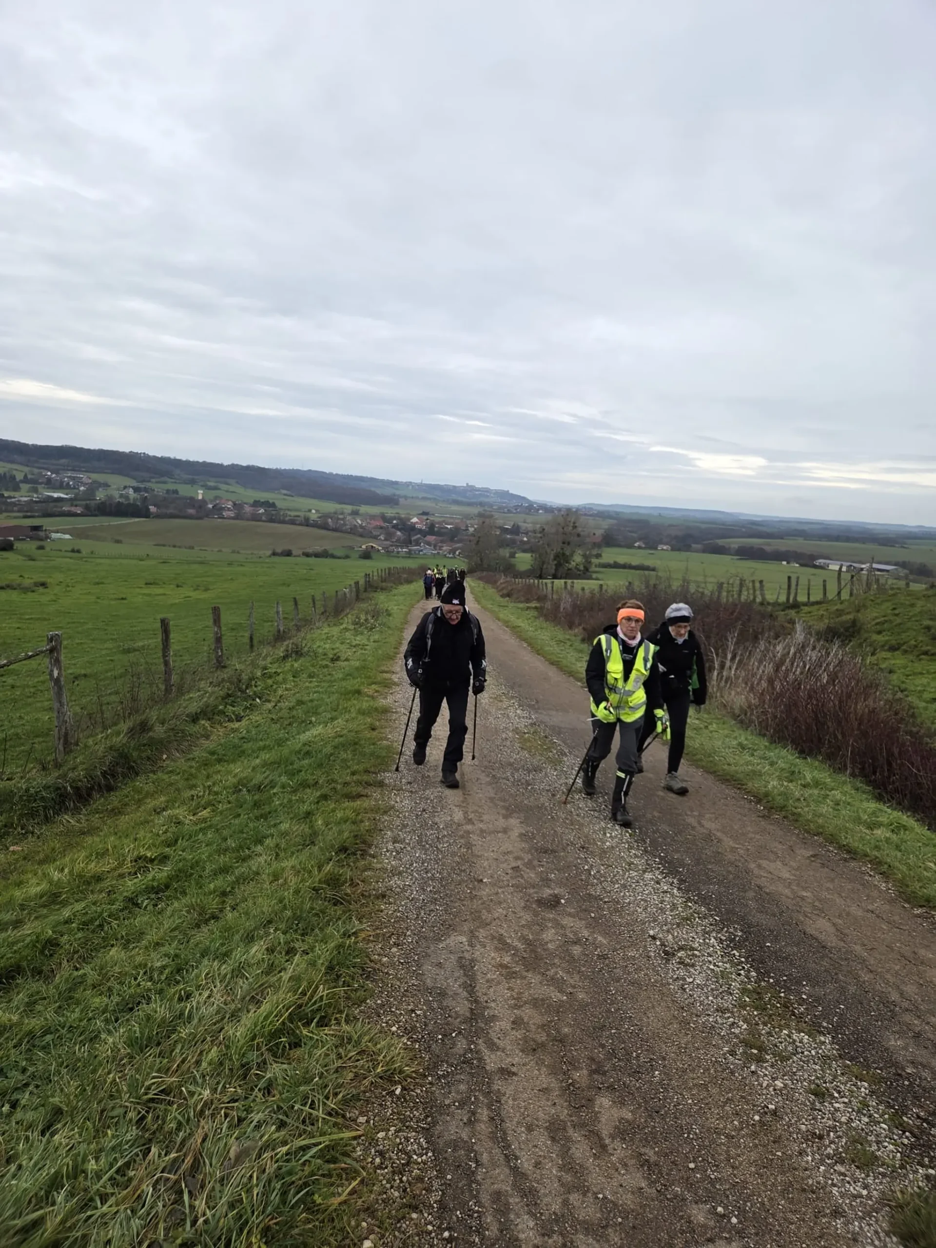 Moment Fort de la rando : Le groupe a eu le privilège, grâce à une visibilité exceptionnelle, d’apercevoir au loin la silhouette de la chaîne des Vosges et même le sommet enneigé du Mont Blanc ! Un spectacle grandiose qui a récompensé l’effort fourni et marqué un moment d’émerveillement collectif.