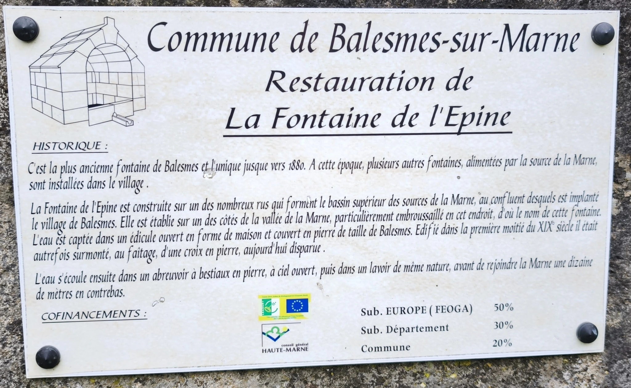 L’itinéraire, d’une distance de 12,5km a démarré par le passage à la Fontaine de l’Épine, la plus ancienne et unique fontaine de Balesmes jusque vers 1 880. Édifiée dans la première moitié du XIXe siècle elle comporte un édicule ouvert en forme de maison et couvert en pierre de taille qui était autrefois surmonté d’une croix.