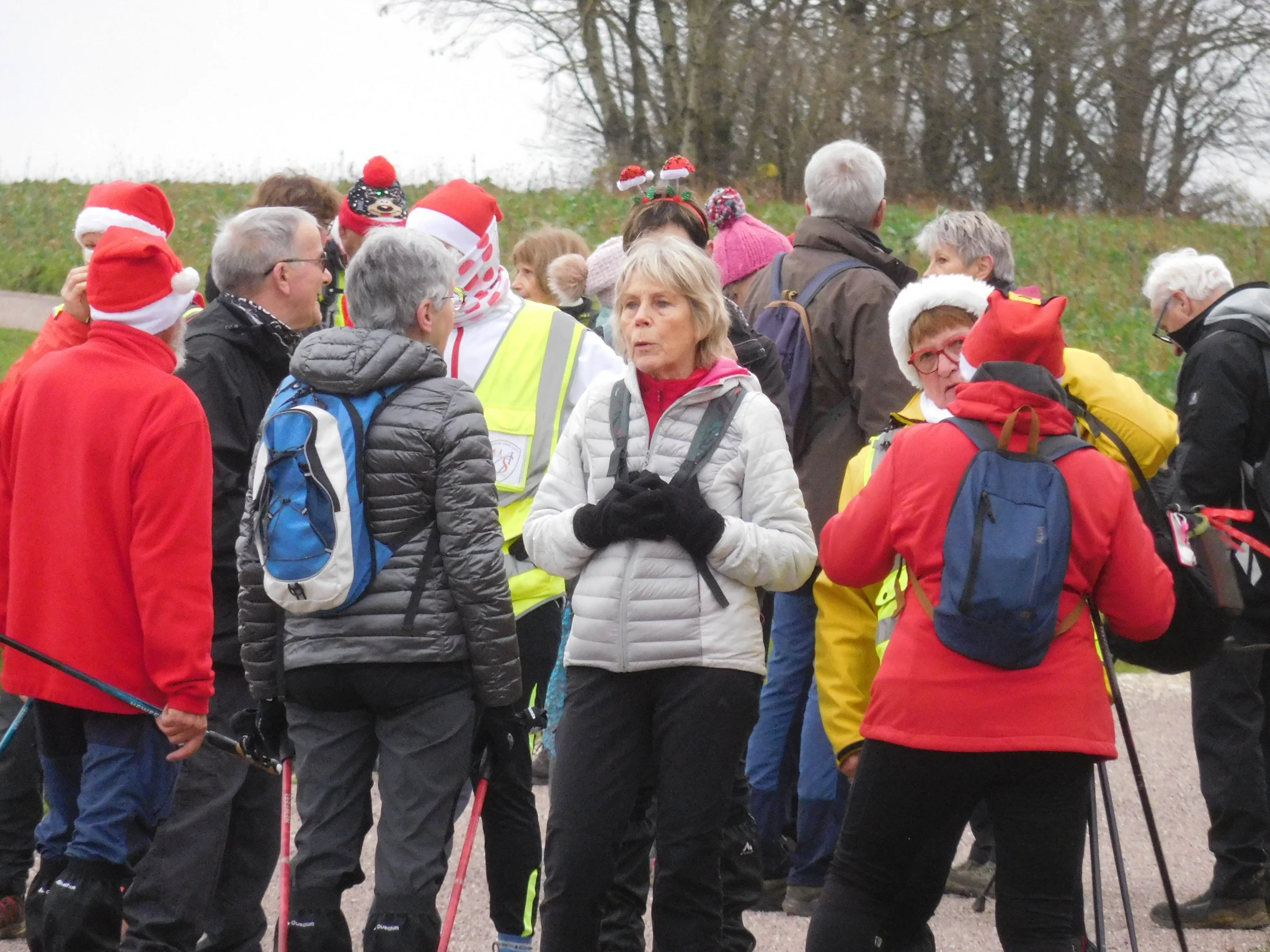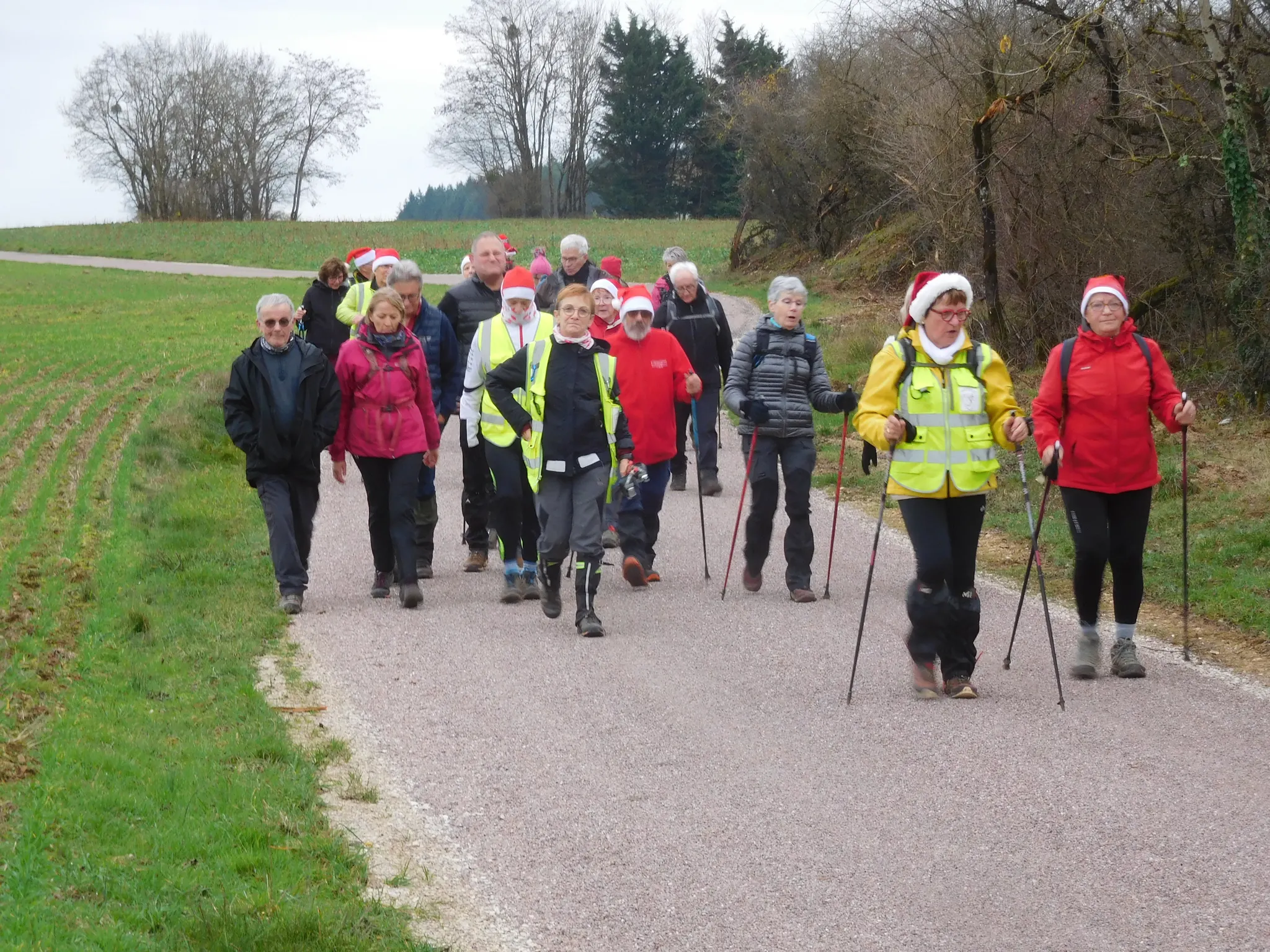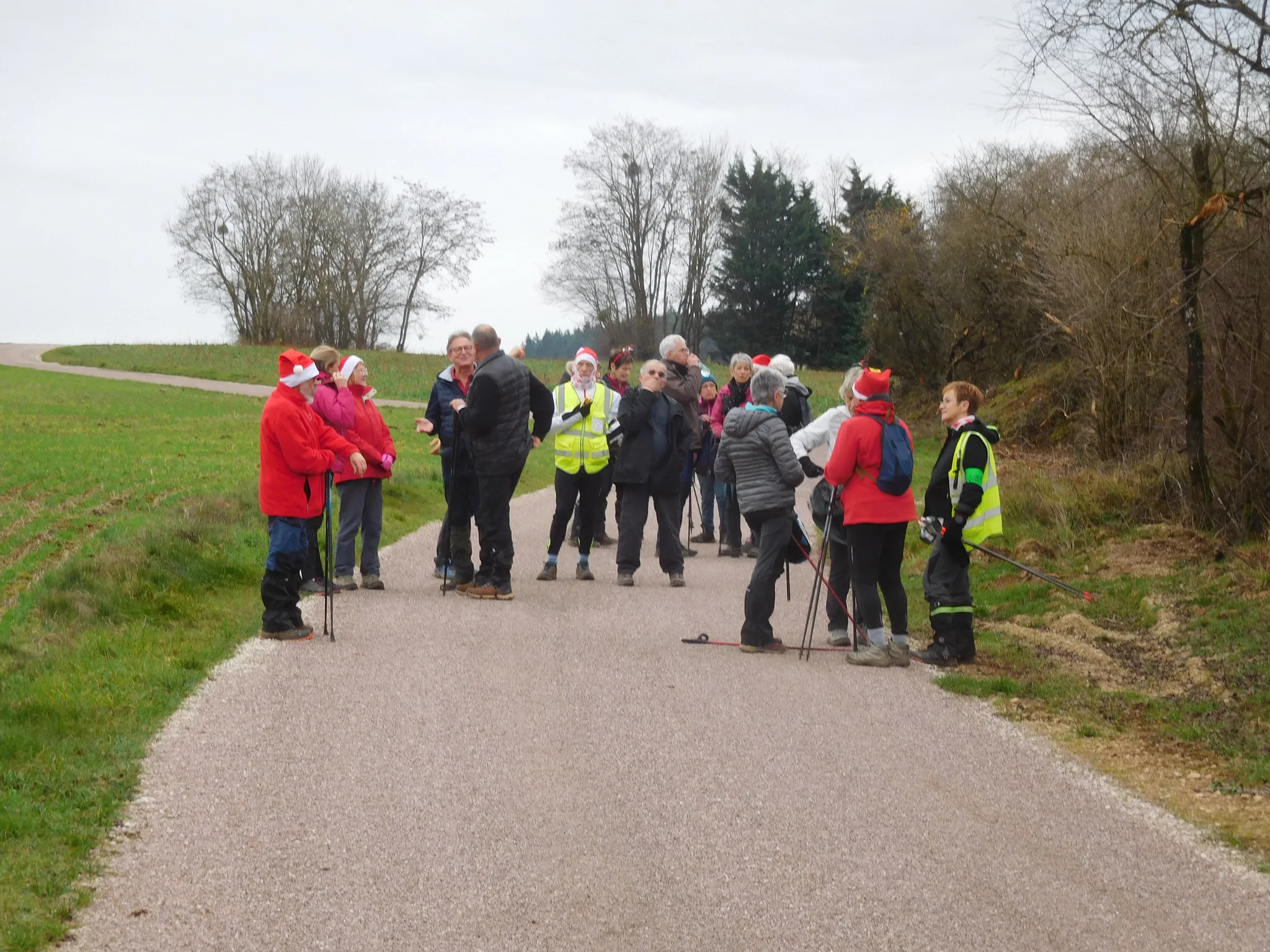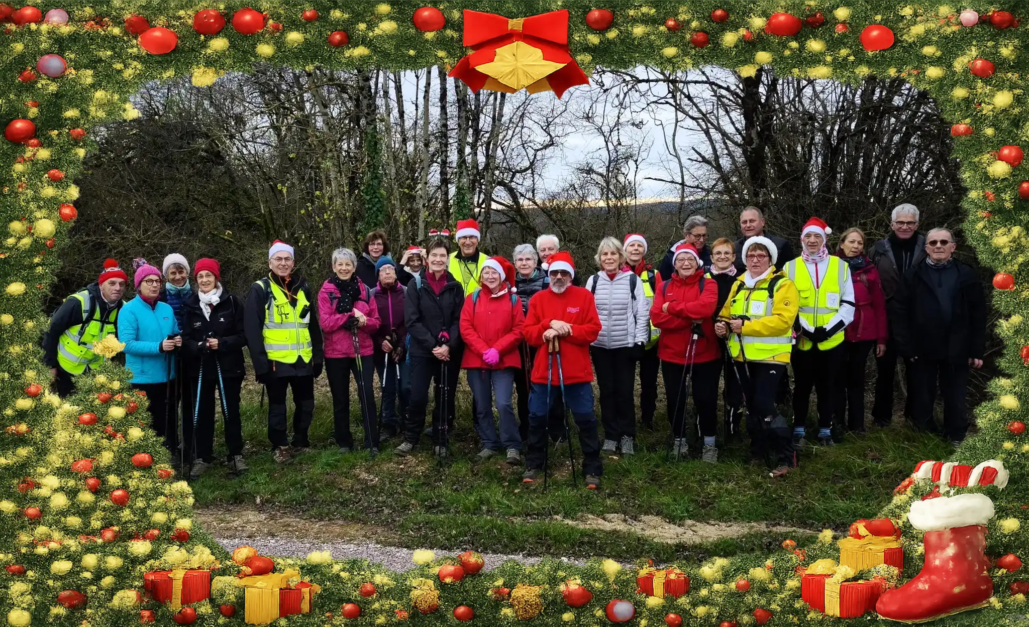Pour notre dernière marche tonique de 2025, nous étions vingt-sept marcheurs rassemblés à Rolampont au bord du canal « Entre Champagne et Bourgogne ». Un certain nombre d’entre nous étaient coiffés d’un bonnet de Noël, symboles les plus emblématiques des fêtes. Rouge, doux, décoré d’un pompon blanc, il incarne la magie, la chaleur et la joie de cette période enchantée.