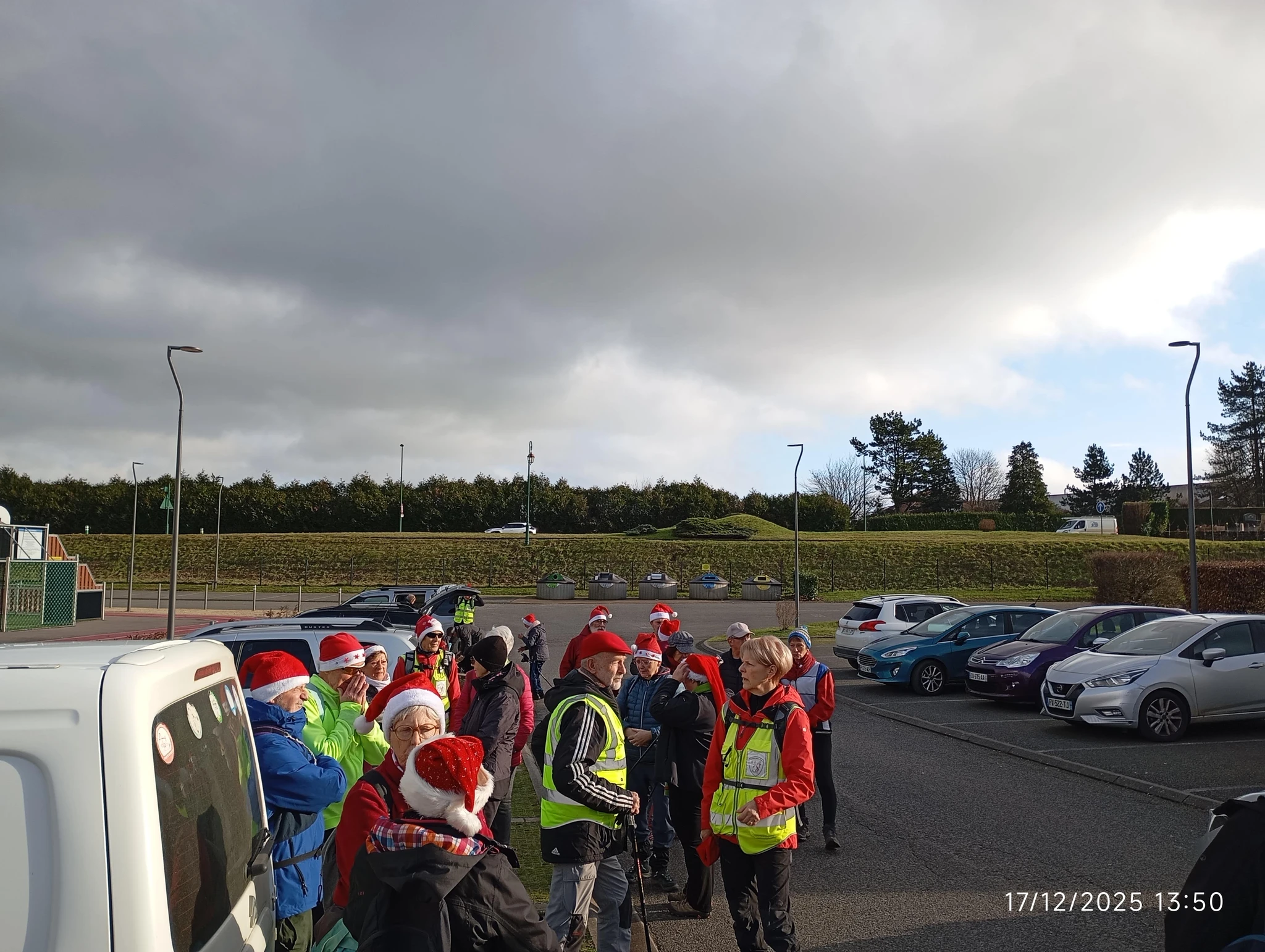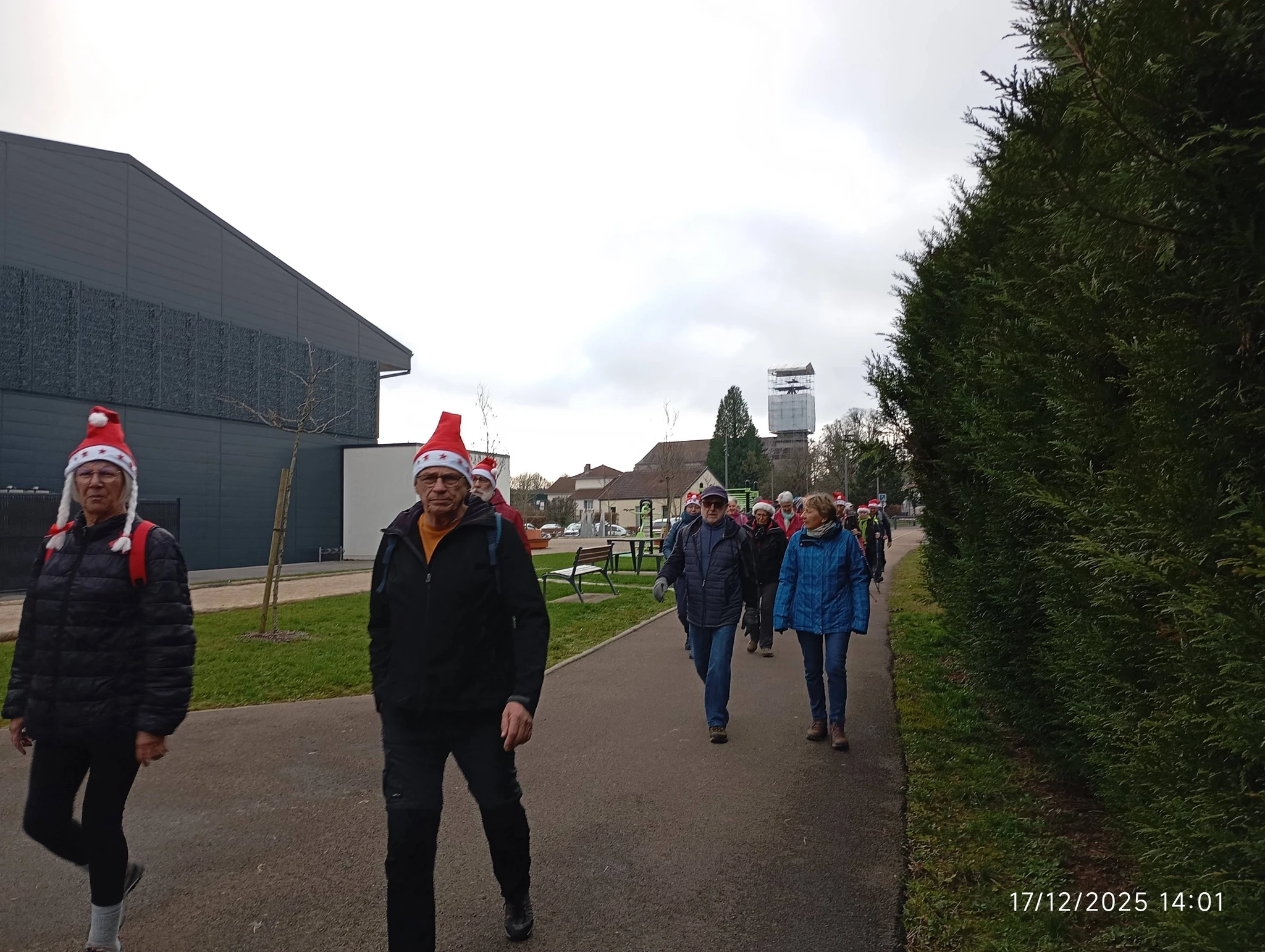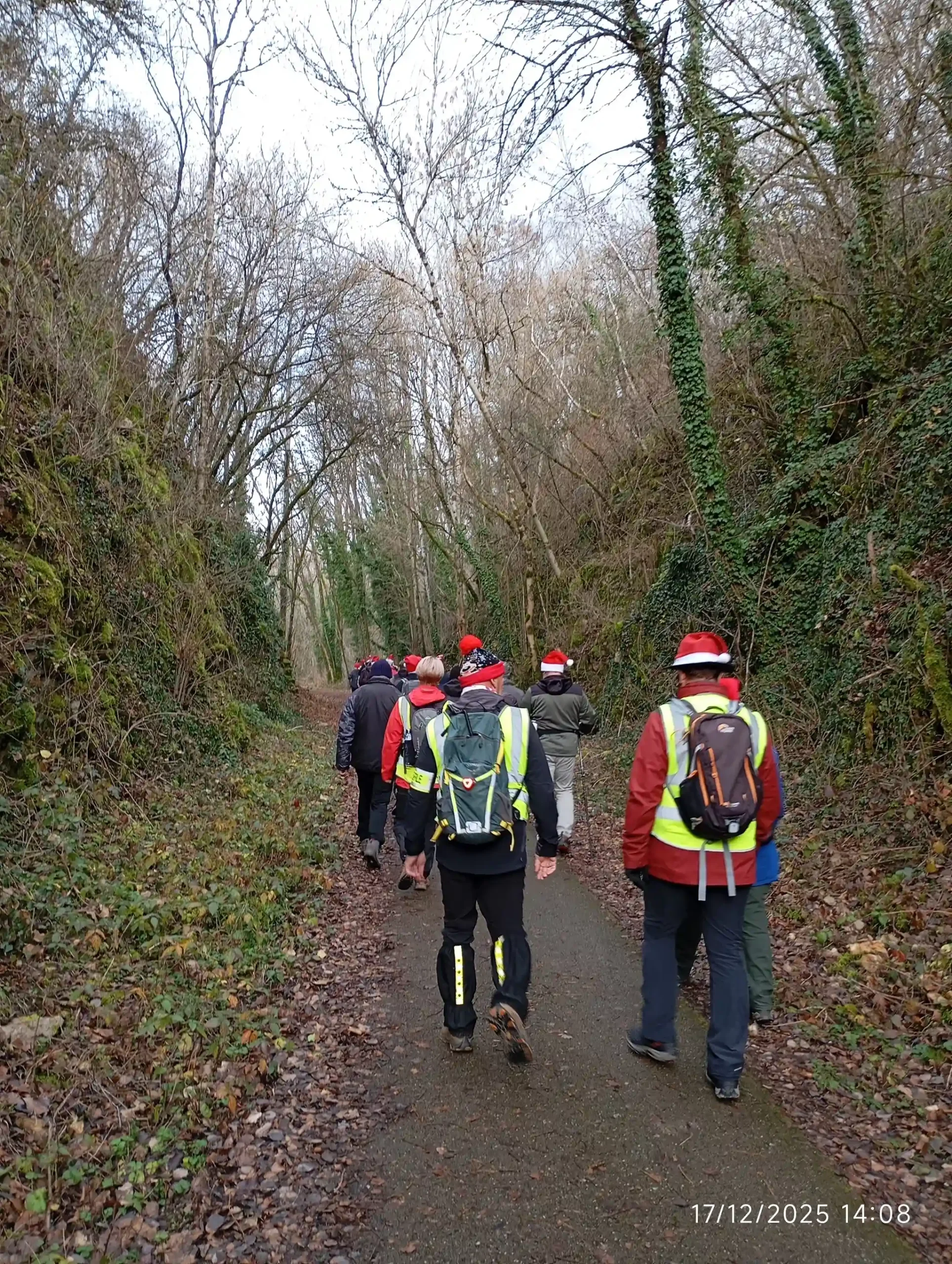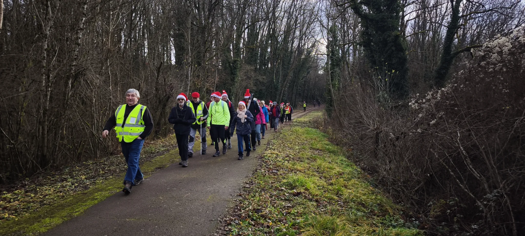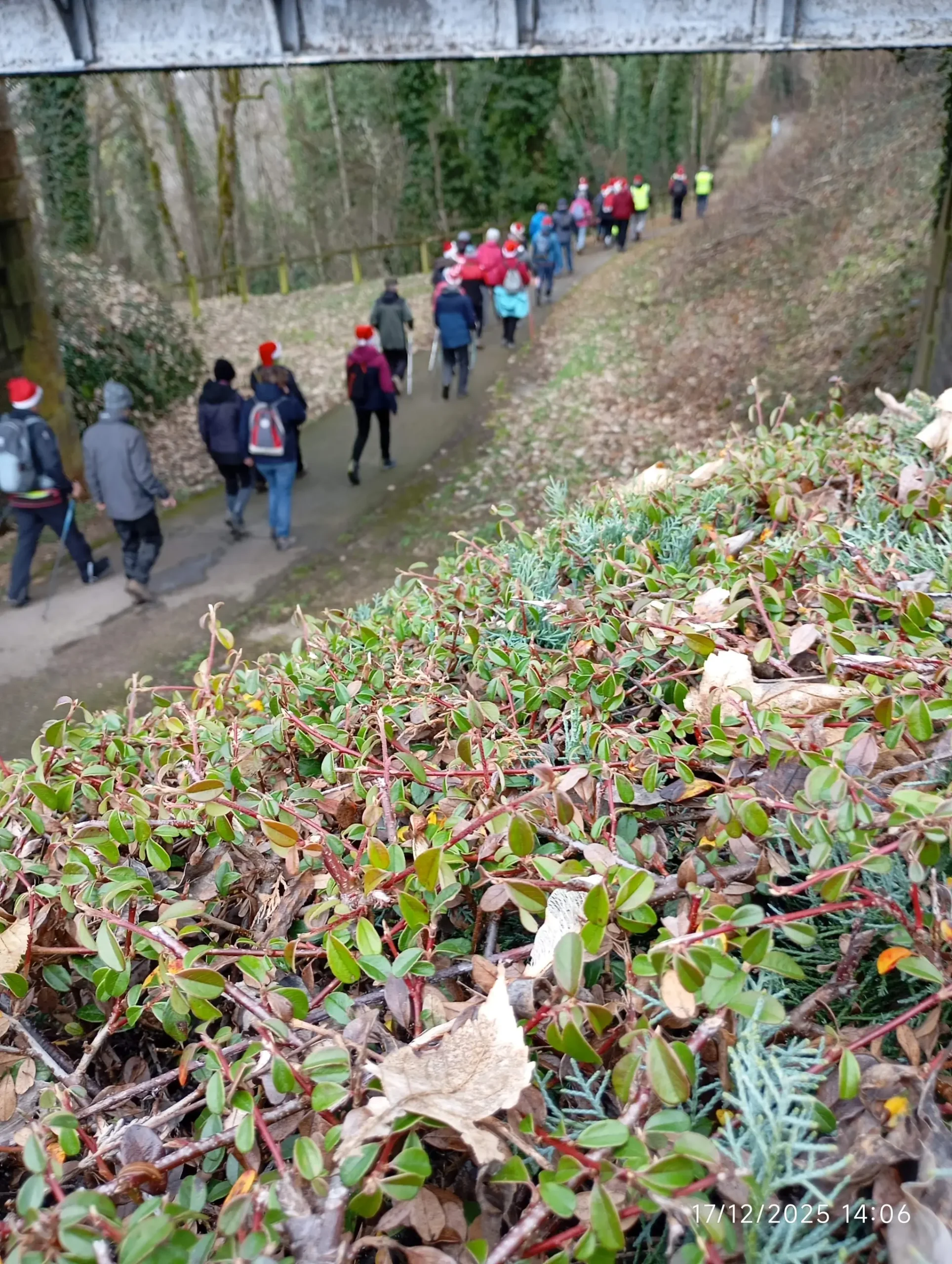 Un bon nombre de marcheurs avaient répondu à l’invitation du port de bonnets. Beaucoup de bonnets et pendentifs égayaient le groupe, …un bonnet attirait peut-être un peu plus l’attention 🙂 !