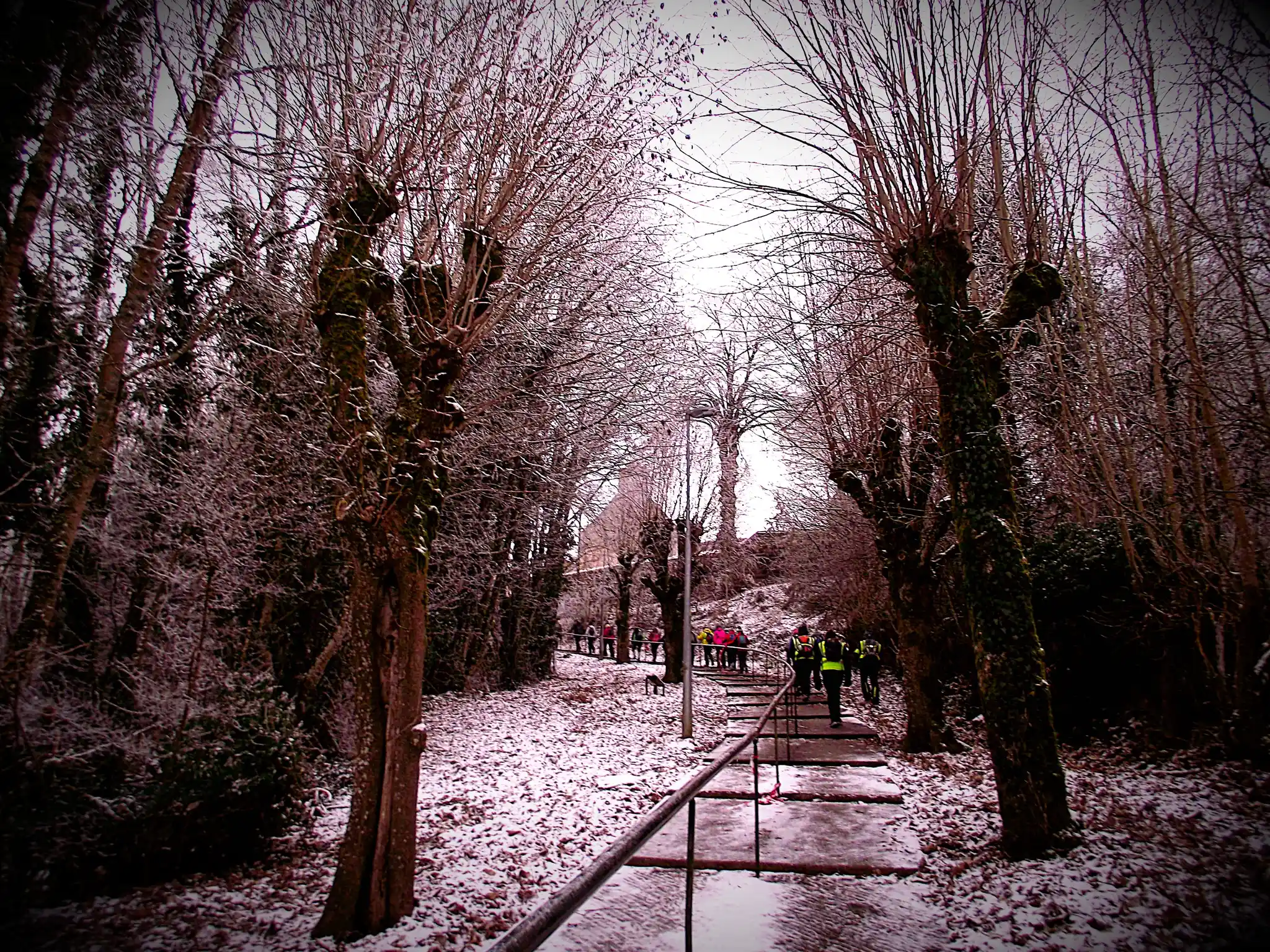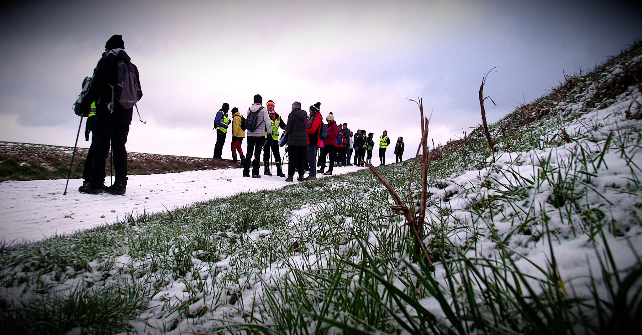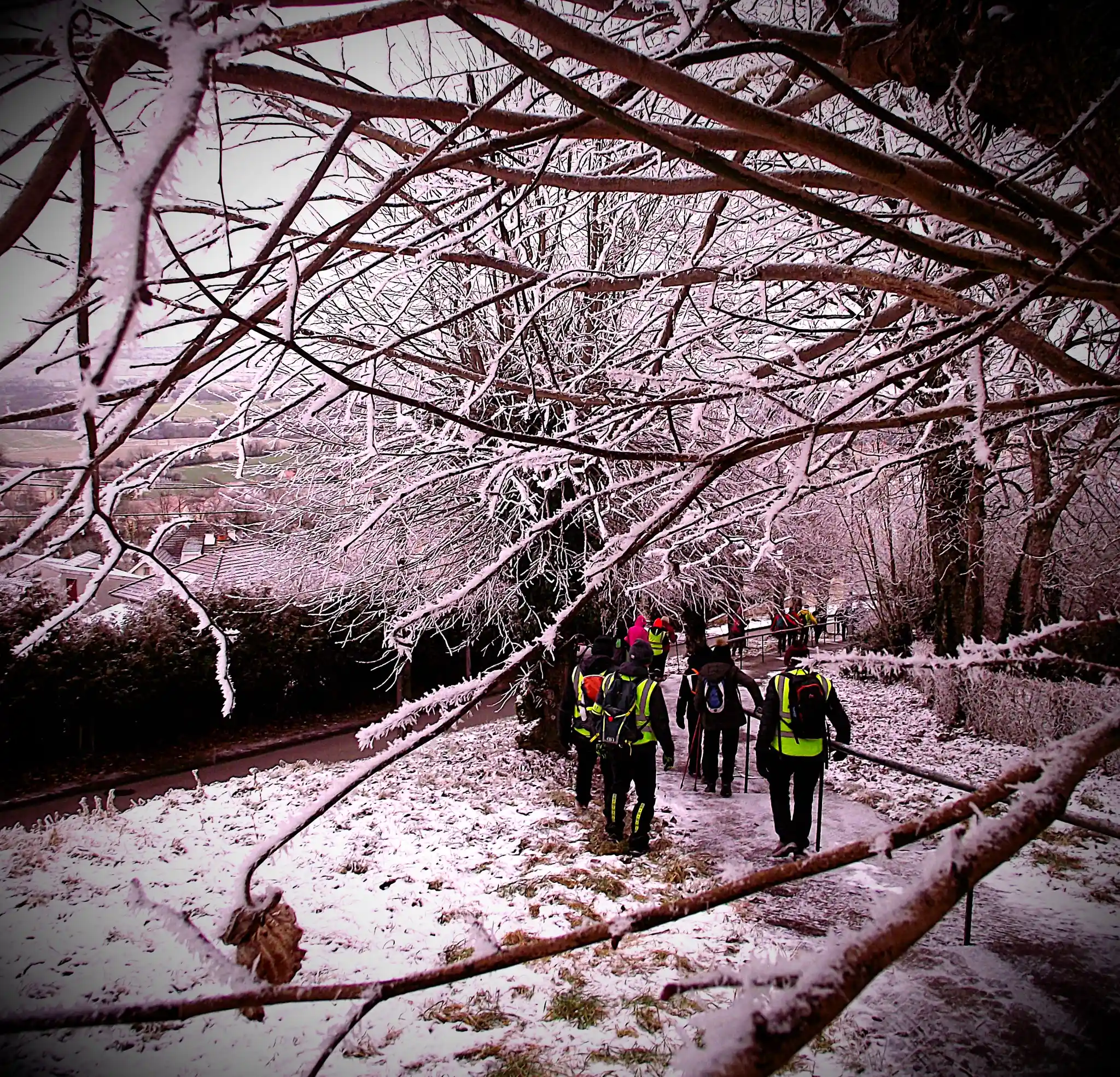 Pour certain(e)s, les bâtons ont été des alliés précieux pour stabiliser les appuis sur les plaques de givre.