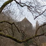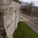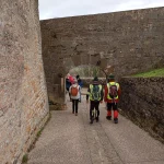 Nous passons devant la tour d’artillerie du petit Sault dont les murs atteignent une épaisseur de 7 m, celle-ci est dotée de deux salles voûtées reliées entre elles par un escalier monumental.