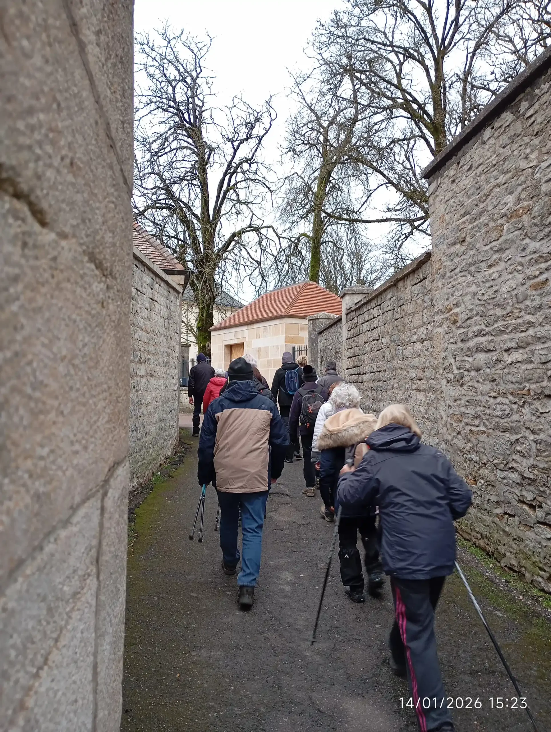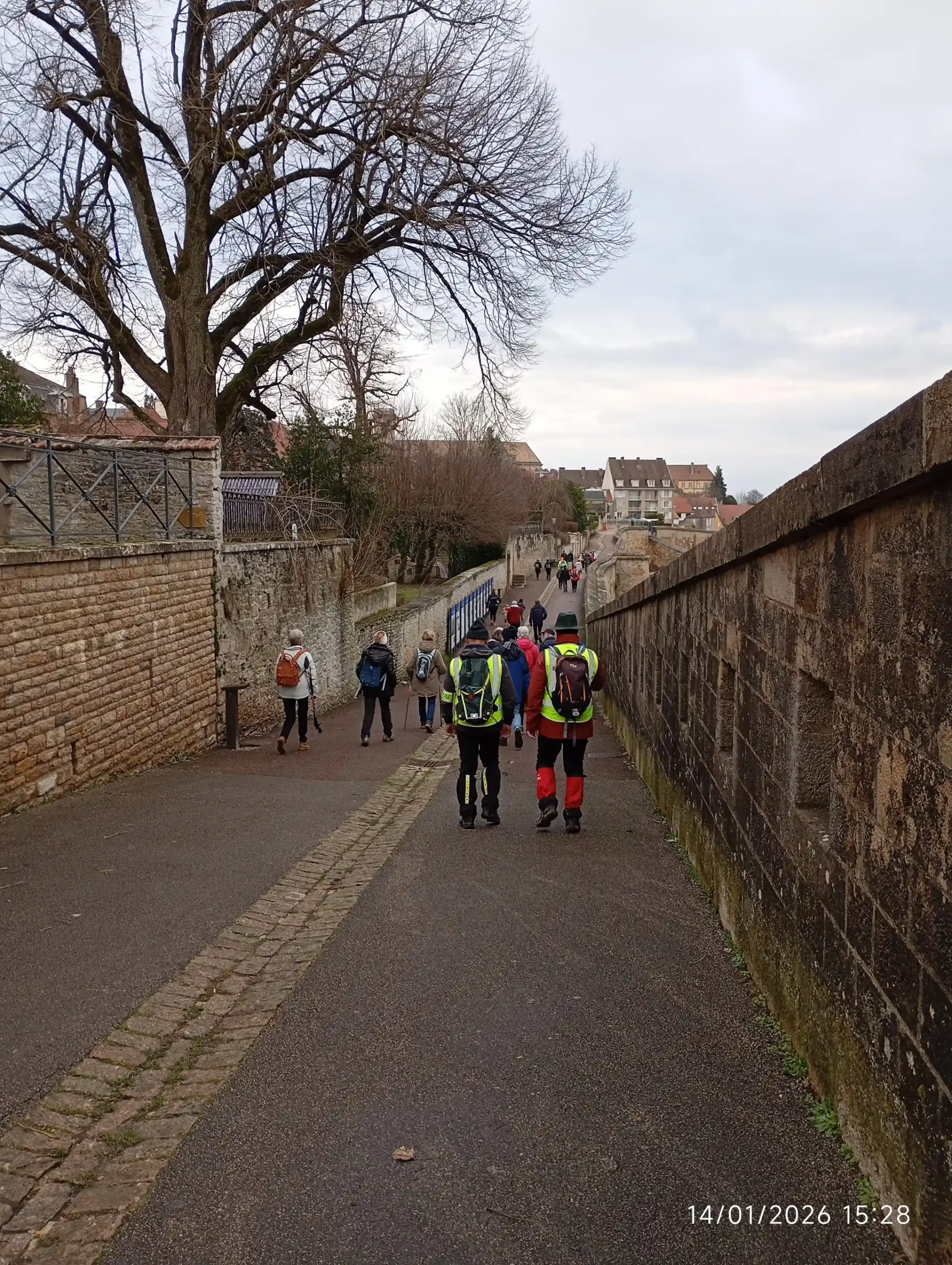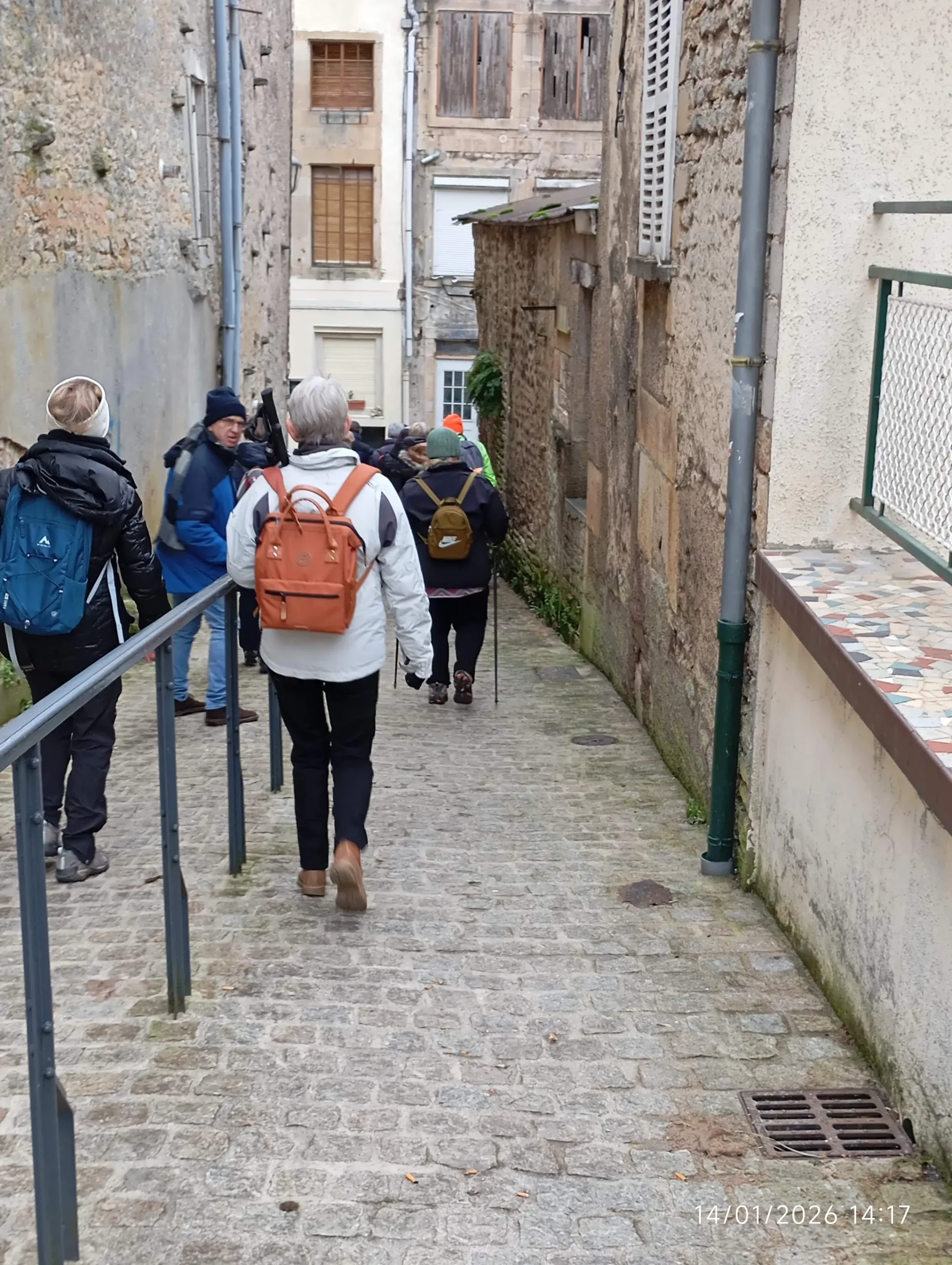 Aujourd’hui, jour de rentrée 2026 étant donné que mercredi dernier nous avions dû annuler en raison de mauvaises conditions météo. Après que chacun se soit présenté les vœux pour la nouvelle année et demandé des nouvelles des uns et des autres, nous empruntons l’ancienne rampe de la crémaillère que quelques-uns dans le groupe ont connu et emprunté depuis la gare pour se rendre en ville. C’est avec une certaine nostalgie du passé que chacun s’est remémoré sa jeunesse.