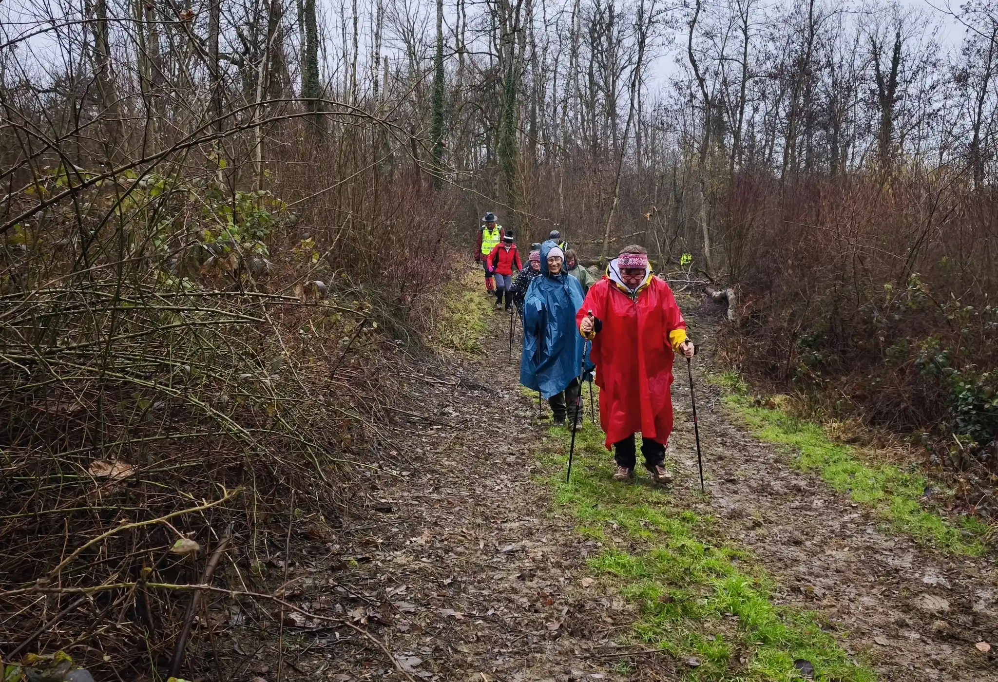 Malgré ces conditions météorologiques peu engageantes, les participants ont fait preuve de motivation et de dynamisme. Le rythme soutenu de la marche a rapidement permis de se réchauffer et de maintenir une bonne énergie tout au long du parcours. Cette sortie, certes éprouvante autant sur le plan climatique que physique, a renforcé la cohésion du groupe et démontré que la volonté et le plaisir de bouger prennent le dessus, même par mauvais temps, et un terrain un tantinet gras ! 🙂