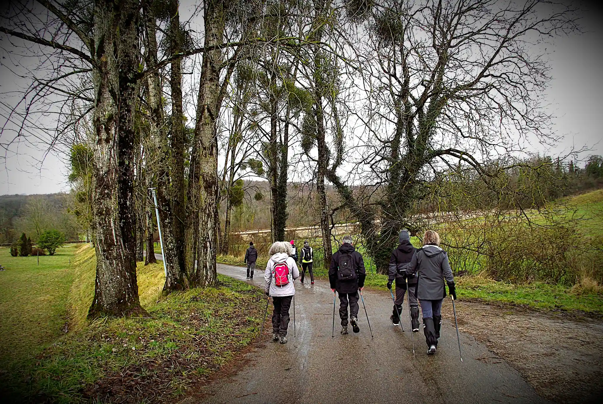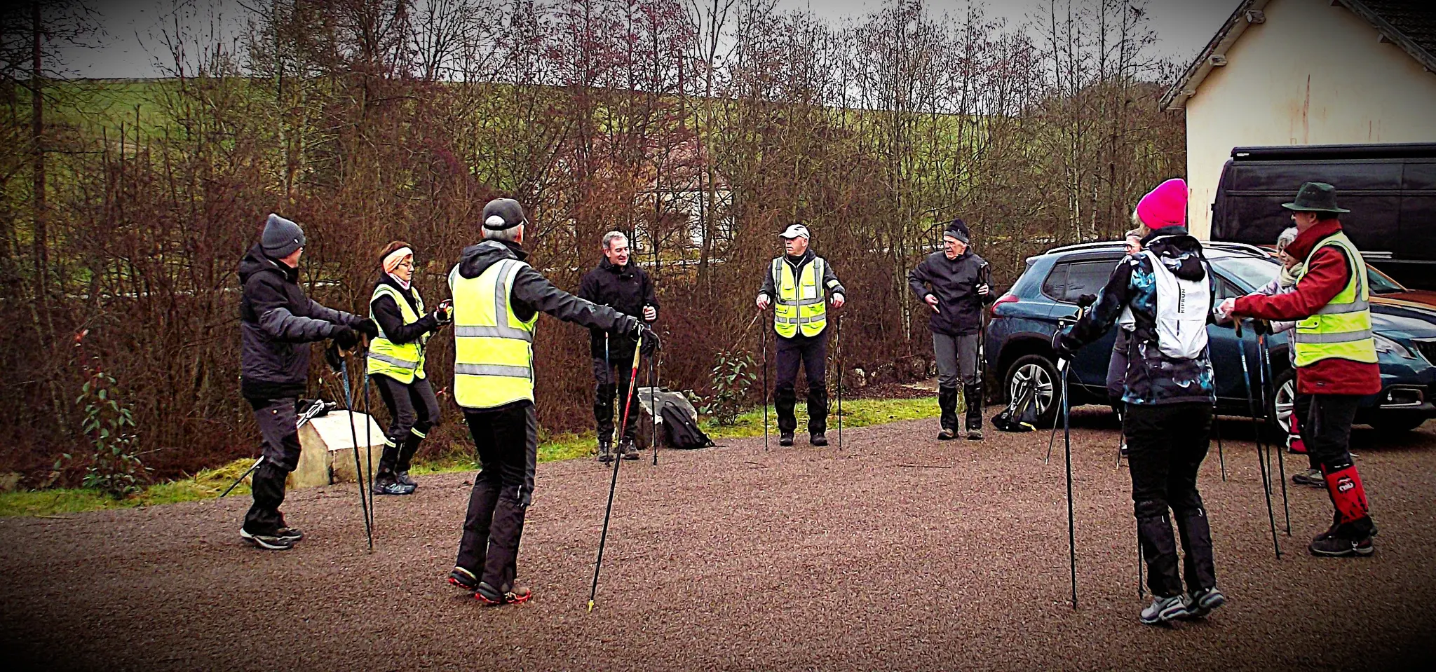 Depuis le cimetière de Foulain, (ou presque !) ils étaient onze à s’élancer à 14h pour la marche nordique du jour.