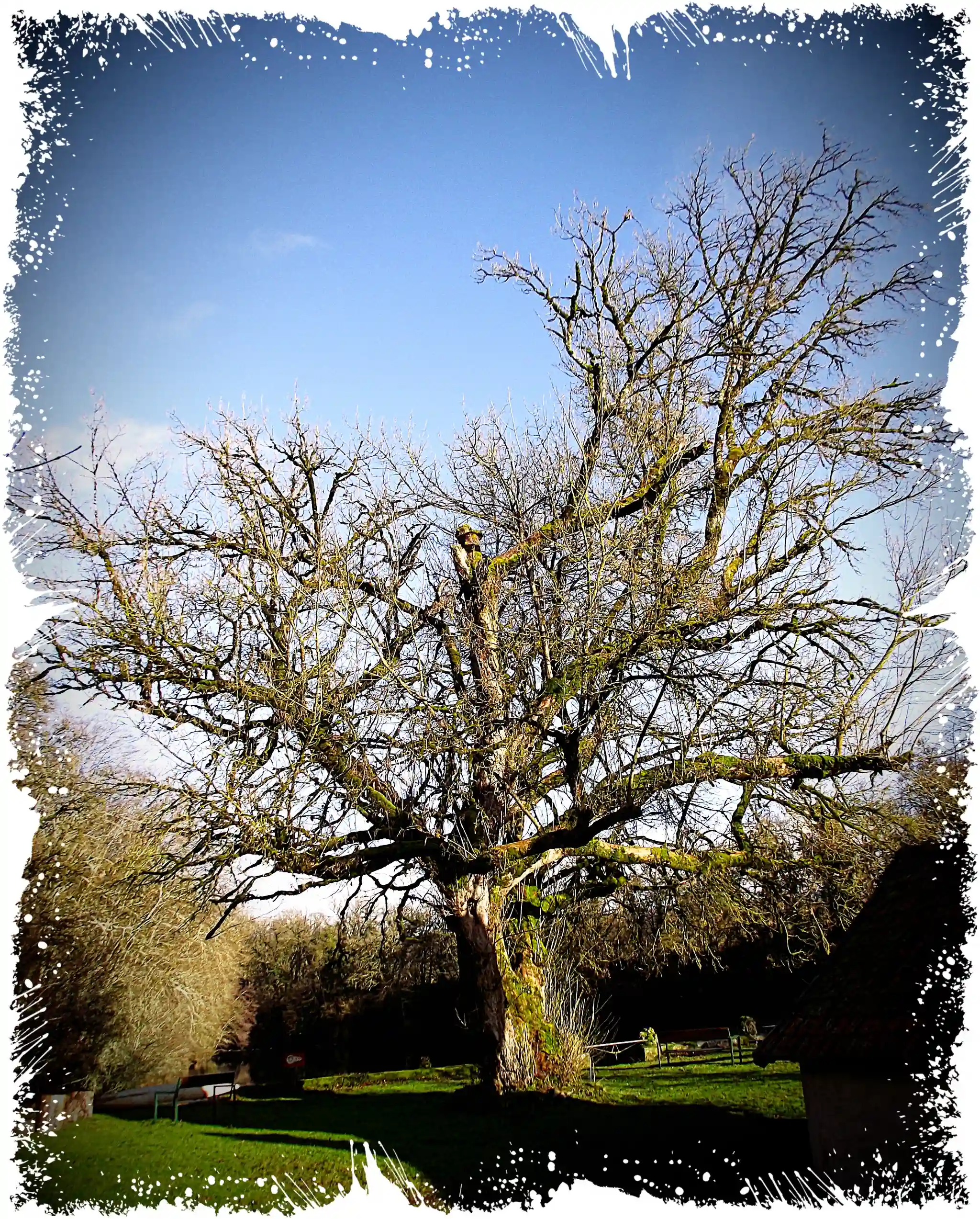 Le genre des érables (acer) comprend près de 60 espèces dans le monde. L’arbre remarquable de Moiron n’est pas un érable champêtre (une espèce locale très courante) facilement reconnaissable. Il s’agit plutôt d’un arbre d’ornement importé, du genre (acer), mais je ne connait pas avec certitude son aire d’origine. Peut-être qu’avec l’apparition des feuilles au printemps il sera plus facilement identifiable.