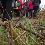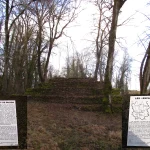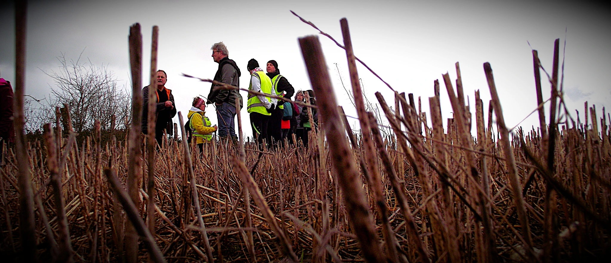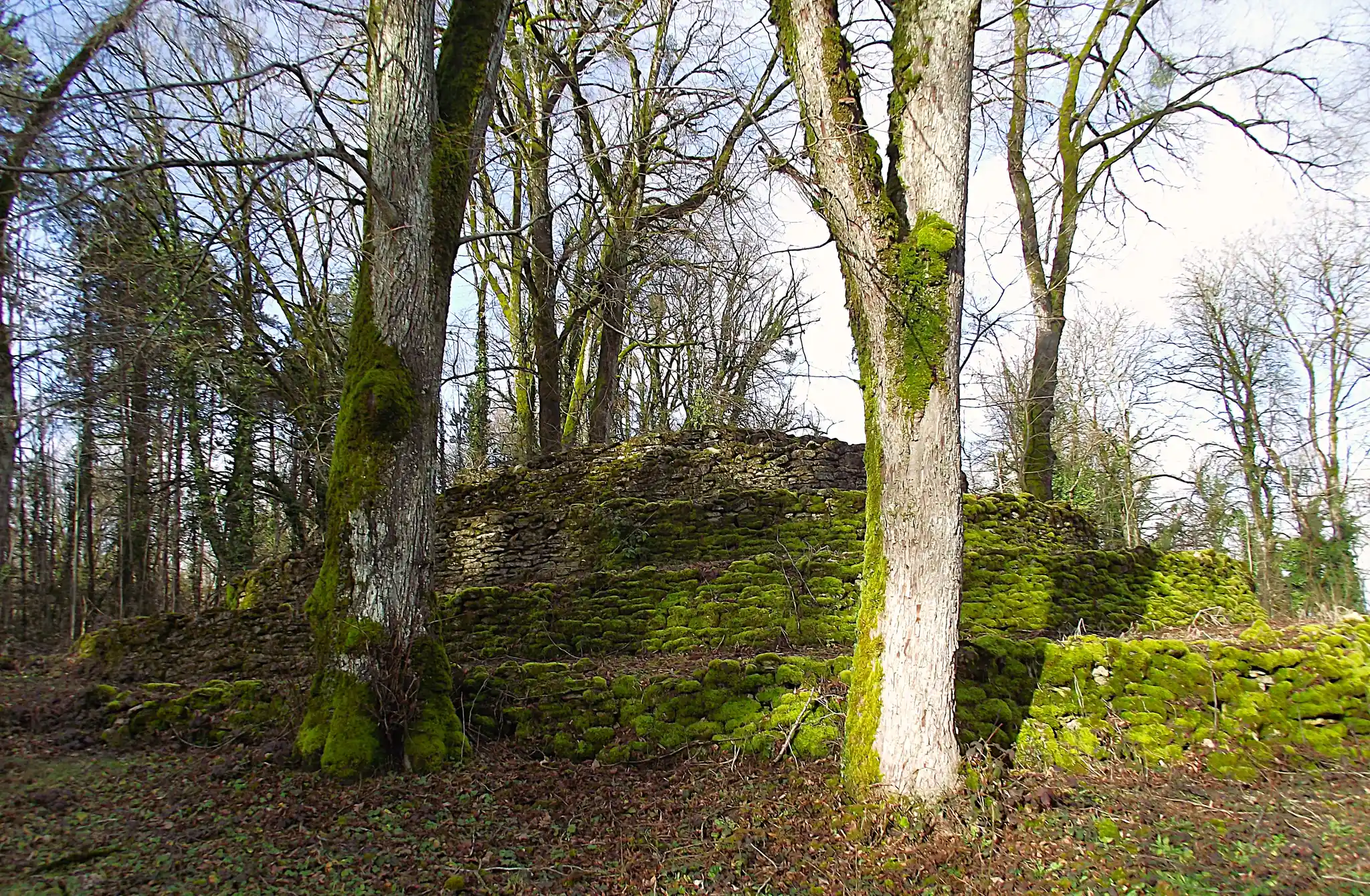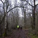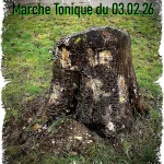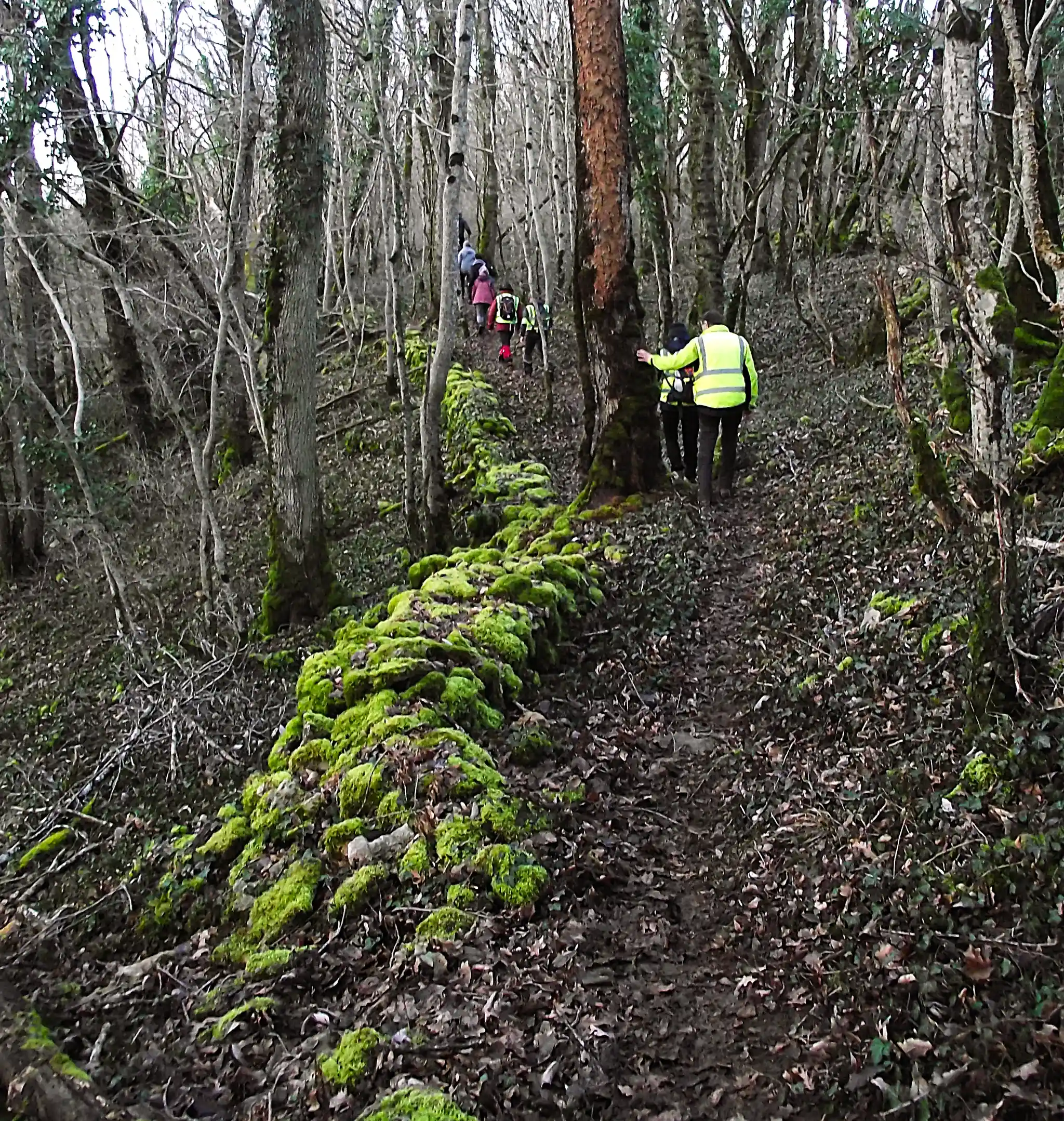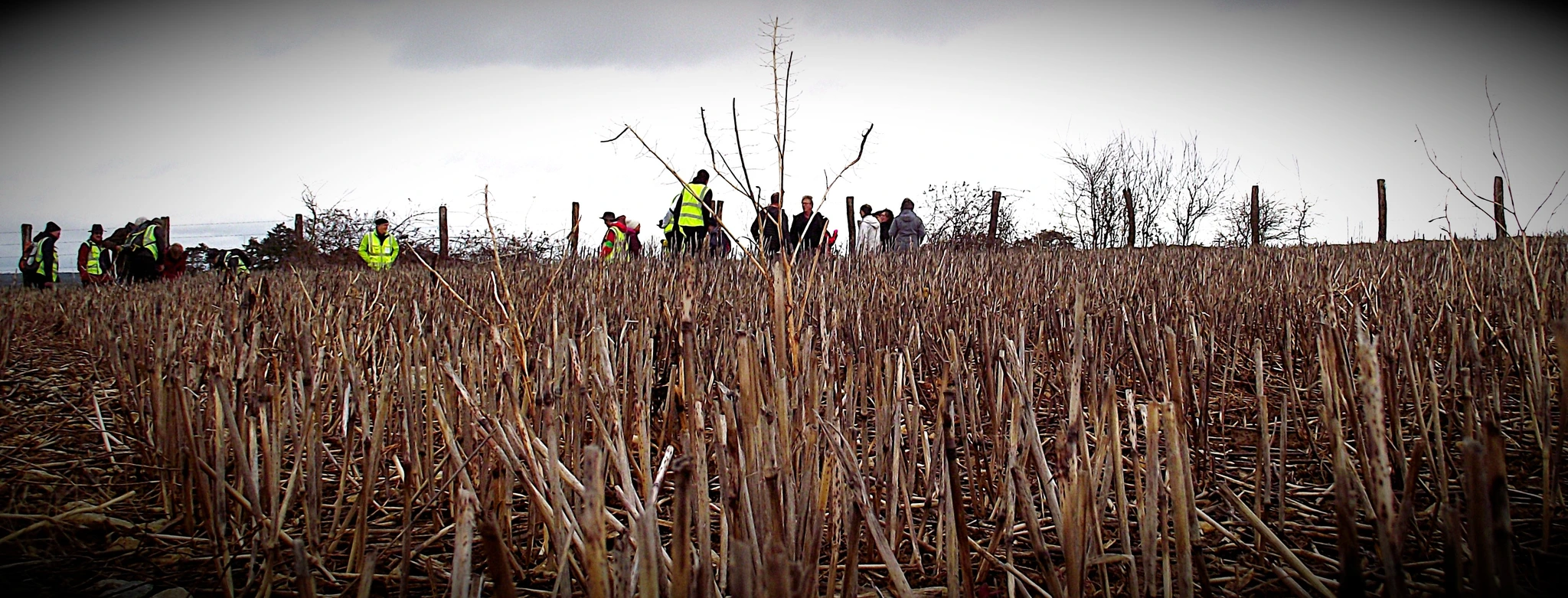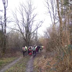 Un détour s’imposait pour visiter l’escargot de Buzon. Avant nous, les marcheurs « champêtres » l’avaient visité le 21 janvier dernier, (voir les commentaires d’Alain S. sur le blog), Ce tertre édifié par les séminaristes de Langres à la fin du 19e siècle servait occasionnellement à des processions saisonnières. Les fidèles s’installaient sur le chemin périphérique en spirale formant terrasse, long de 150 mètres, jusqu’à la plateforme sommitale. Au sommet le « Supérieur » dirigeait la cérémonie sans élever la voix, en raison de la dispersion sphérique naturelle du son de sa voix dans l’air environnent. La table de pierre qui couronnait l’édifice ainsi que divers aménagements installés en périphérie ont peu à peu disparu. Les ormes qui ont été plantés en bordure à cette même époque sont toujours bien vivants.