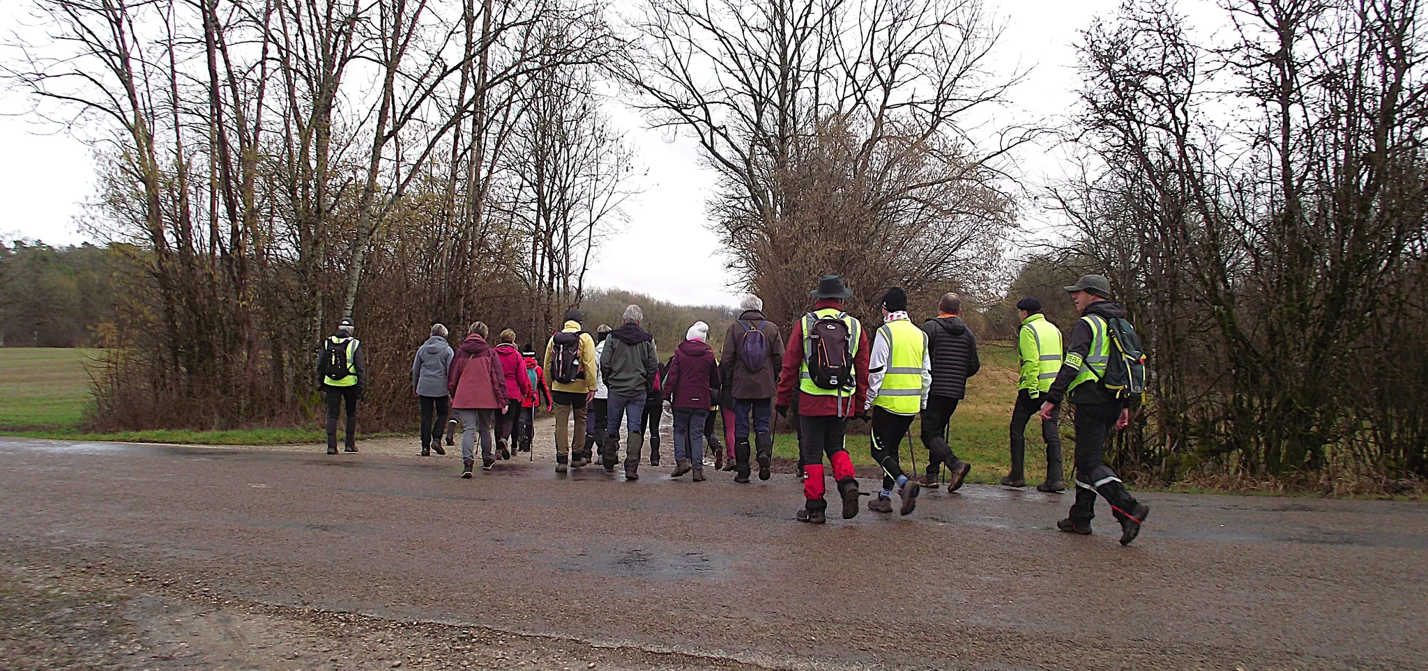 Le groupe de 26 marcheurs réunis à Perrancey s’arment de courage pour partir à la conquête d’une avancée du plateau de Langres délimitée par les vallées de la vallée de la Mouche, de Marne, de la Bonnelle, et le vallon de Lanvaux du coté de Vieux-Moulins.