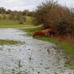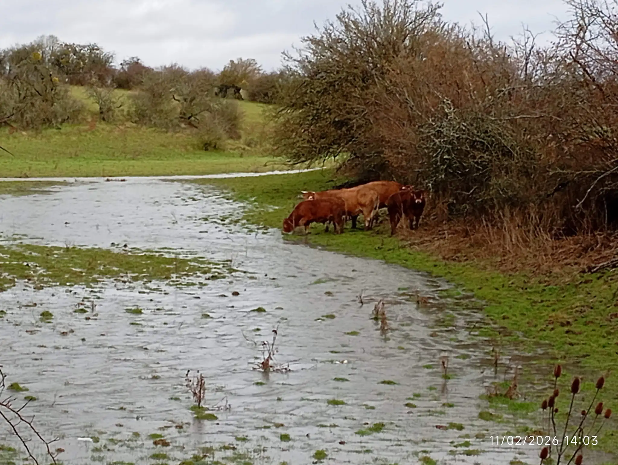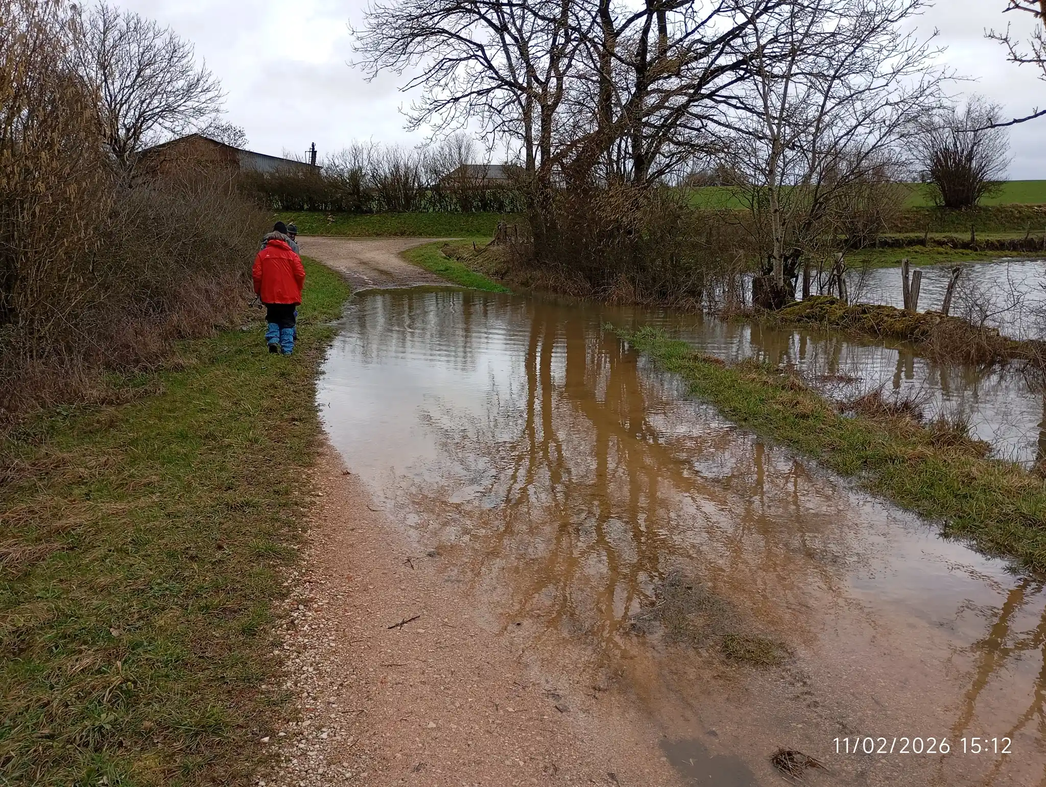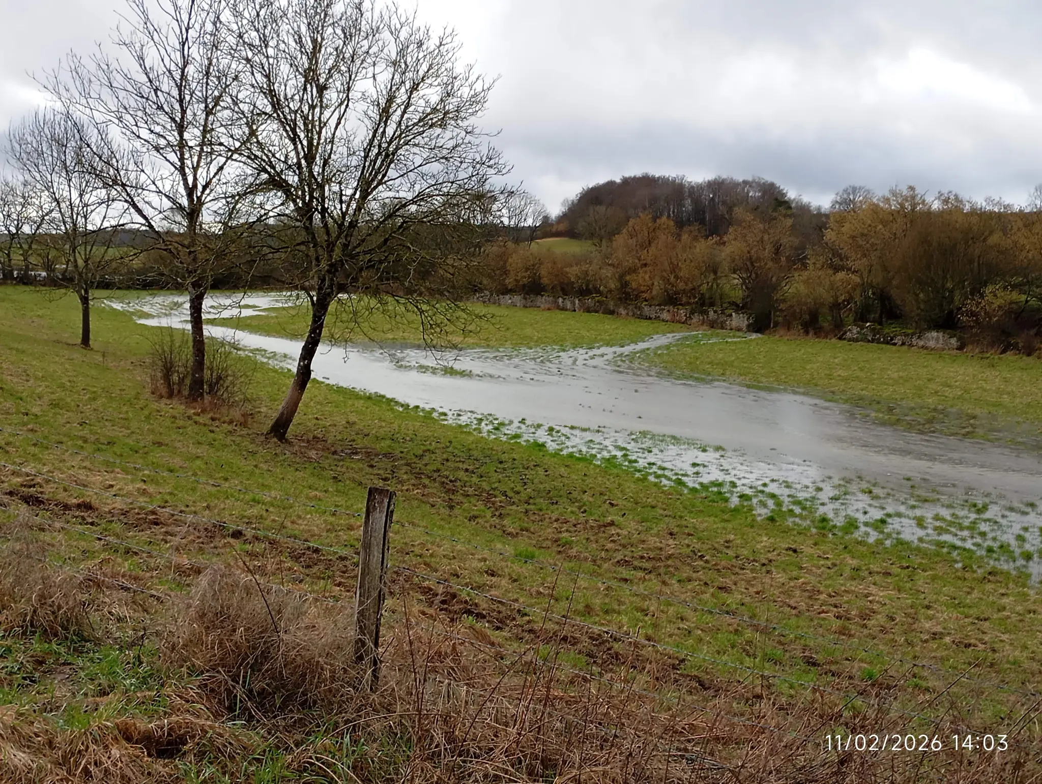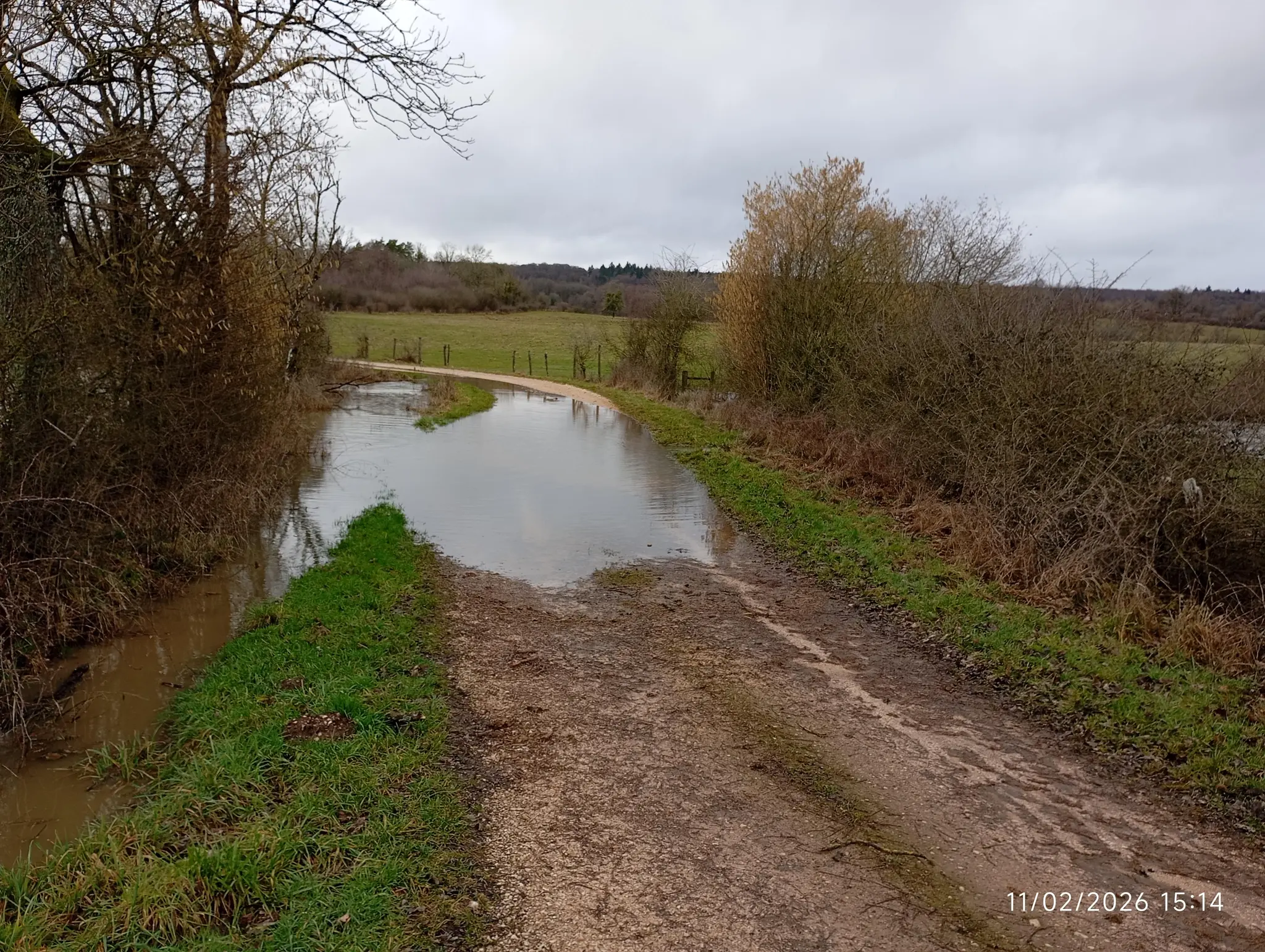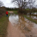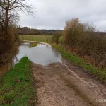 Ormancey, implanté sur le plateau de Langres est traversée par la rivière de la Suize qui prend sa source à Courcelles en montagne et va rejoindre la Marne à Chaumont, La Suize reçoit plusieurs ruisseaux qui prennent leur source sur le territoire de la commune ce qui nous a valu de nous mouiller les pieds presque à l’arrivée par le débordement du ruisseau de la combe du Viau qui couvrait le chemin. Les pluies de ces derniers jours ont gorgé les terres et maintenant les ruts et rivières ont un débit important et inondent les champs aux alentours.