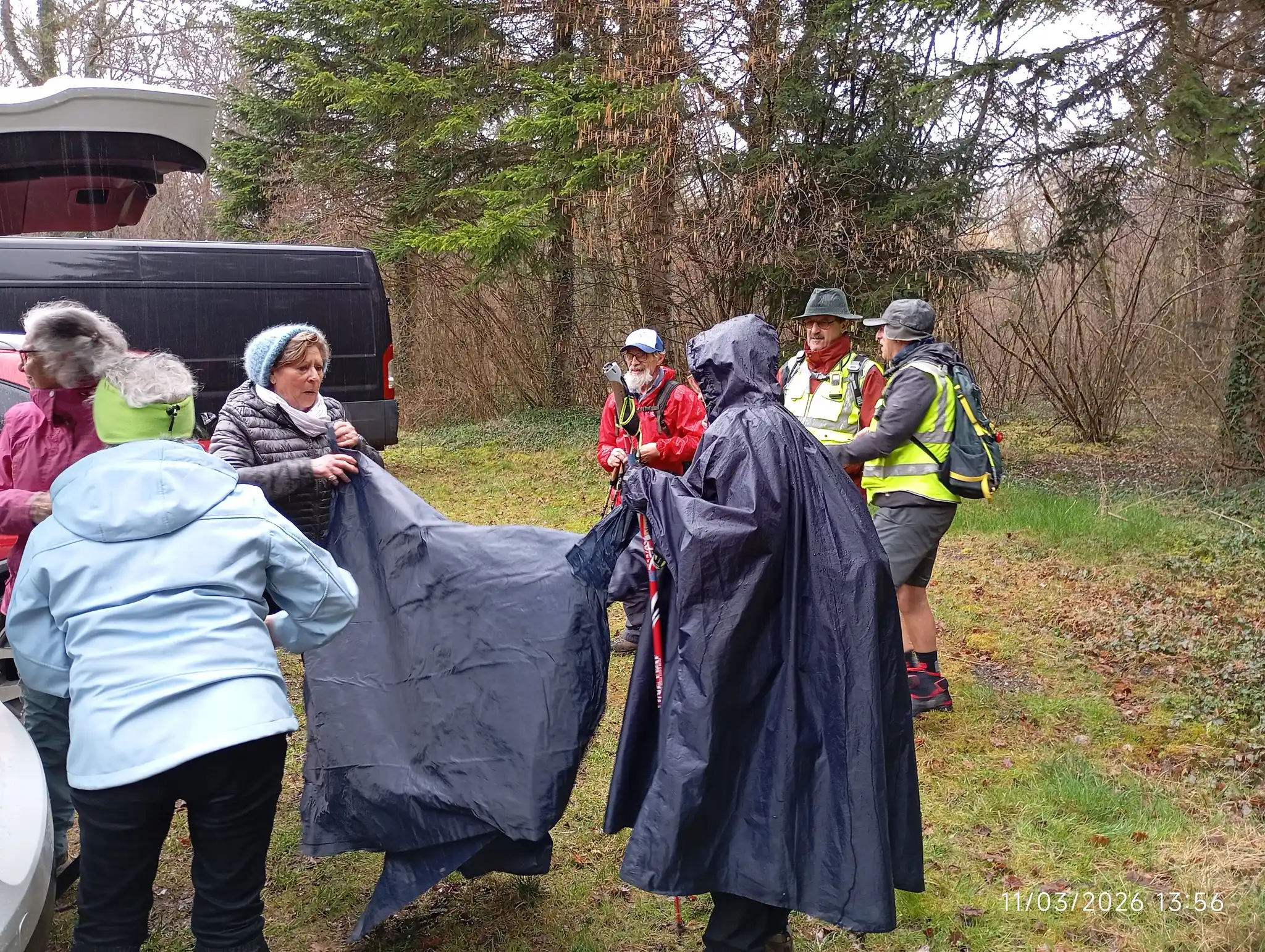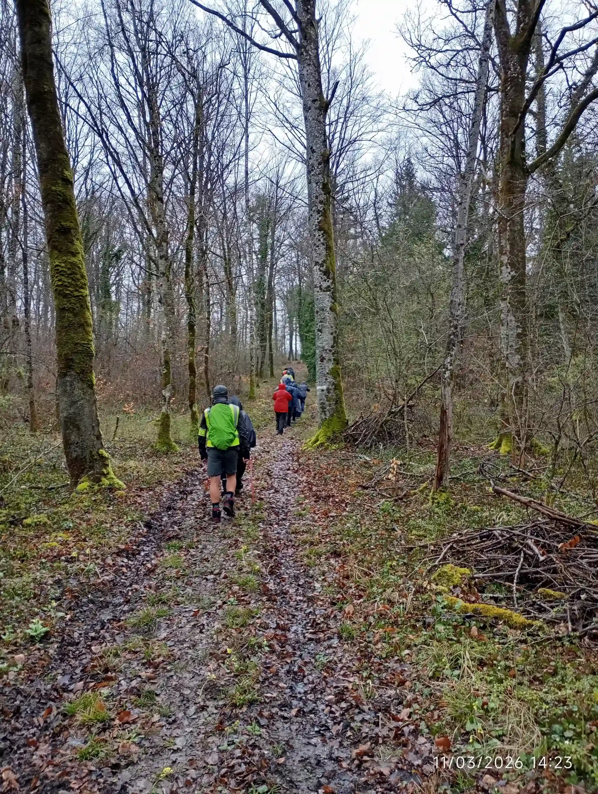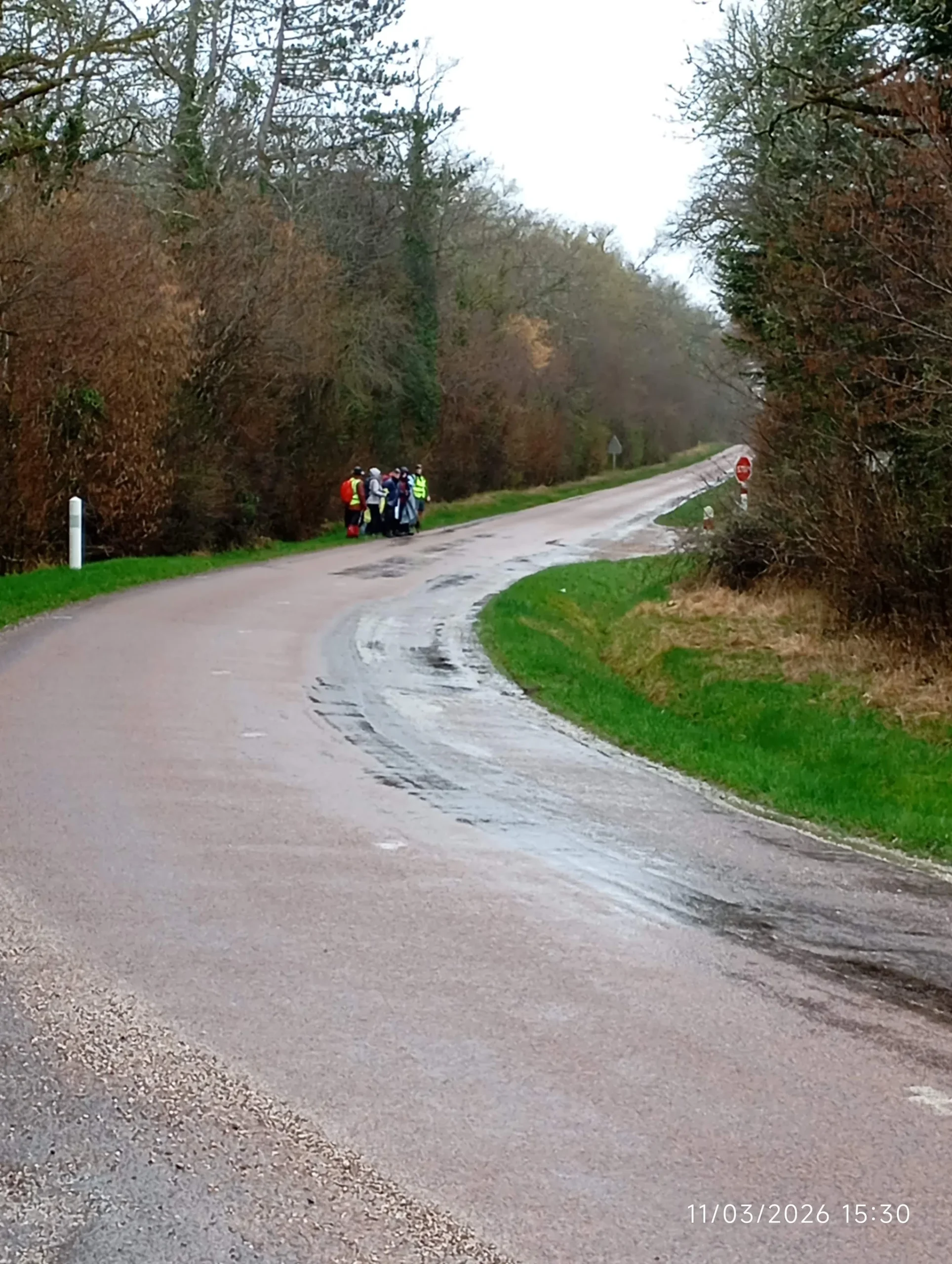 Notre parcours devait nous ramener vers les jonquilles mais étant donné la pluie qui nous a accompagné toute l’après-midi, l’ensemble du groupe avait hâte de se mettre à l’abri.