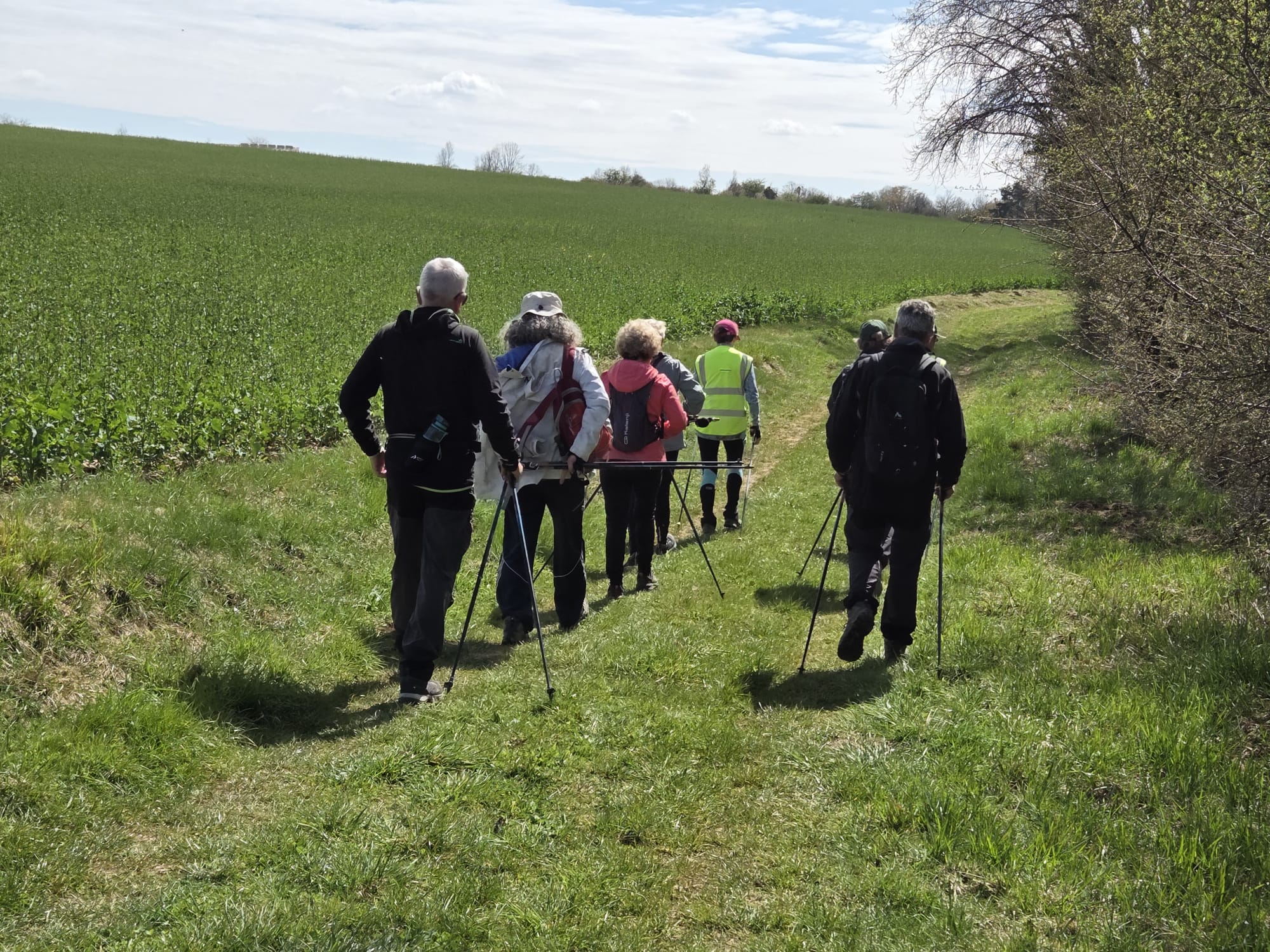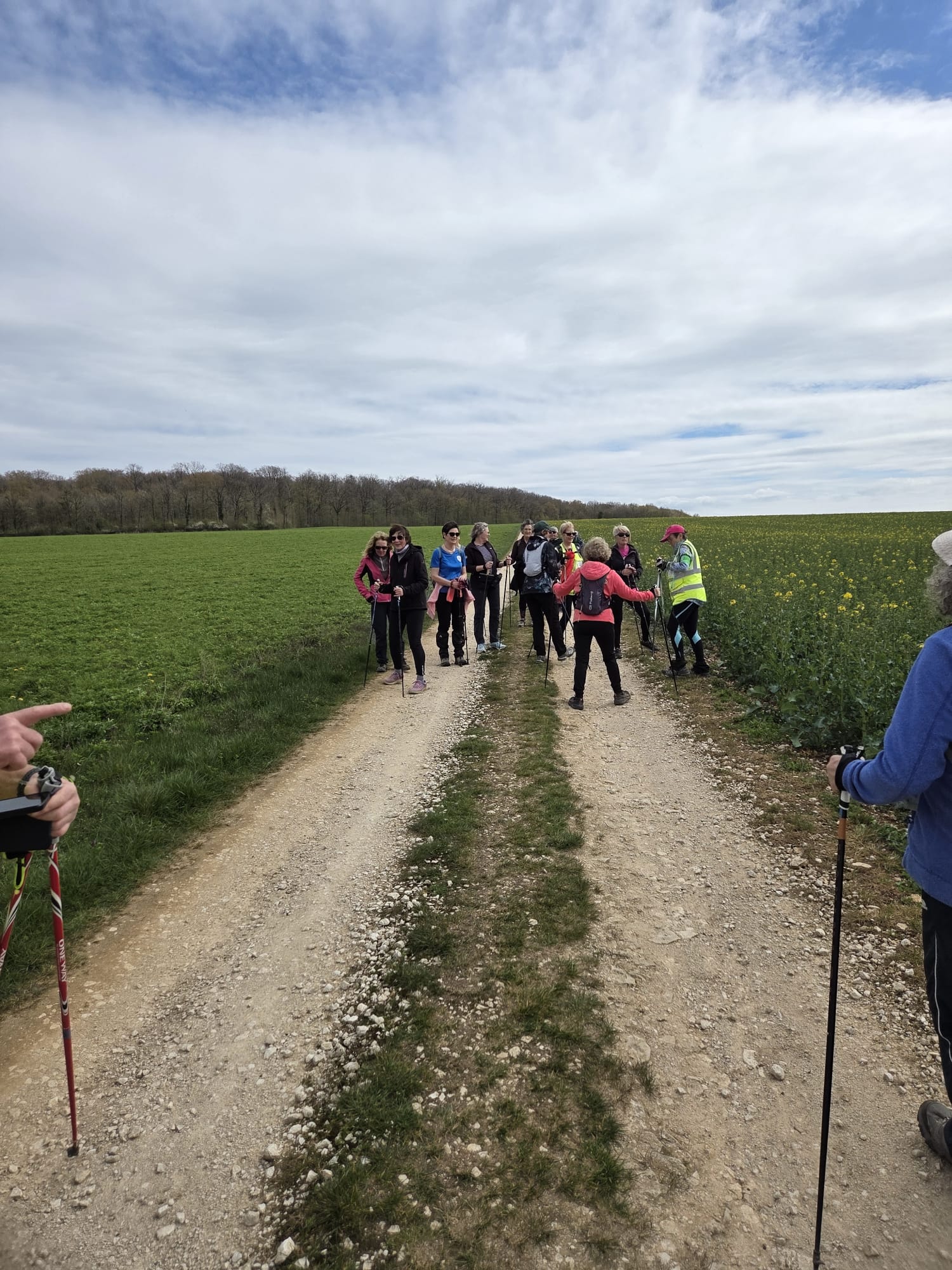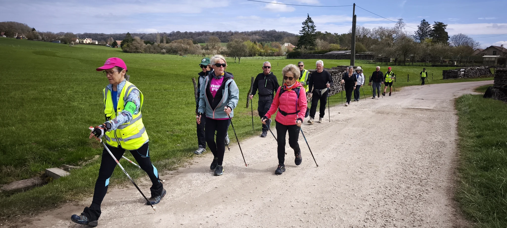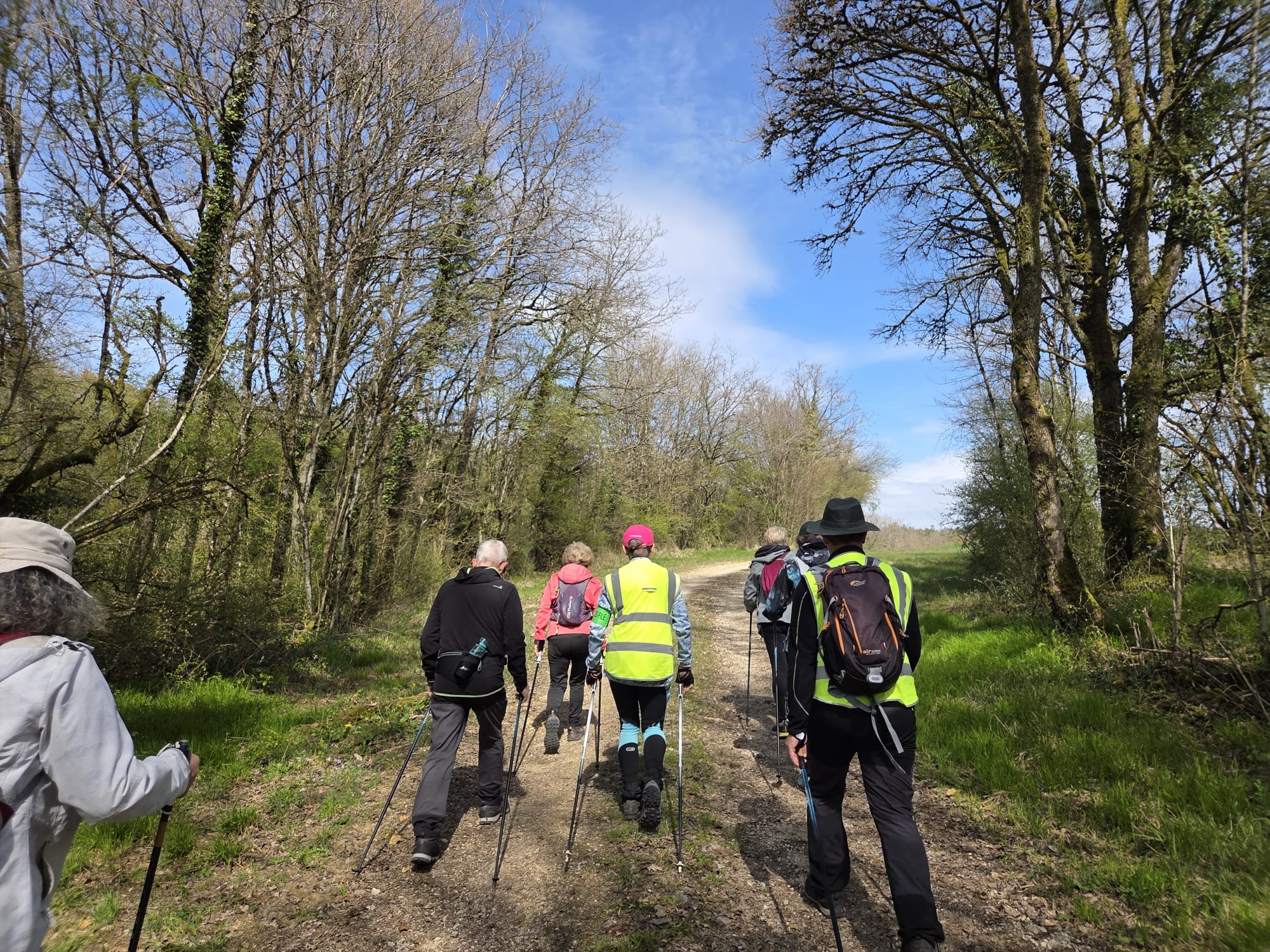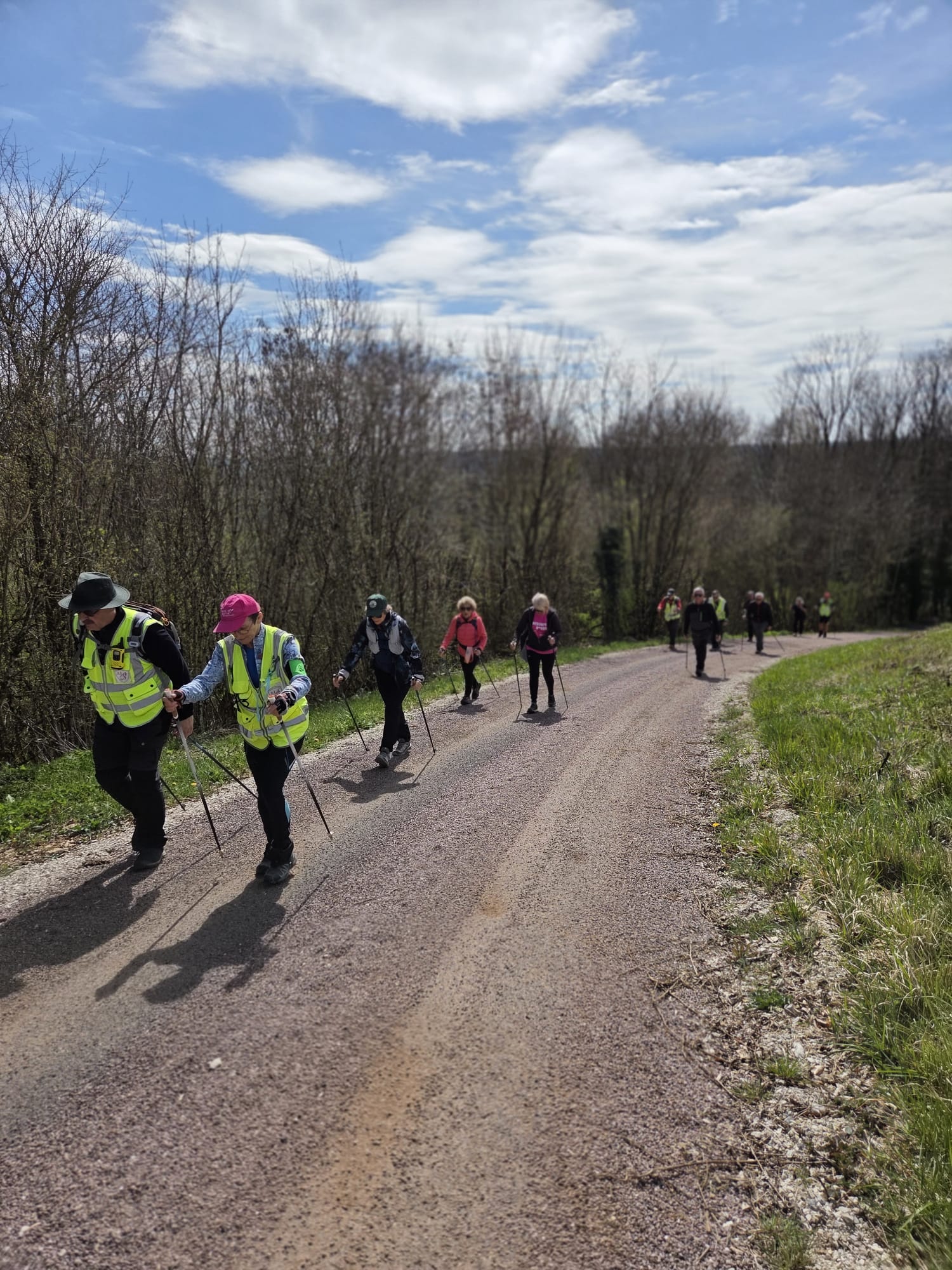 Après un échauffement articulaire rapide pour réveiller les muscles, le groupe nordique s’est élancé. Le groupe tonique a préféré partir dans le sens opposé, ce qui a permis de faire la photo de groupe à mi-chemin.