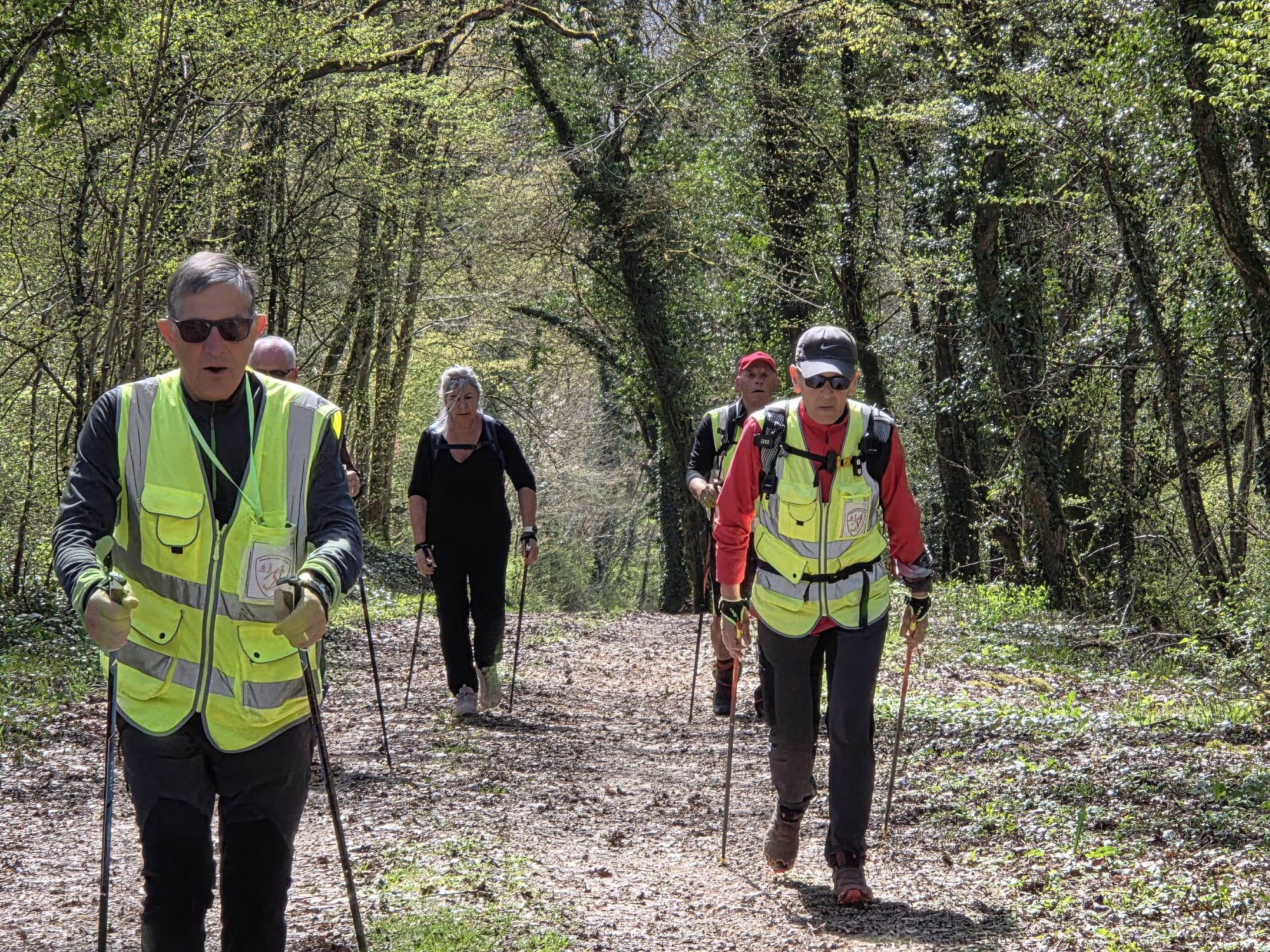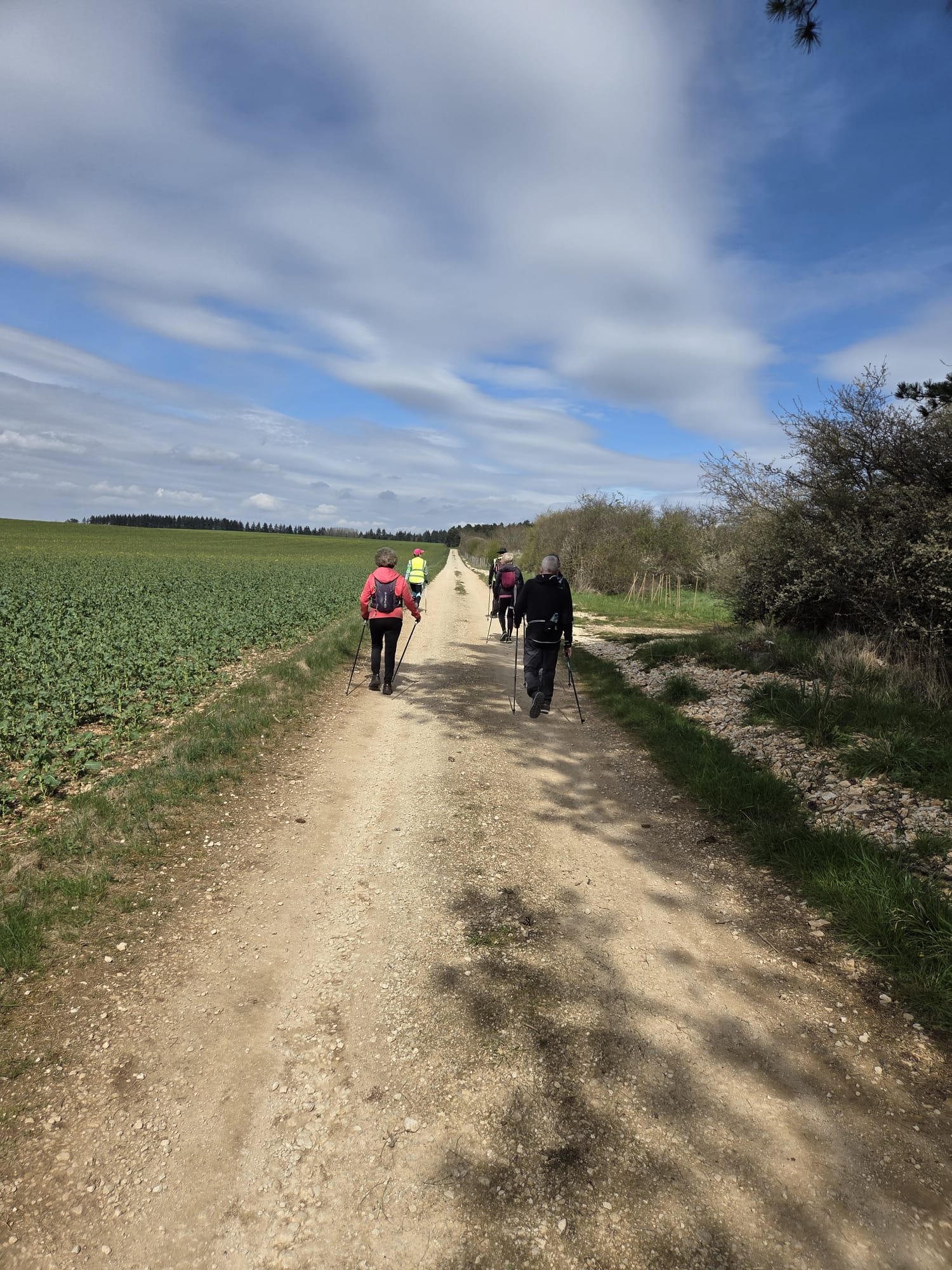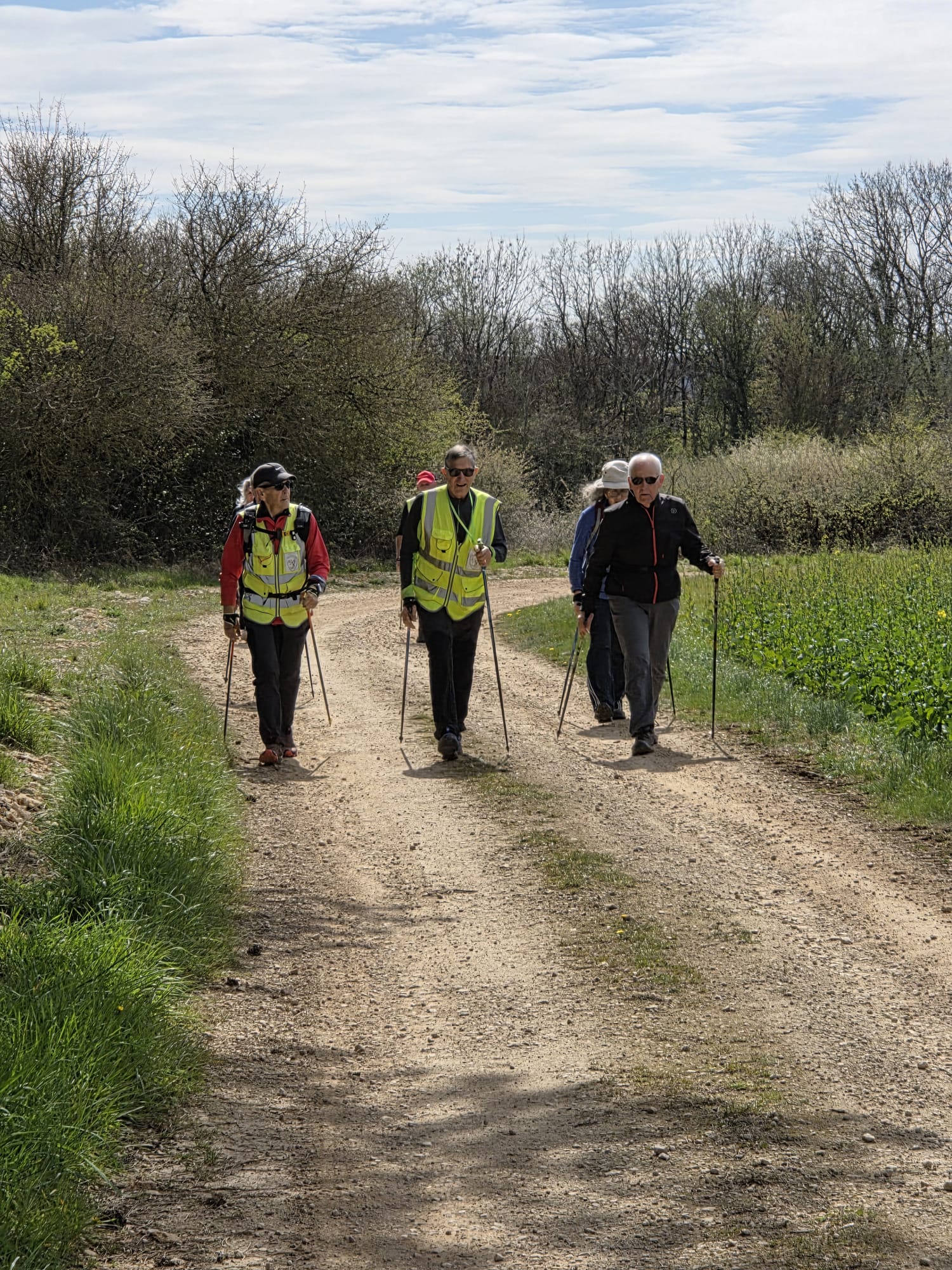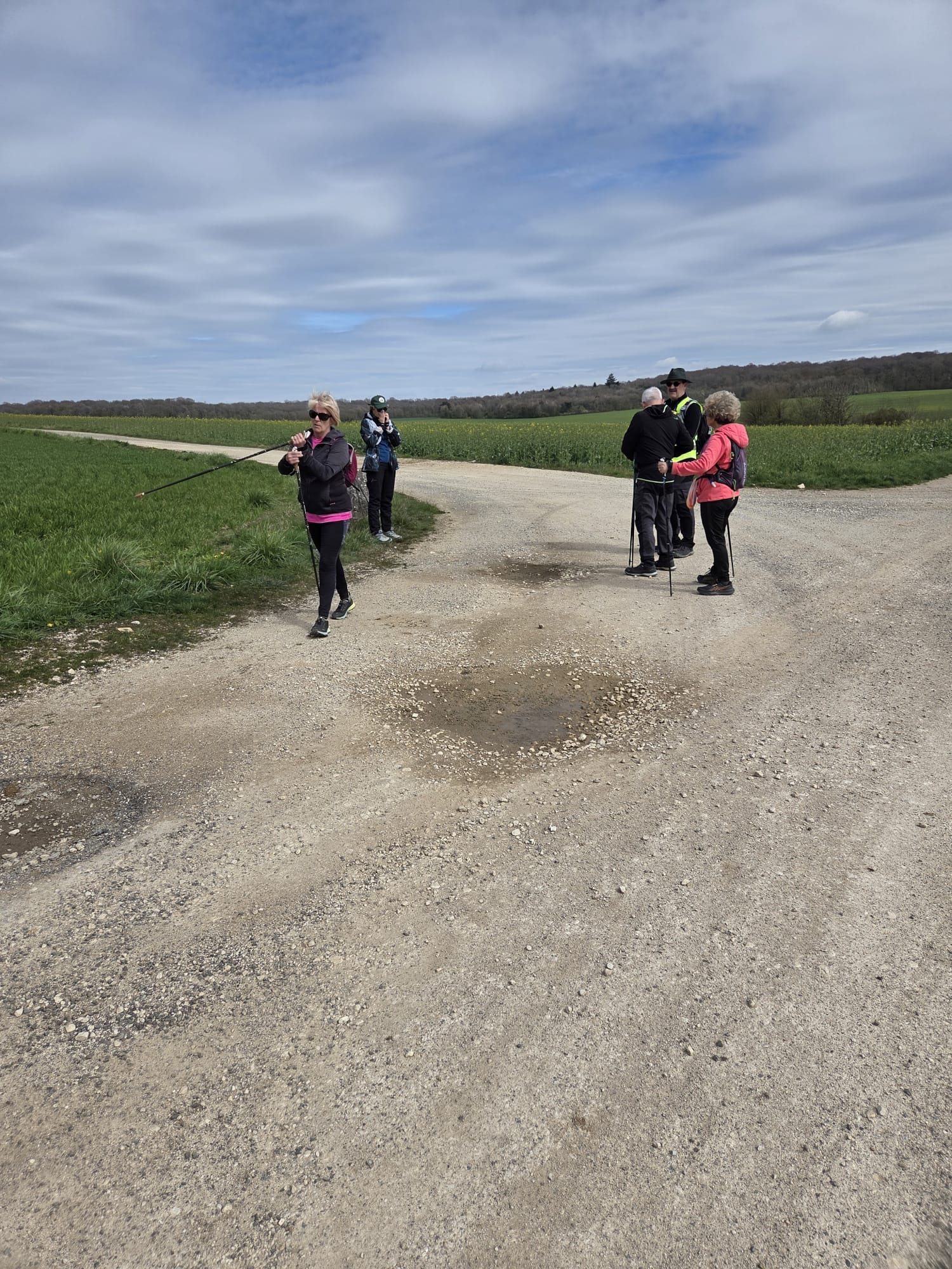 Après un échauffement articulaire rapide pour réveiller les muscles, le groupe nordique s’est élancé. Le groupe tonique a préféré partir dans le sens opposé, ce qui a permis de faire la photo de groupe à mi-chemin.
