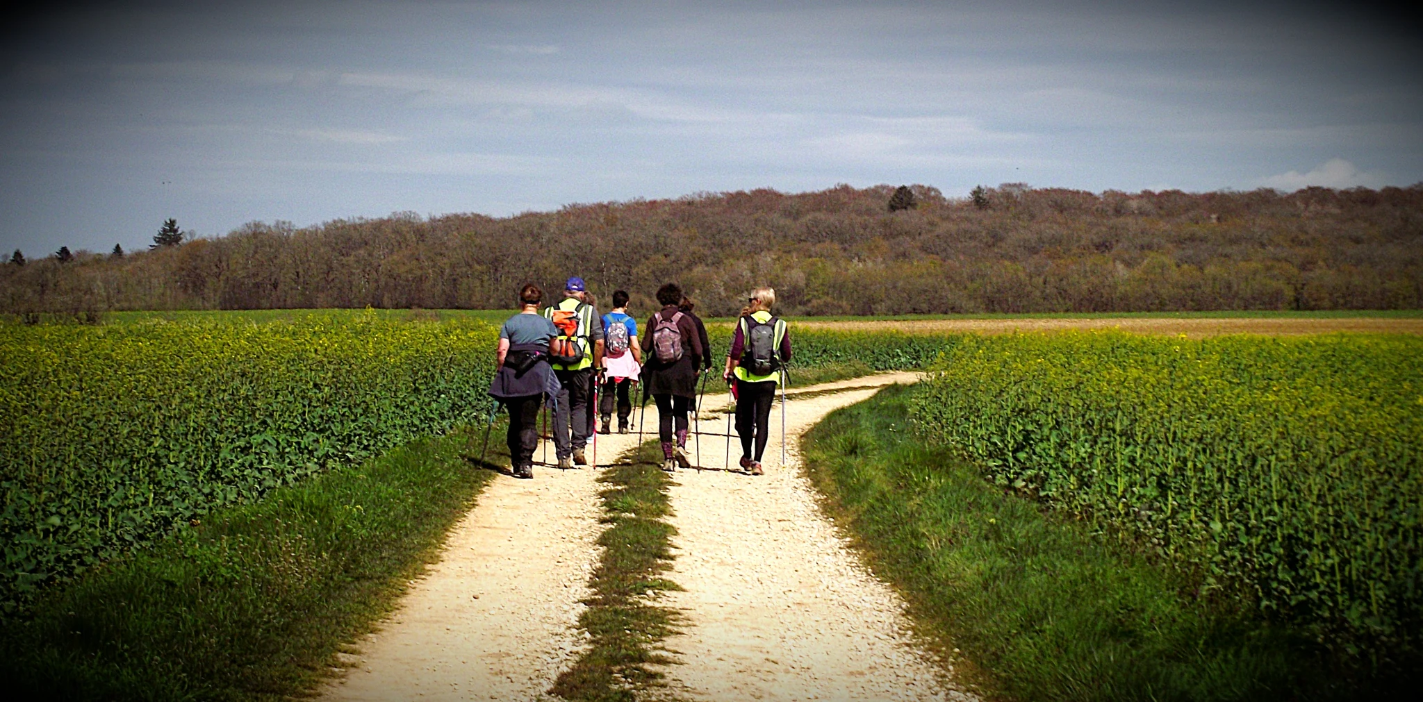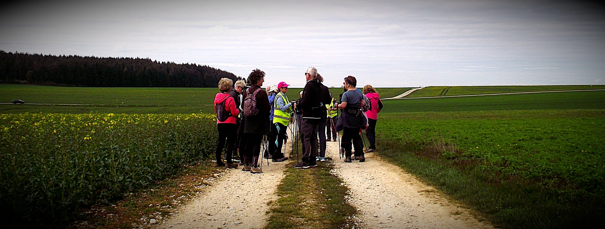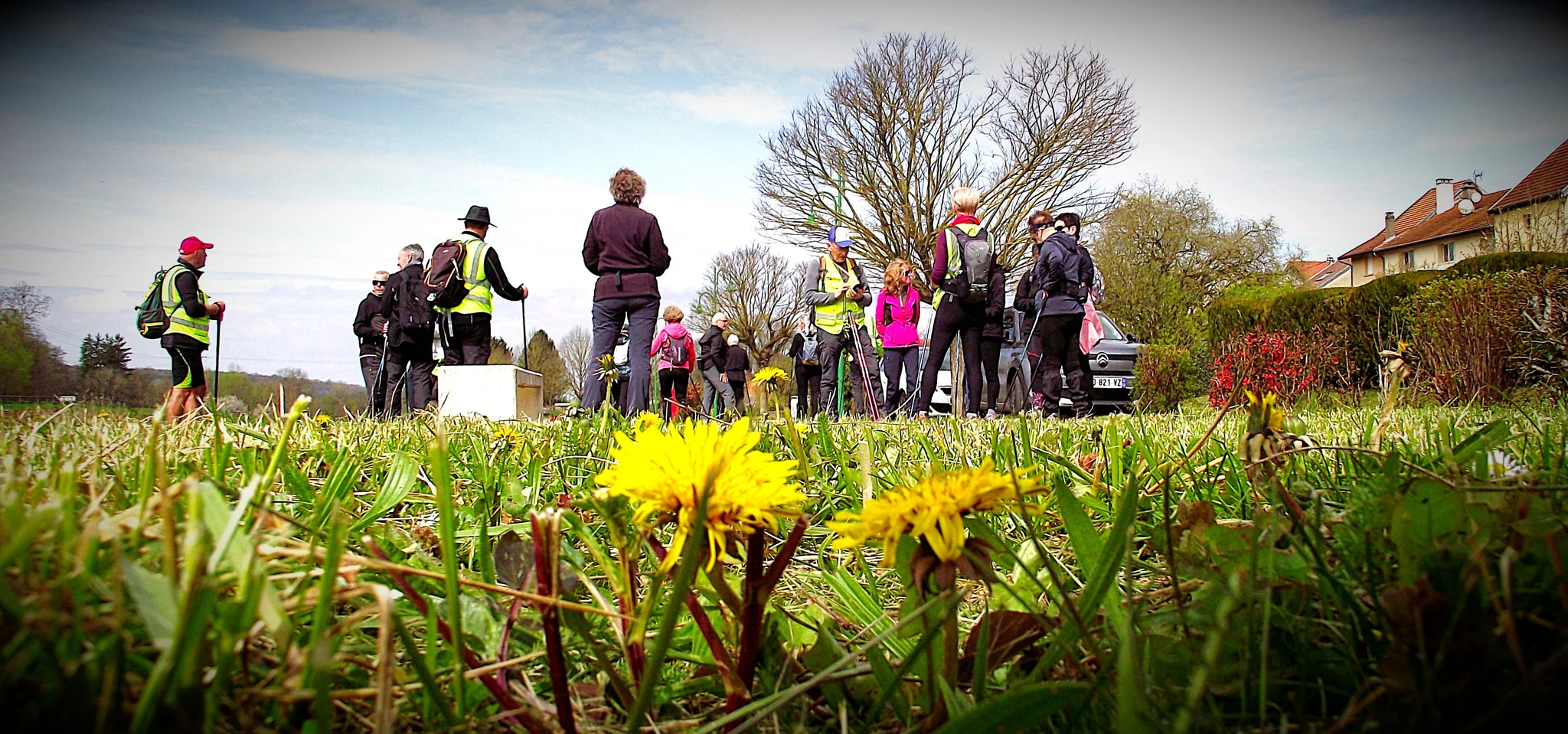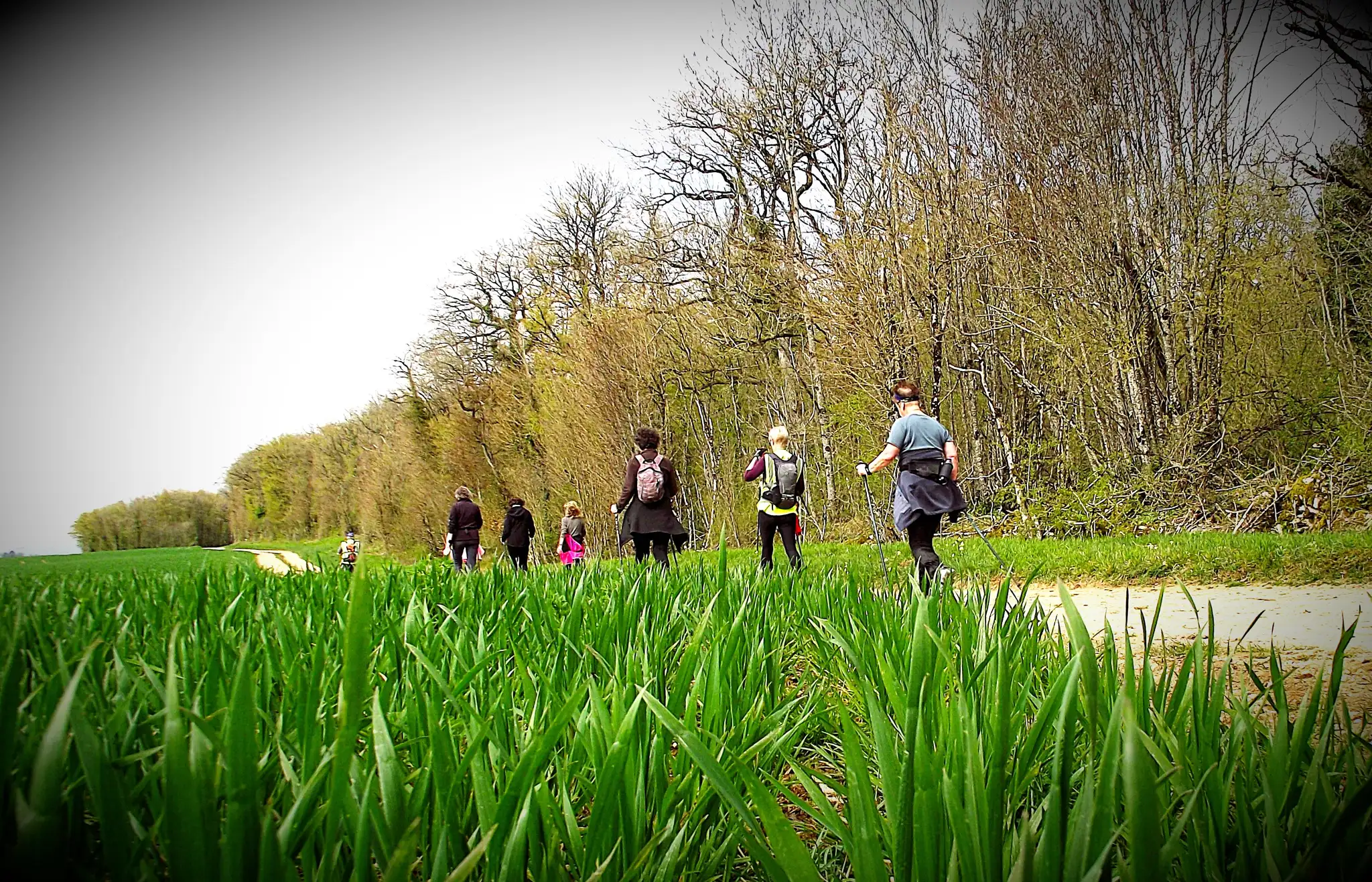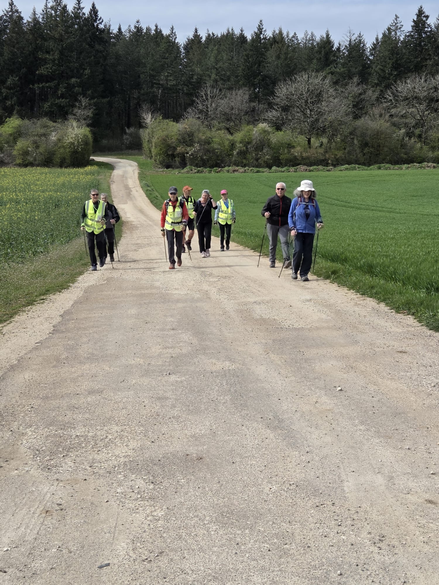 Après un échauffement articulaire rapide pour réveiller les muscles, le groupe nordique s’est élancé. Le groupe tonique a préféré partir dans le sens opposé, ce qui a permis de faire la photo de groupe à mi-chemin.