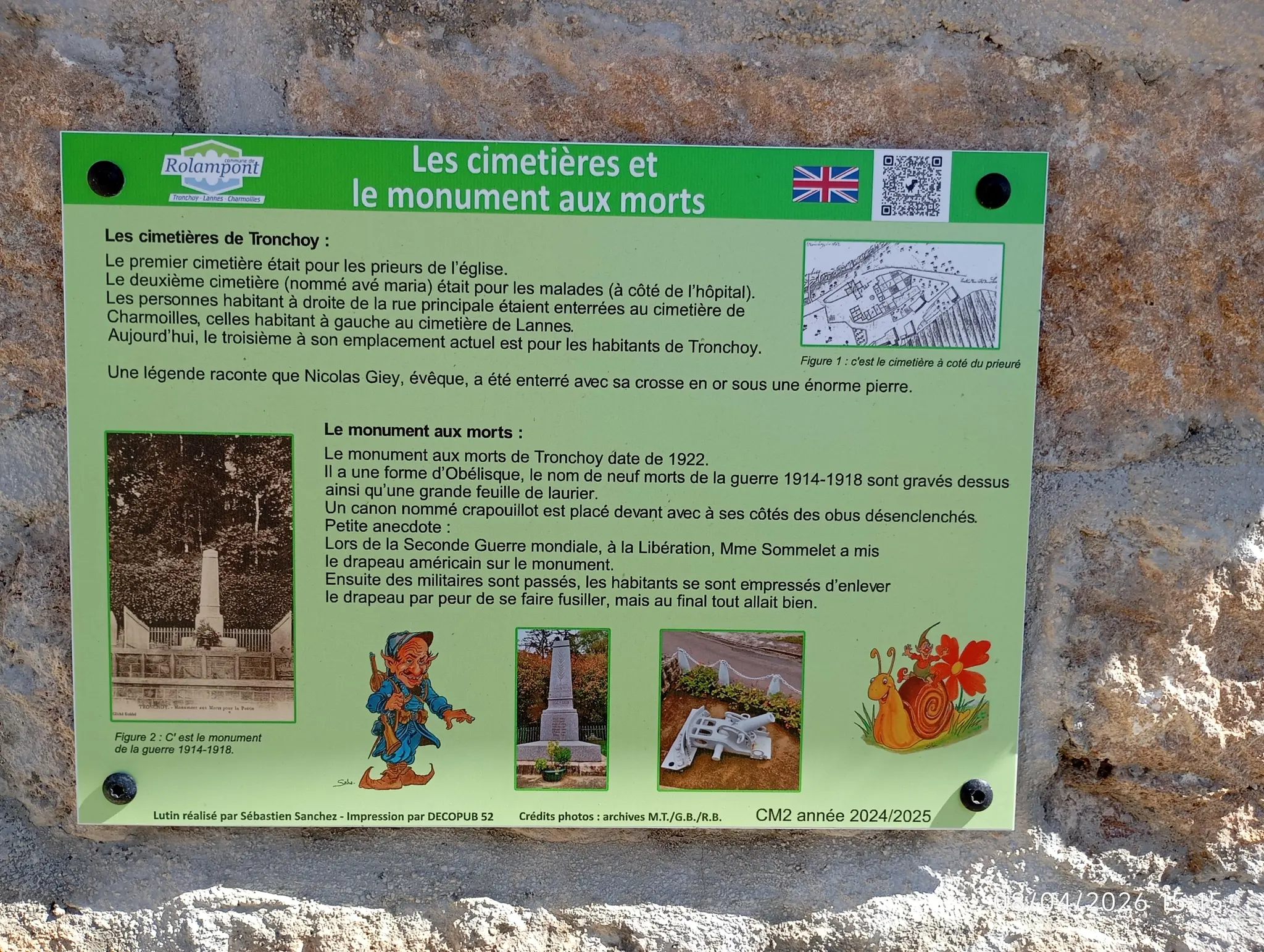 A la sortie du bois nous arrivons au village de Tronchoy qui surplombe la vallée du Val de Gris. Ce Village fait partie de la commune de Rolampont depuis 1972 avec Lannes et Charmoilles. Tronchoy n’était qu’un hameau avait toujours fait partie de la commune de Lannes jusqu’en 1843.