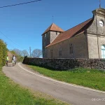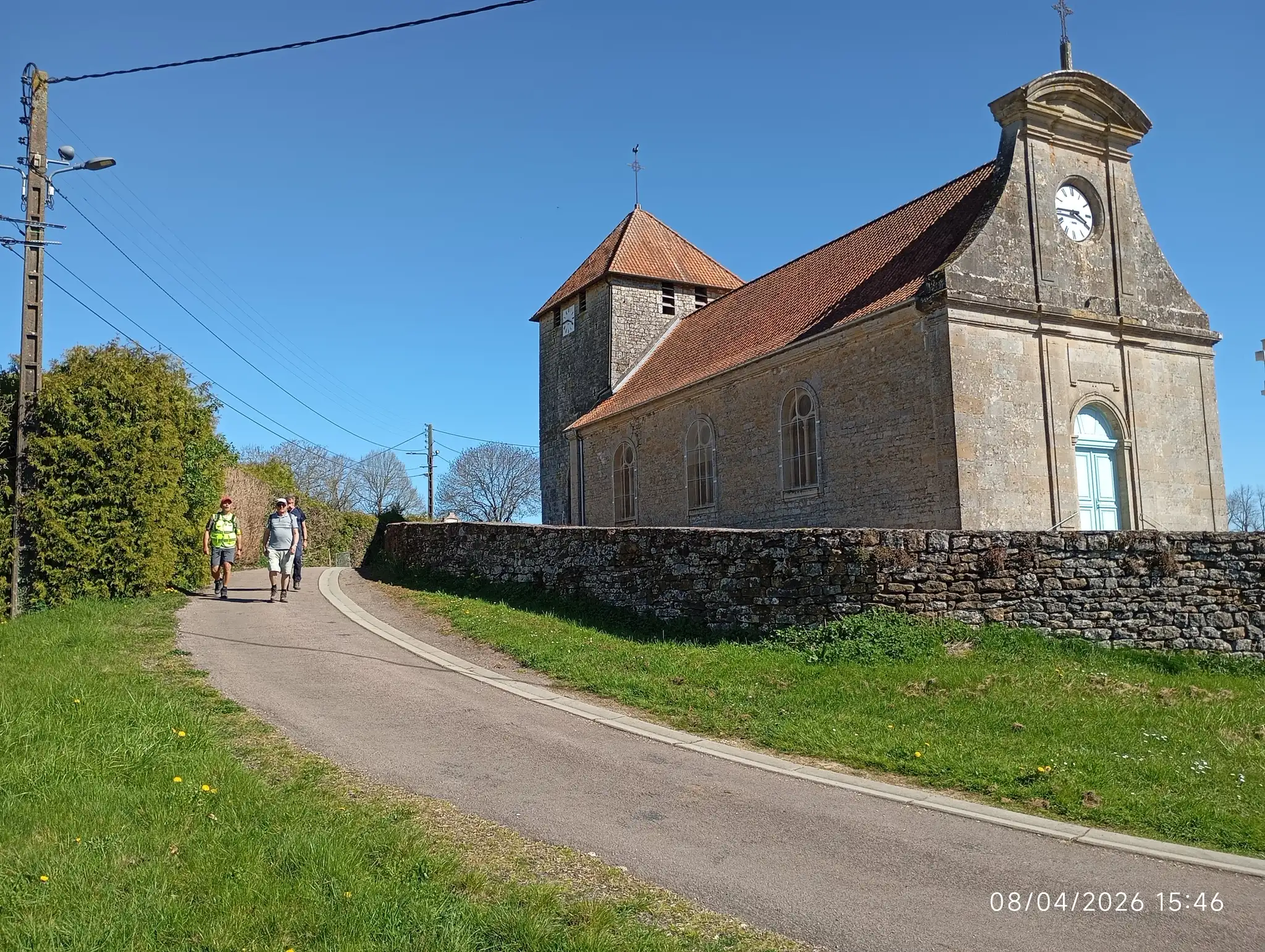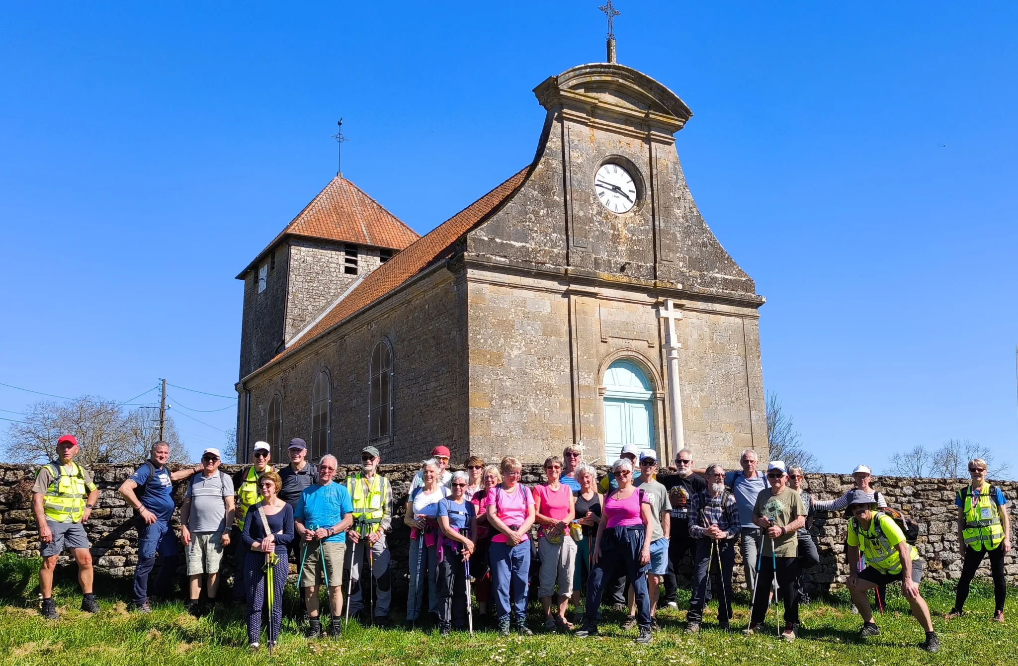 La photo de groupe s’imposait avec l’église de Lannes en fond, église construite au XIVème siècle avec sa tour clocher fortifiée.