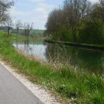 Après avoir quitté le village de Peigney nous rejoignons le canal de la Marne à la Saône sur notre gauche le fort de Peigney et nommé Constance Chlore nous domine. Fort construit en 1869 pour défendre la citadelle de Langres mais la guerre de 1870 est arrivée avant la fin de la construction. Celui-ci a été remanié entre 1874 et 1875. Ce fort et les sept autres répartis autour de la citadelle faisait partie de la ceinture de défense de Langres. Il est apparu rapidement qu’ils ne répondaient plus aux exigences de protection étant donné l’évolution très rapide de l’armement (charges creuses, portée des canons). L’ensemble des forts n’a pratiquement jamais servi dans leur fonction pour laquelle ils étaient destinés. Le fort de Peigney a été désarmé en 1915. En 1917 il a servi à l’entraînement des troupes américaines qui étaient basées à Bourg et de 1941 à 1943 il a tété un camp d’internement des Tsiganes et à la fin de la 2eme guerre mondiale il a été utilisé comme camp de prisonniers allemand. Ce Fort qui était la propriété de l’armée a été racheté par la commune de Peigney en 2014.