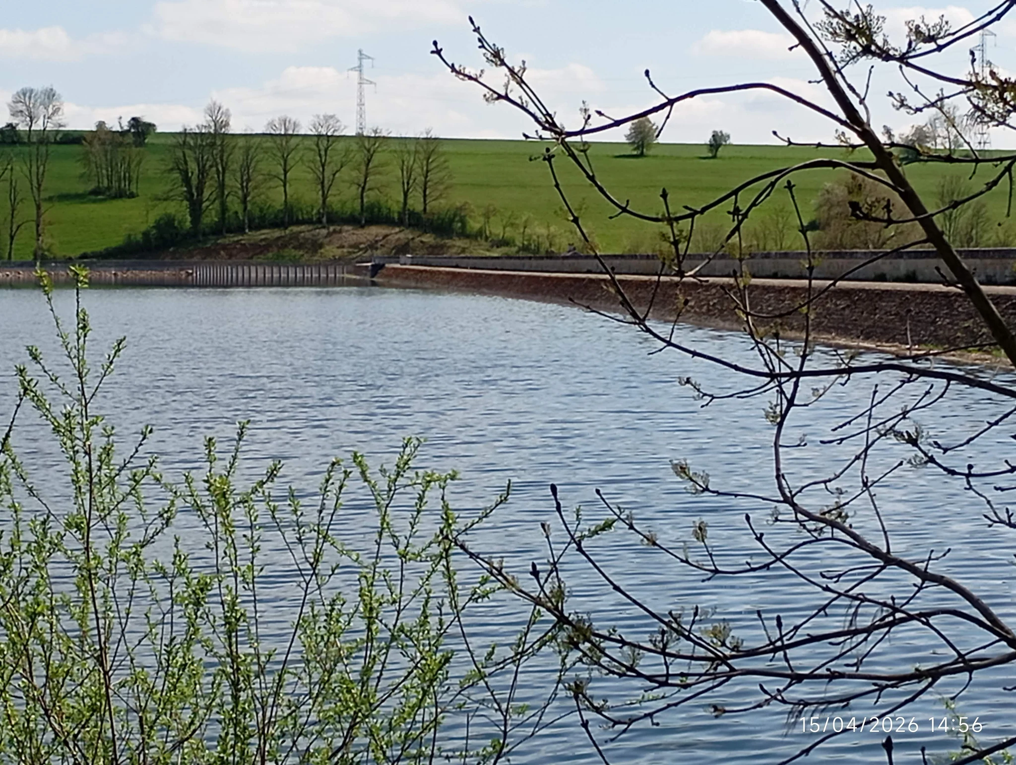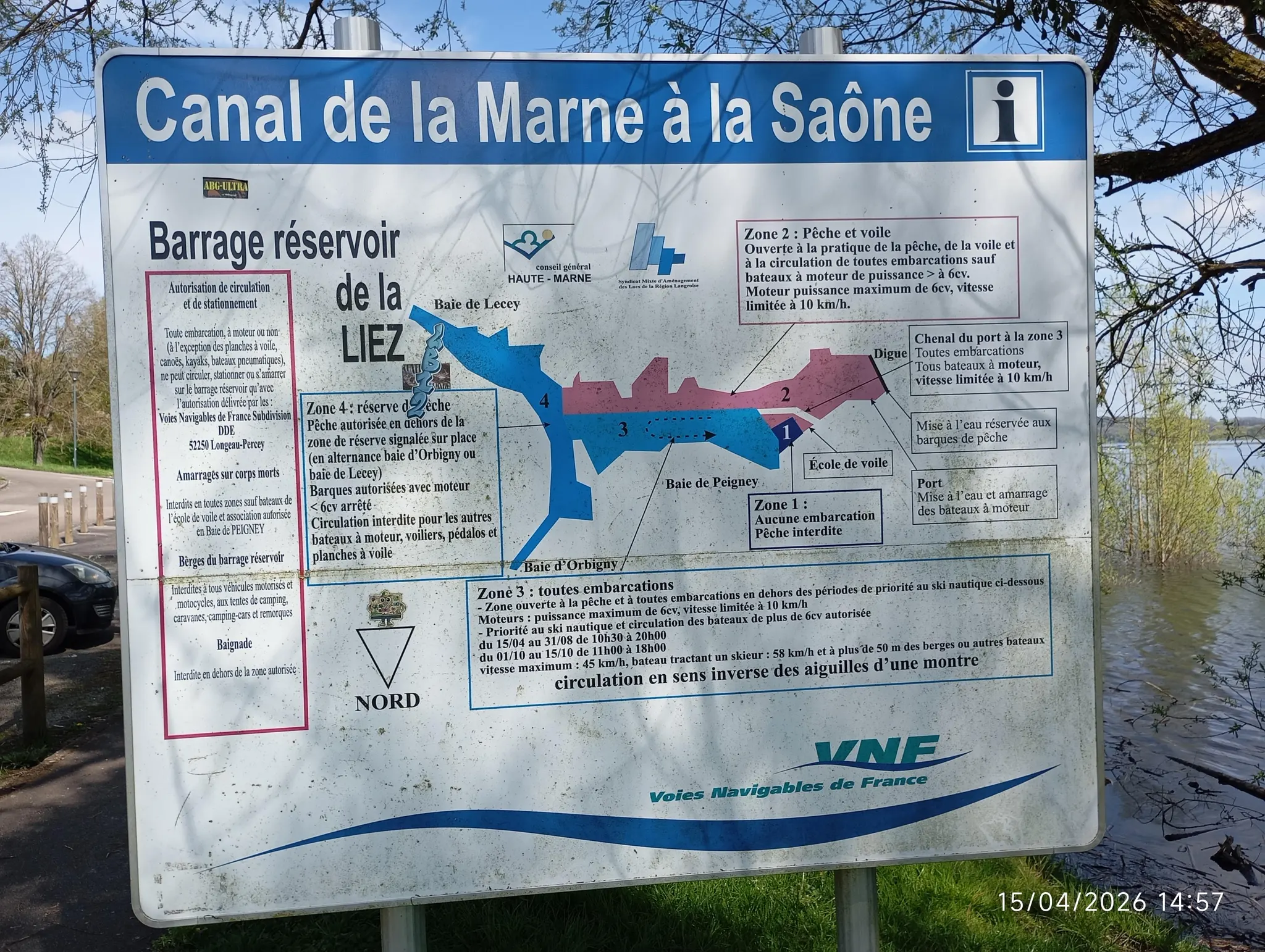 Nous regagnons le bord du lac de la Liez dont le niveau a étonné de nombreuses personnes qui n’avaient pas connu ce niveau aussi haut depuis de nombreuses années. Le déversoir qui a été réaménagé ses dernières années rempli son rôle. Le niveau élevé est peut-être une anticipation sur les besoins futurs tant pour le canal que l’activité du lac. Néanmoins la conséquence c’est que la plage est réduite à un espace minuscule.