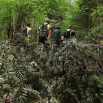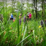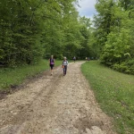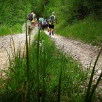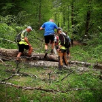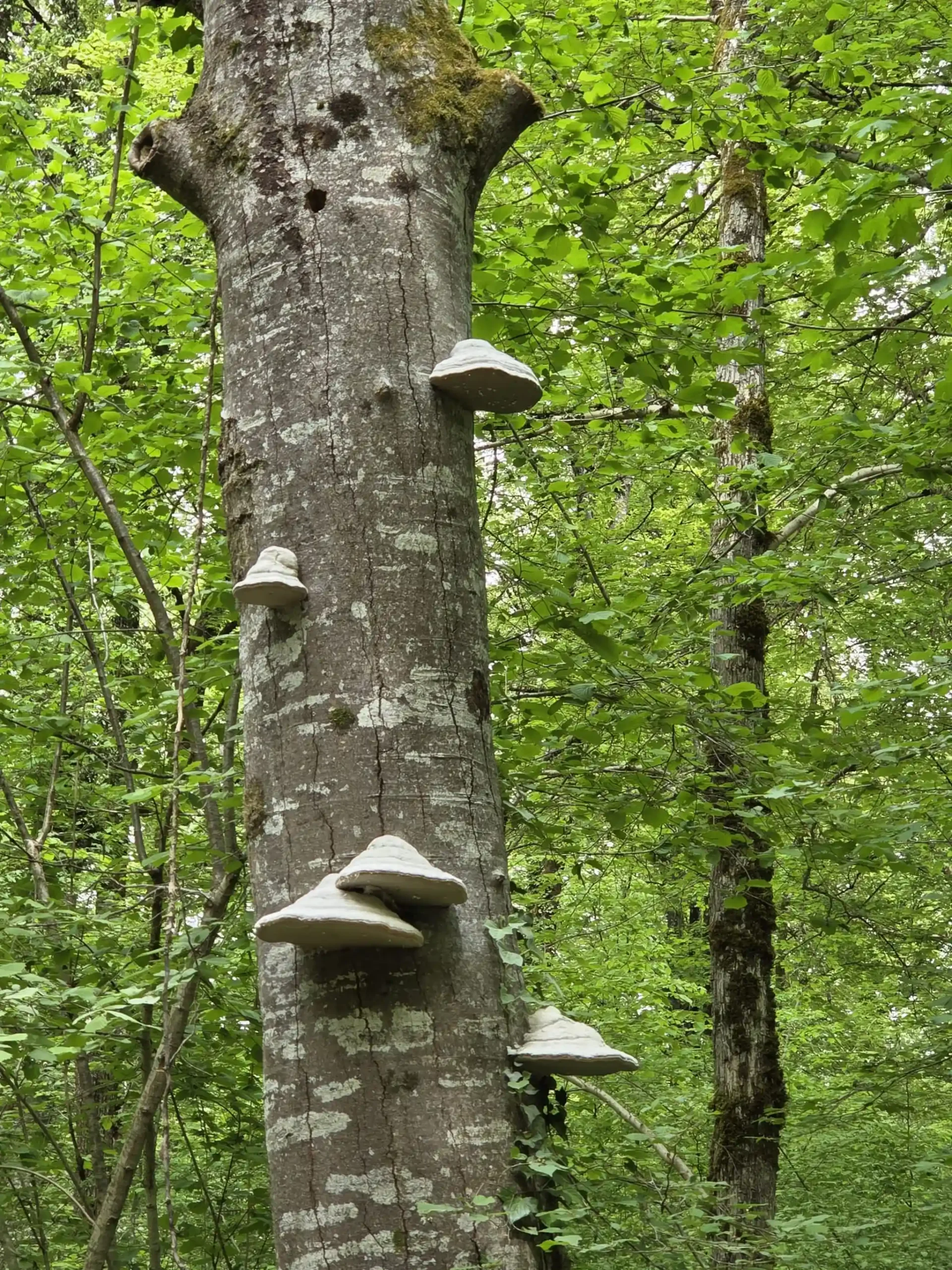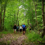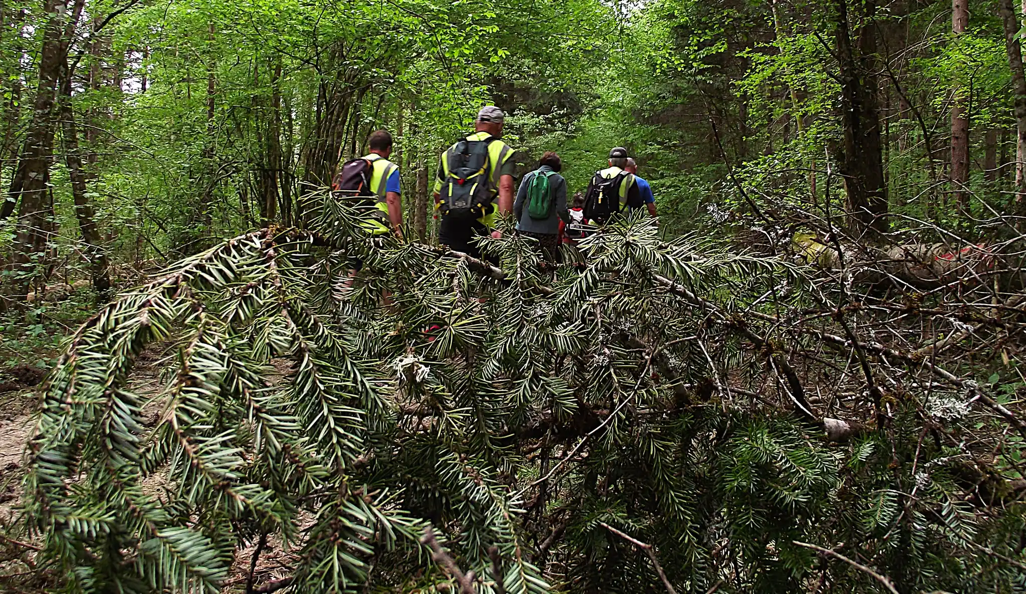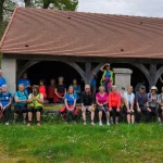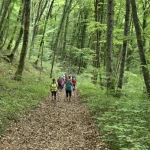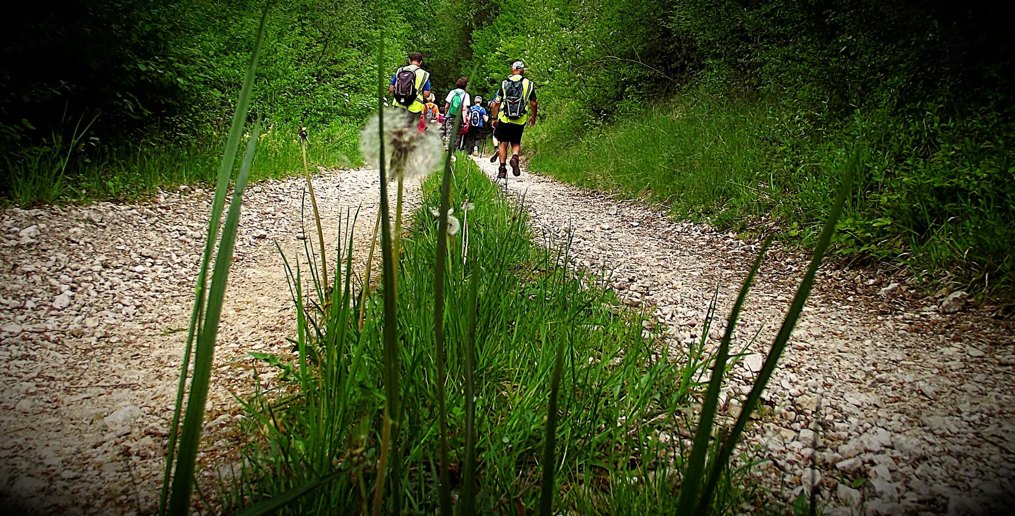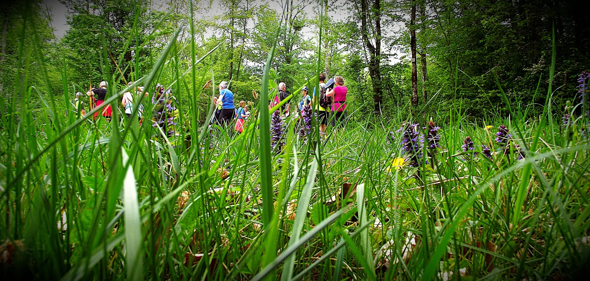 Le ciel, voilé et discret, accompagne la marche sans jamais l’alourdir. Dans cette lumière douce, les silhouettes avancent d’un même élan, portées par un rythme soutenu et régulier. Les montées réveillent le souffle, les descentes l’apaisent, et la forêt enveloppe le groupe d’un calme feutré.