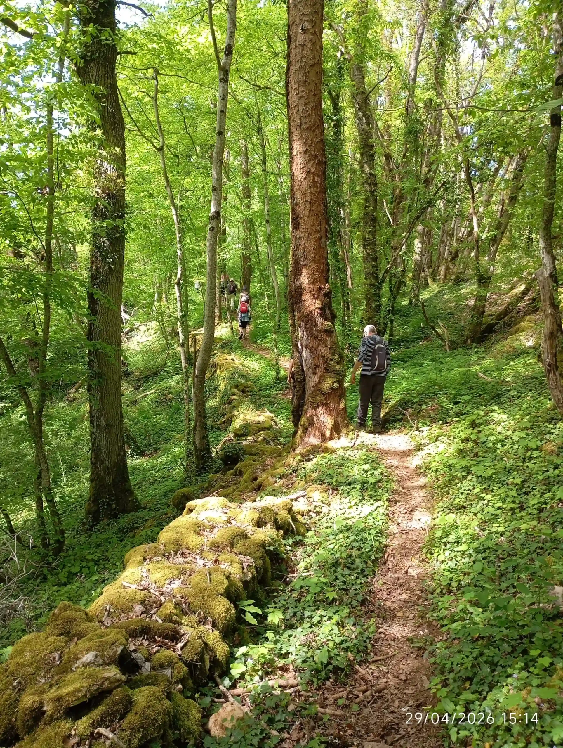 Nous nous dirigeons vers le plateau de Langres où celui-ci est fleuri de jaune sur une grande partie du territoire Le responsable des marches de la champêtre se croyait encore en vacances ou le coté bucolique du moment lui a fait perdre » le nord « . IL nous a conduit sur le mauvais tracé, ce qui ne nous a pas permis de voir la croix de la Mère Rondot, en contrepartie notre chemin nous a conduit dans le bois du Fays où nous avons profité de l’ombre ainsi que du parcours ombragé et pittoresque au-dessus des falaises que beaucoup de marcheurs ont découvert.